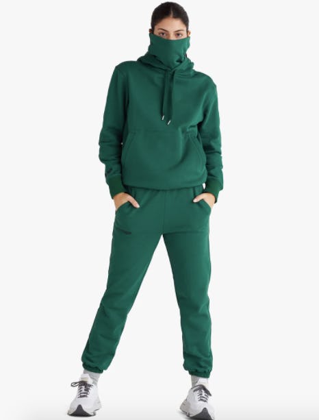 Across the whole assortment, there's a piece in particular that both sisters are particularly excited about: the Mask Hoodie, which features a "COVID-19 considerate" fabric band across the mouth that perfectly steps up everyone's face mask.