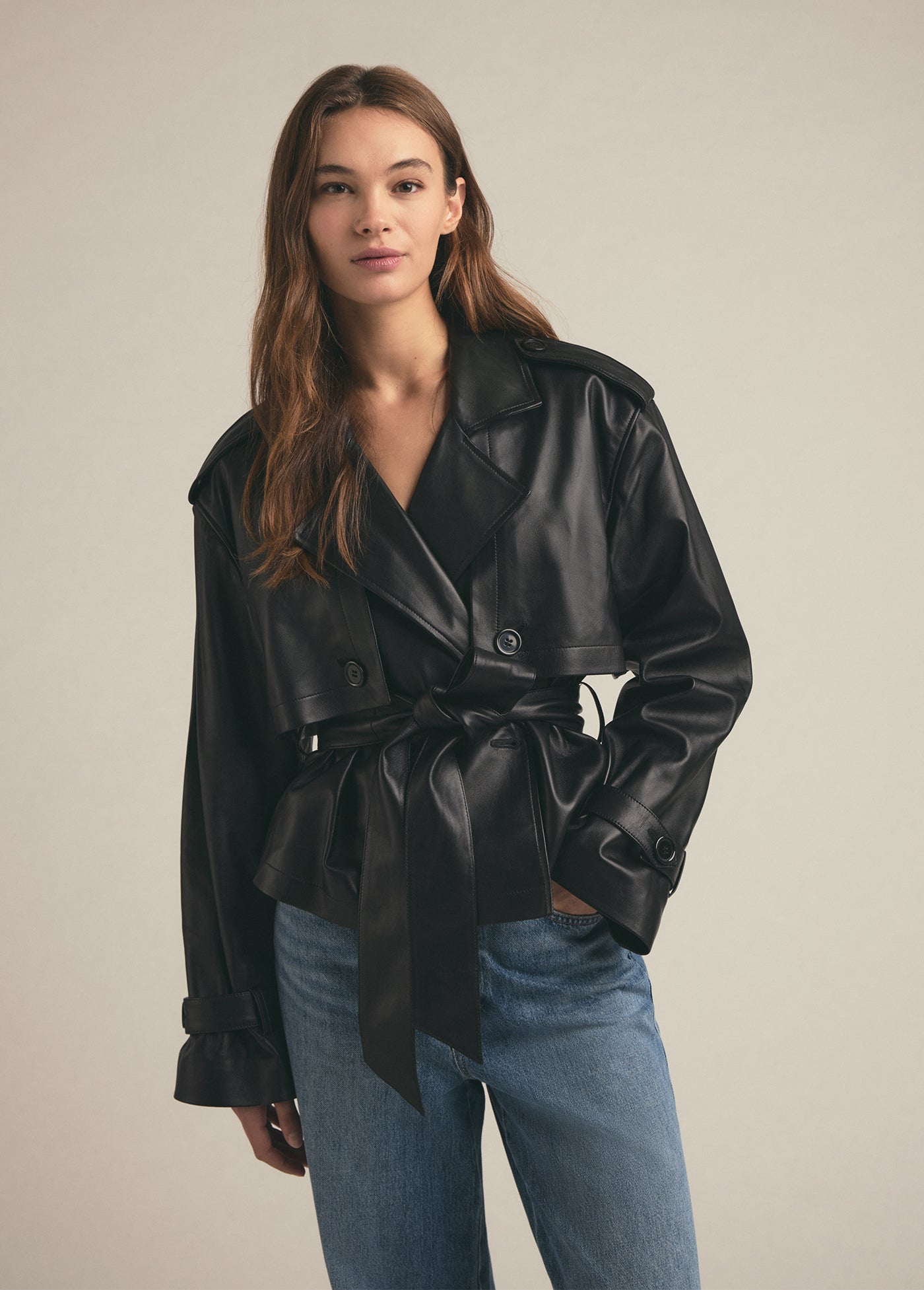 The timelessness of The Charles Trench will make it the most chic and classic article of clothing in your closet. Our latest rendition has a cropped length and is cut from beautiful leather with a slightly boxy silhouette and cinchable waist belt.