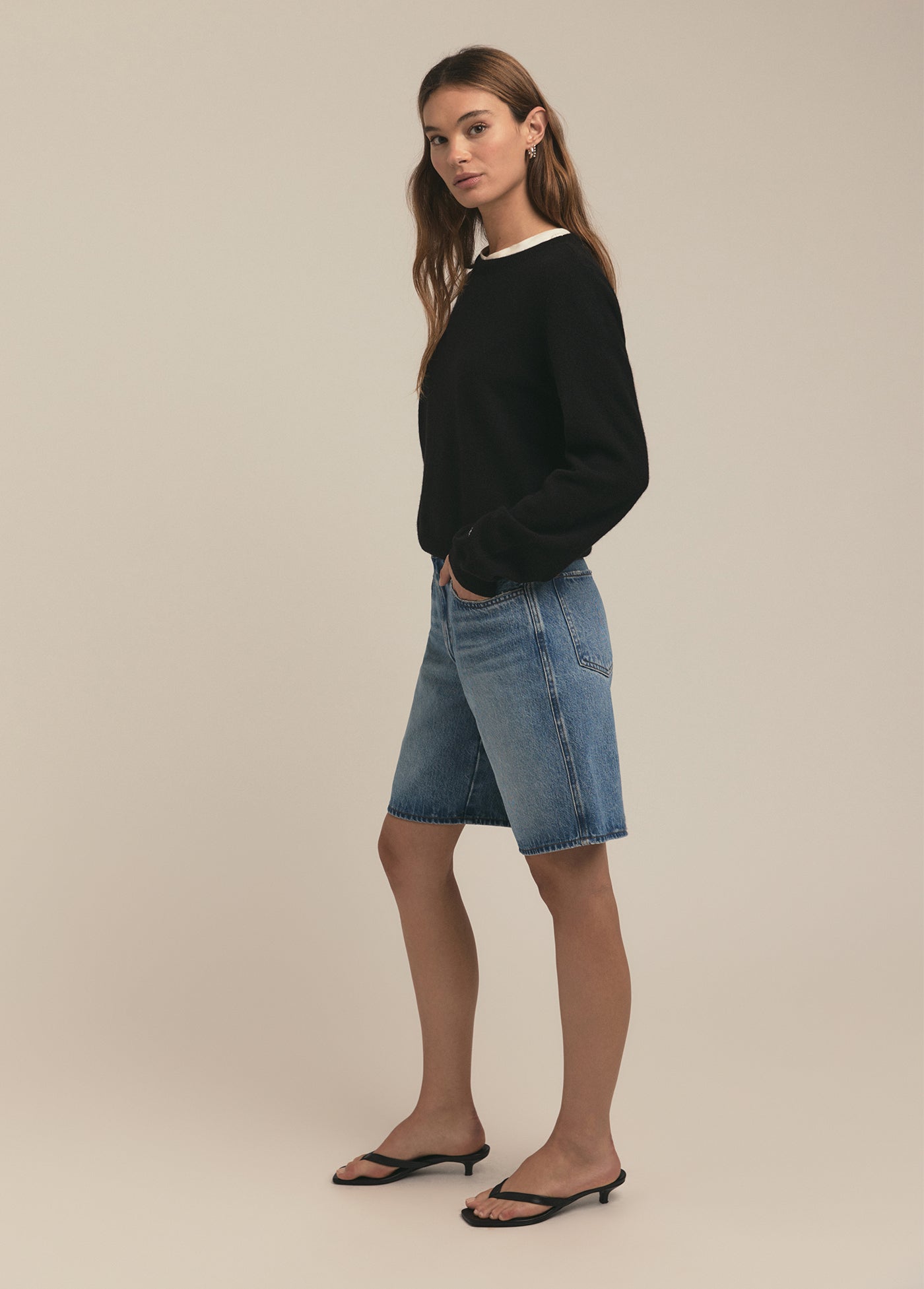 The Tommy Bermuda has the same loved fit as the full-length jeans–five-pocket styling, easy at the waist with 11.25" rise and low slung at the hips--with a 9" straight leg that hits above the knee. As part of our Favorite Planet collection, the medium-light blue Margate wash was created using rigid denim (that fits true to size and gives with each wear) without using any bleach chemicals or stones.