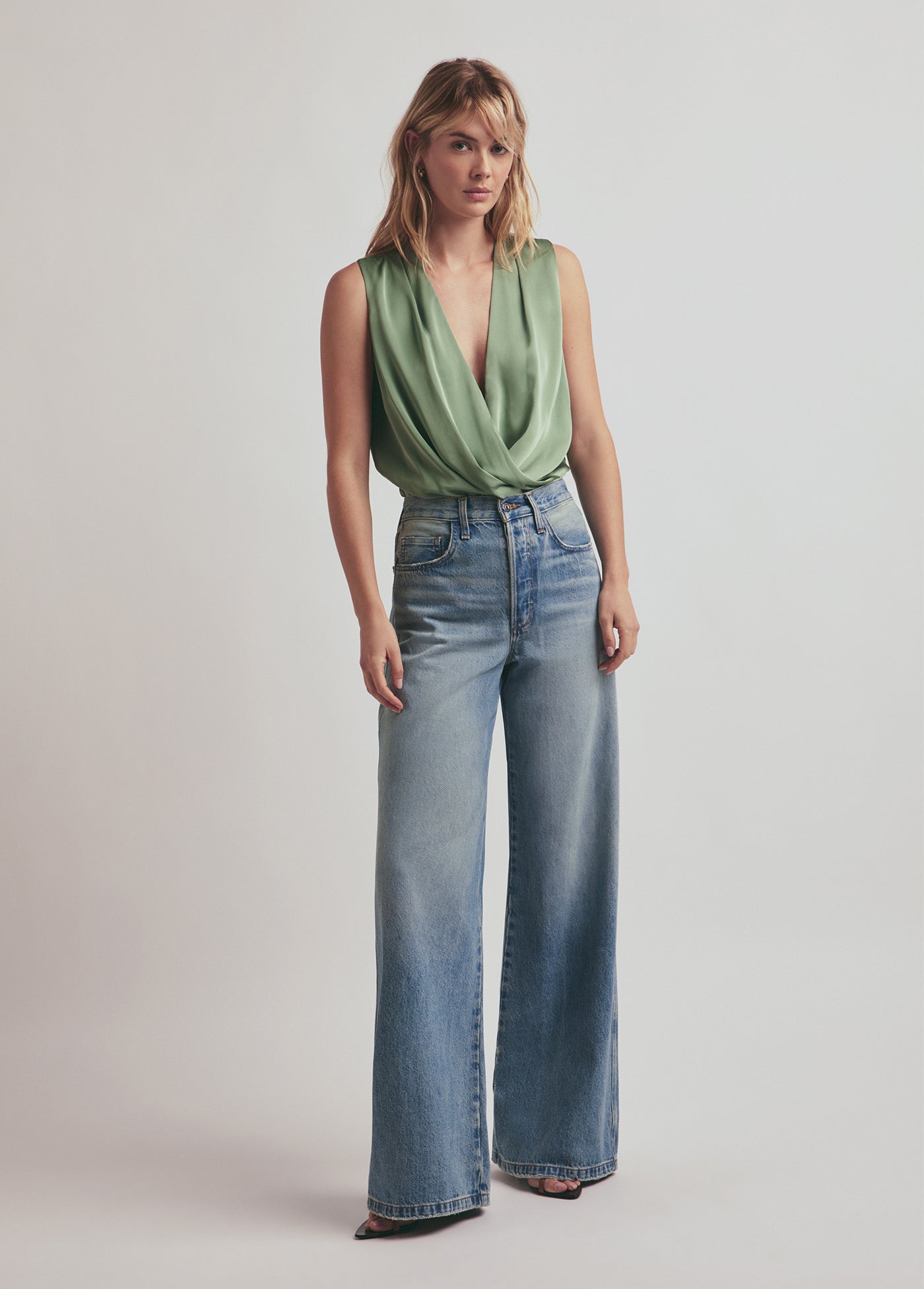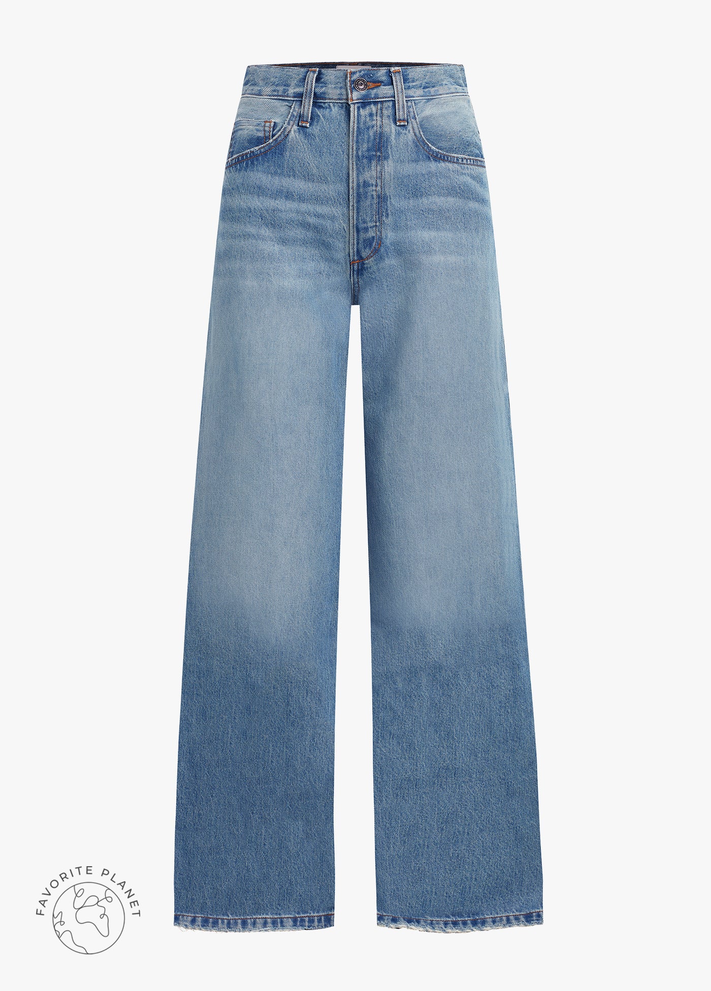 The Masha is a 33" full length, five-pocket style with a 12" super high rise and slightly pinched waist. The wide-leg fit is easy at the hips and thigh with a generous hem that’s styled to sweep the floor. Cast in a medium blue hue, this denim is part of our Favorite Planet collection that's gentler on our environment. The Margate wash has a vintage touch and was crafted using lasers instead of stones or chemicals to qualiify for a low impact environmental rating.
