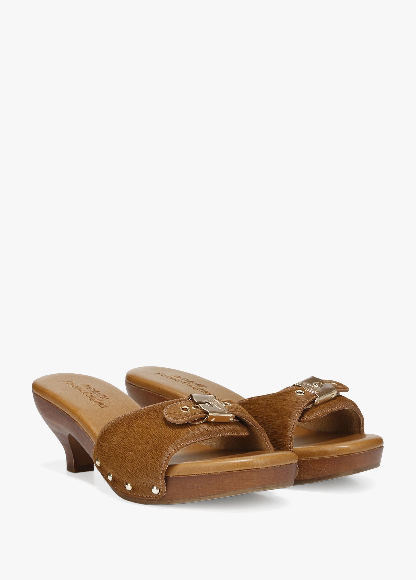 We created a fresh take on our favorite Dr. Scholl's Original Sandal--a walkable kitten heel, luxe calf hair and all the nostalgic charm we loved growing up (iconic buckle & handmade artisanal wood clog sole). Easy and elevated—just the way we like it.