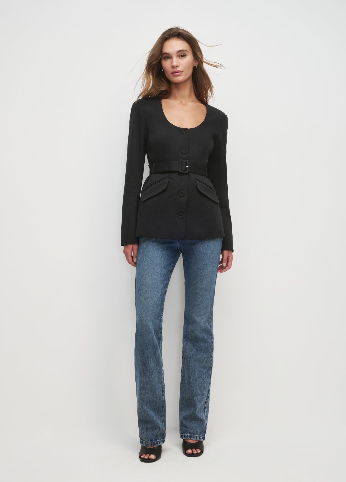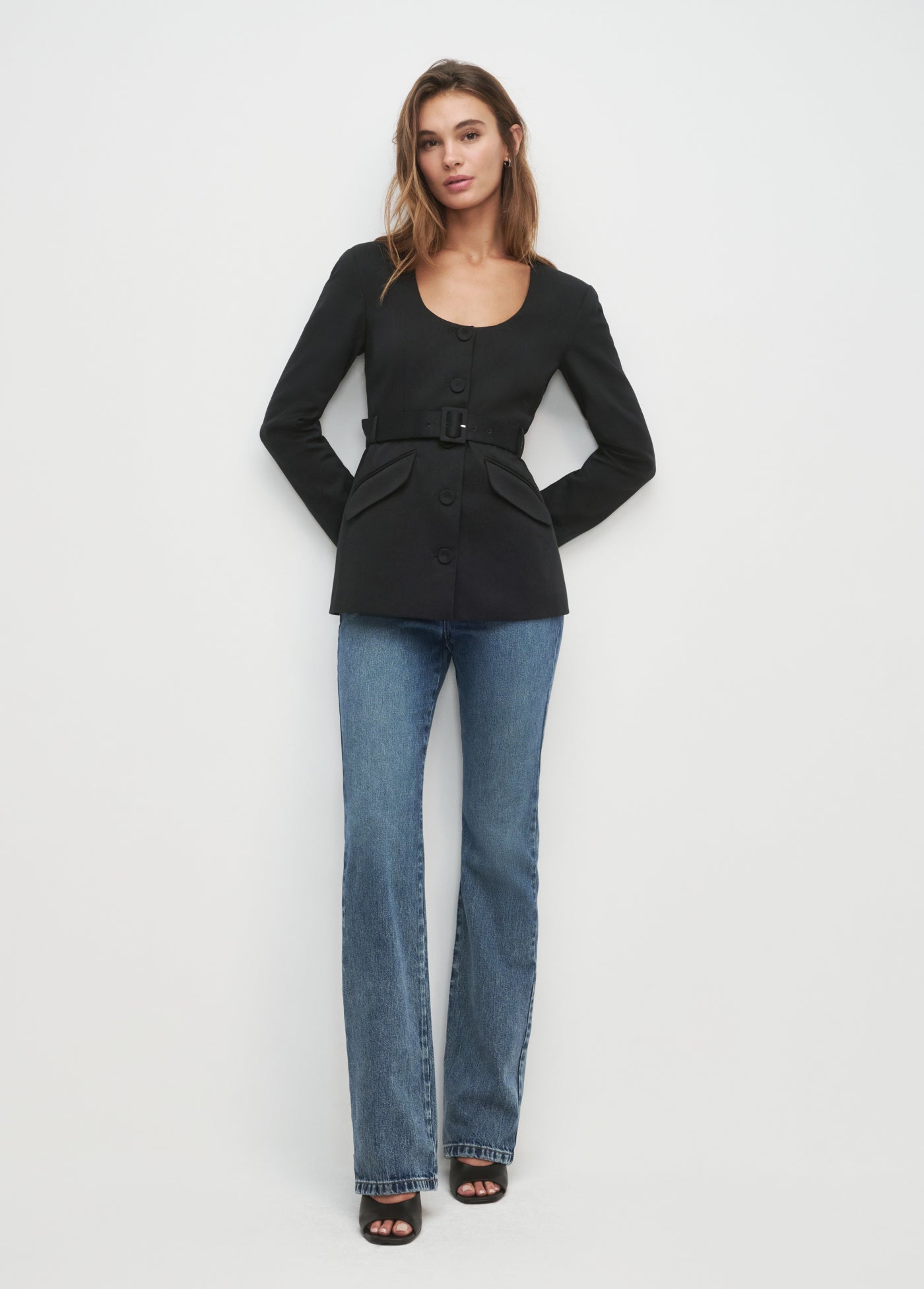 The Christy Jacket is our updated take on the best-selling Diana Jacket, now in soft cotton twill with a relaxed fit. Use the self-fabric belt to cinch your waist and give yourself an hourglass moment, or wear it open and effortless. Make it a matching set with The Favorite Mini Short in Black.