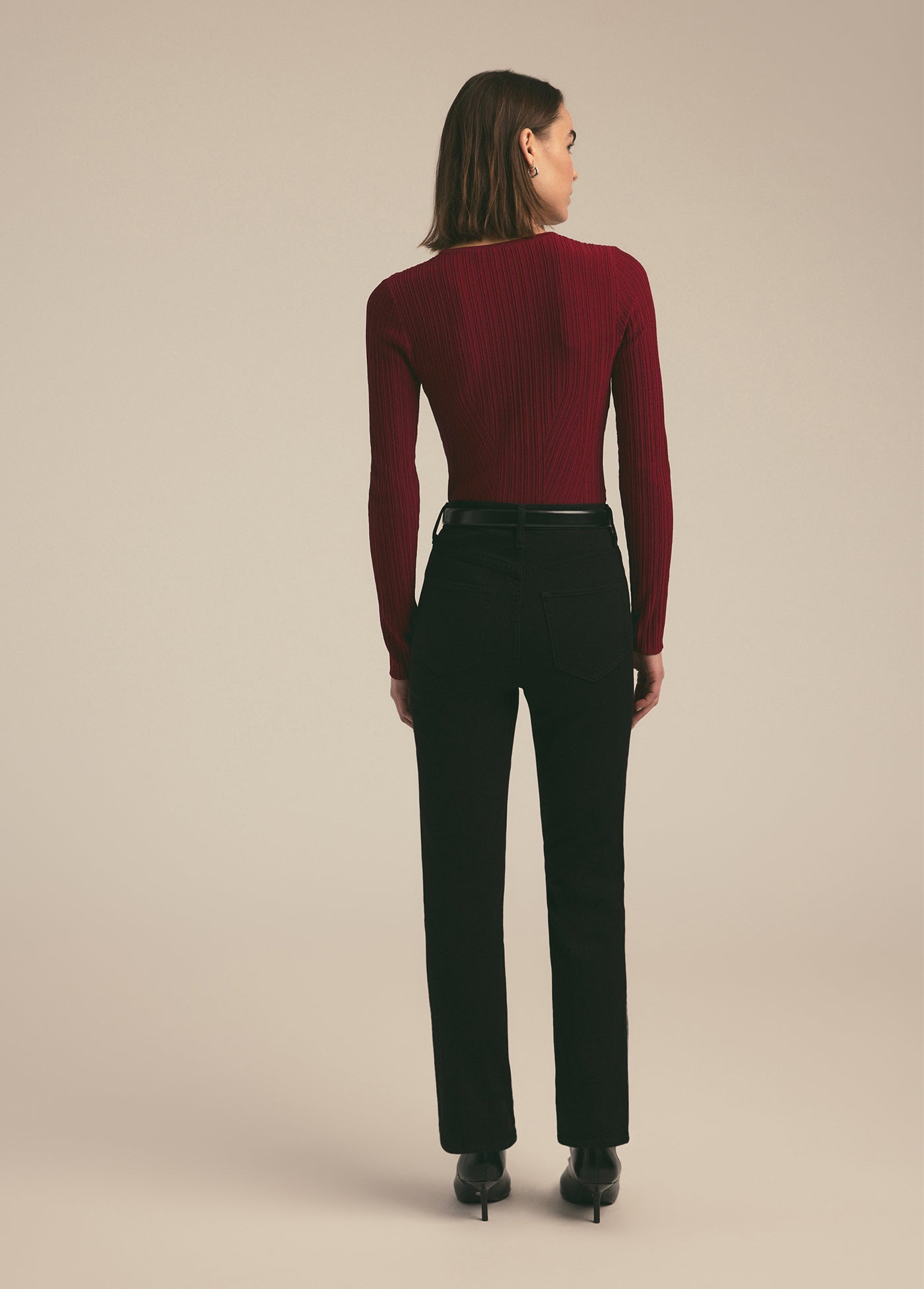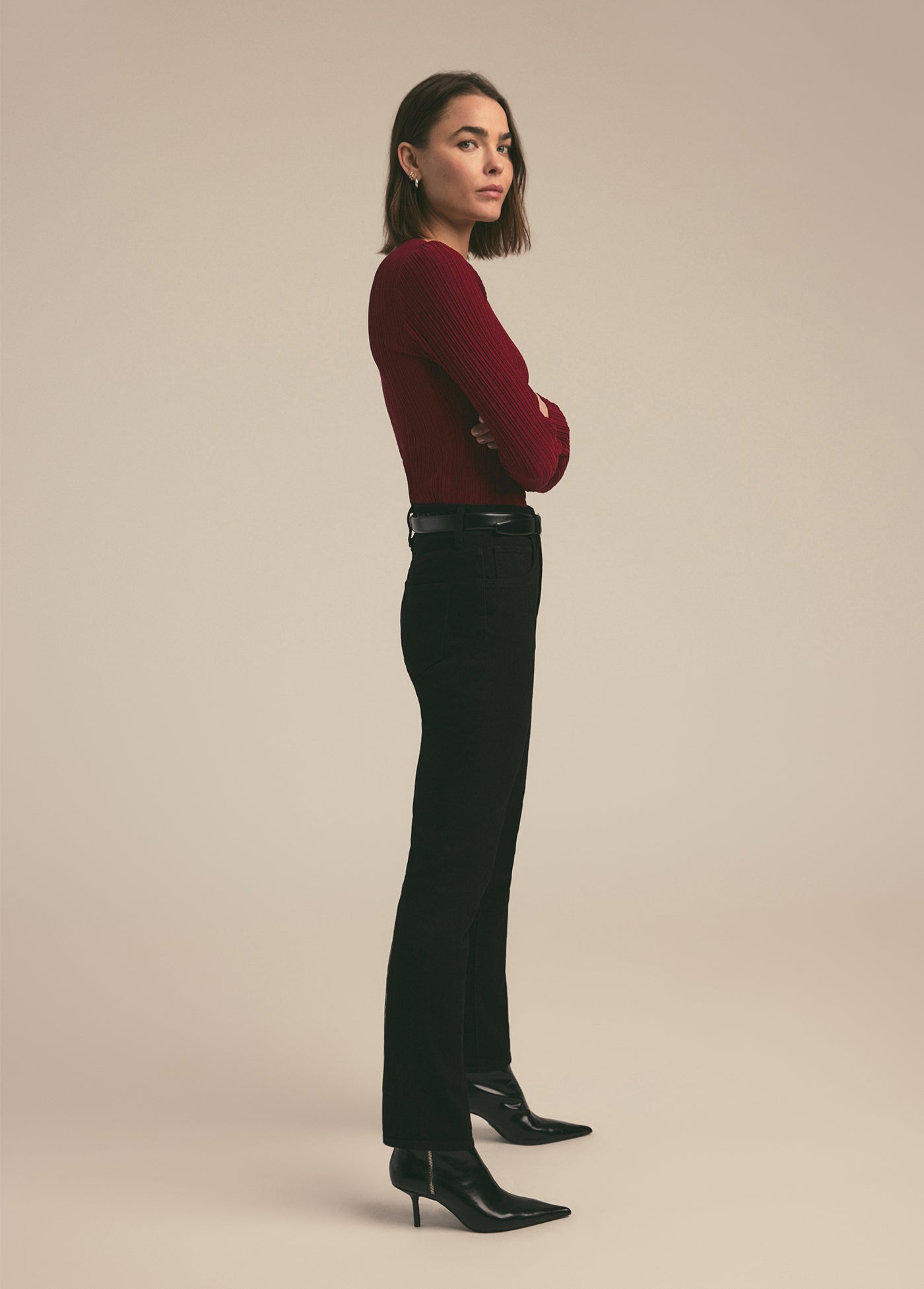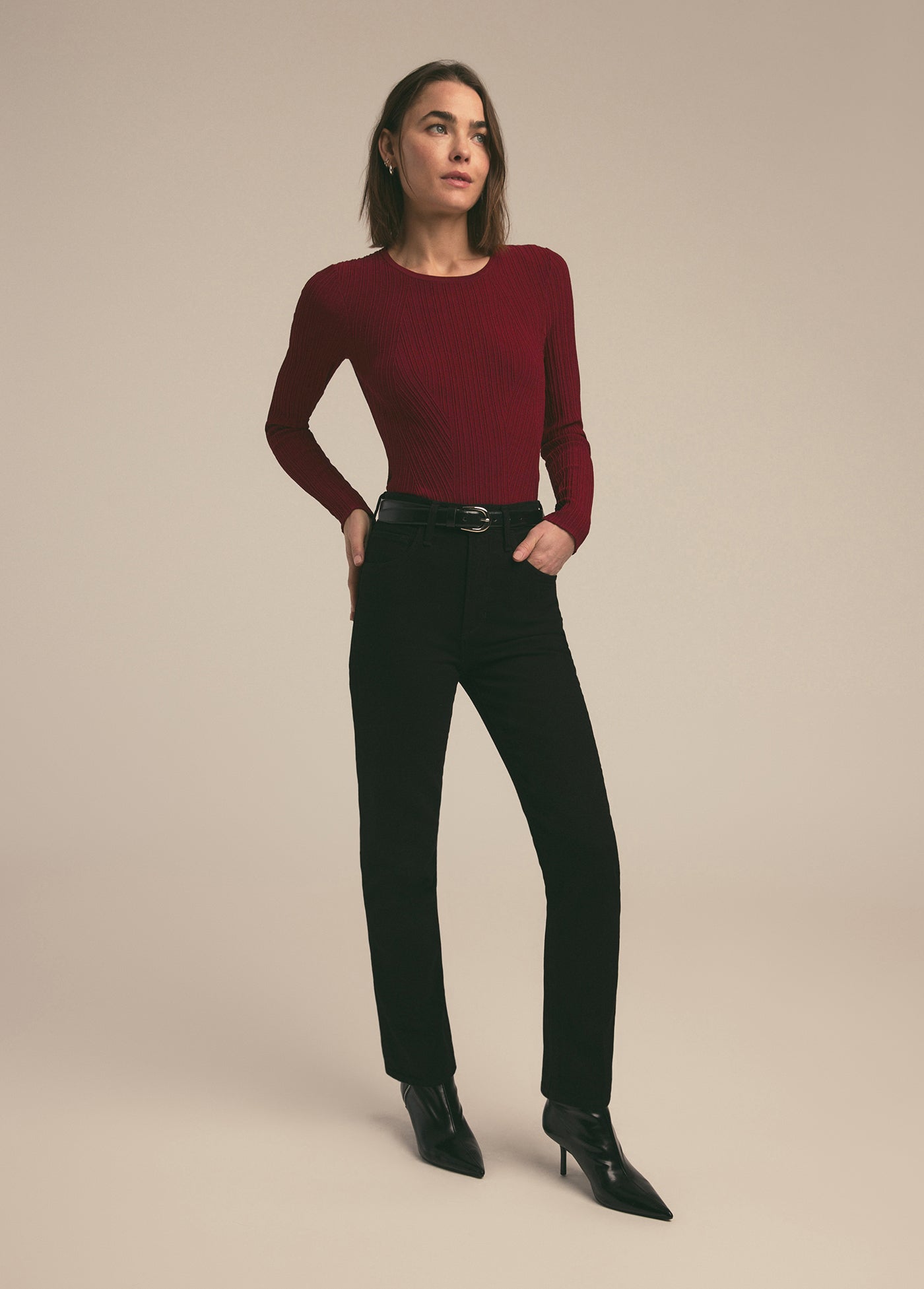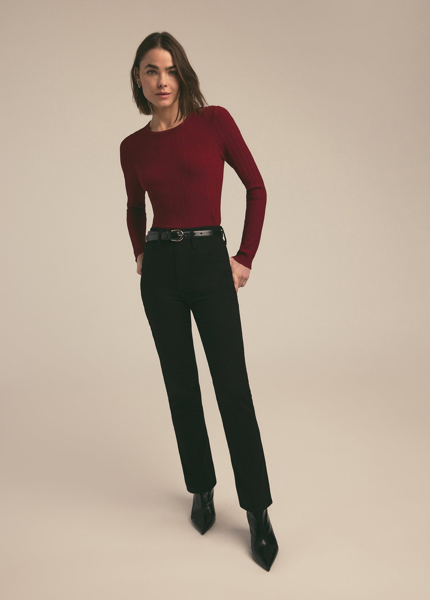 Meet your new favorite essential. The Courtney Top is made from a knit rib for a tailored, slim fit. With a rounded neckline and long sleeves, it's an everyday must-have to wear on its own or styled under a blazer for days in the office.