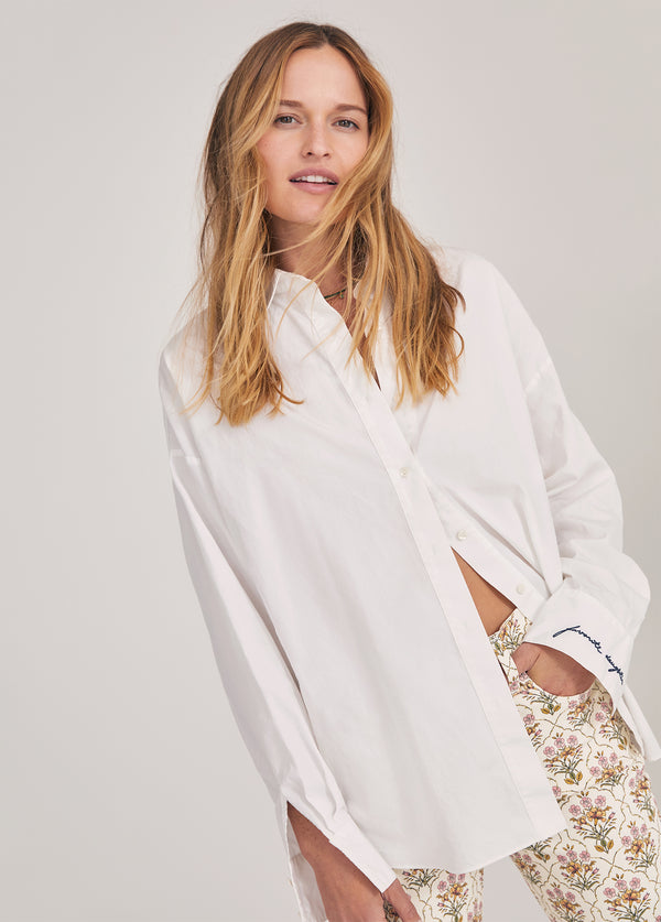 Most ex-boyfriends suck. But this shirt doesn't. With an oversized cut in a lightweight smooth cotton fabric, this striped poplin button up has a relaxed fit, pointed collar and back box pleat. French tuck into white denim or wear open over the Ex-boyfriend bra to show him you're over it.