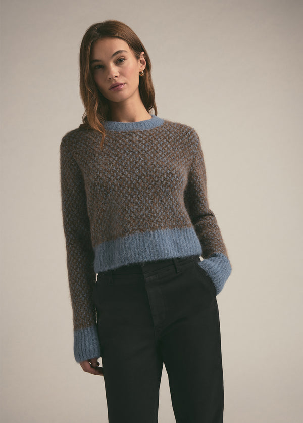 Chase away the winter blues with The Miles Sweater--knit from a responsibly-sourced alpaca-wool blend. The two-tone crewneck is cut for an easy, slim fit in an intricate geo-pattern stitch.