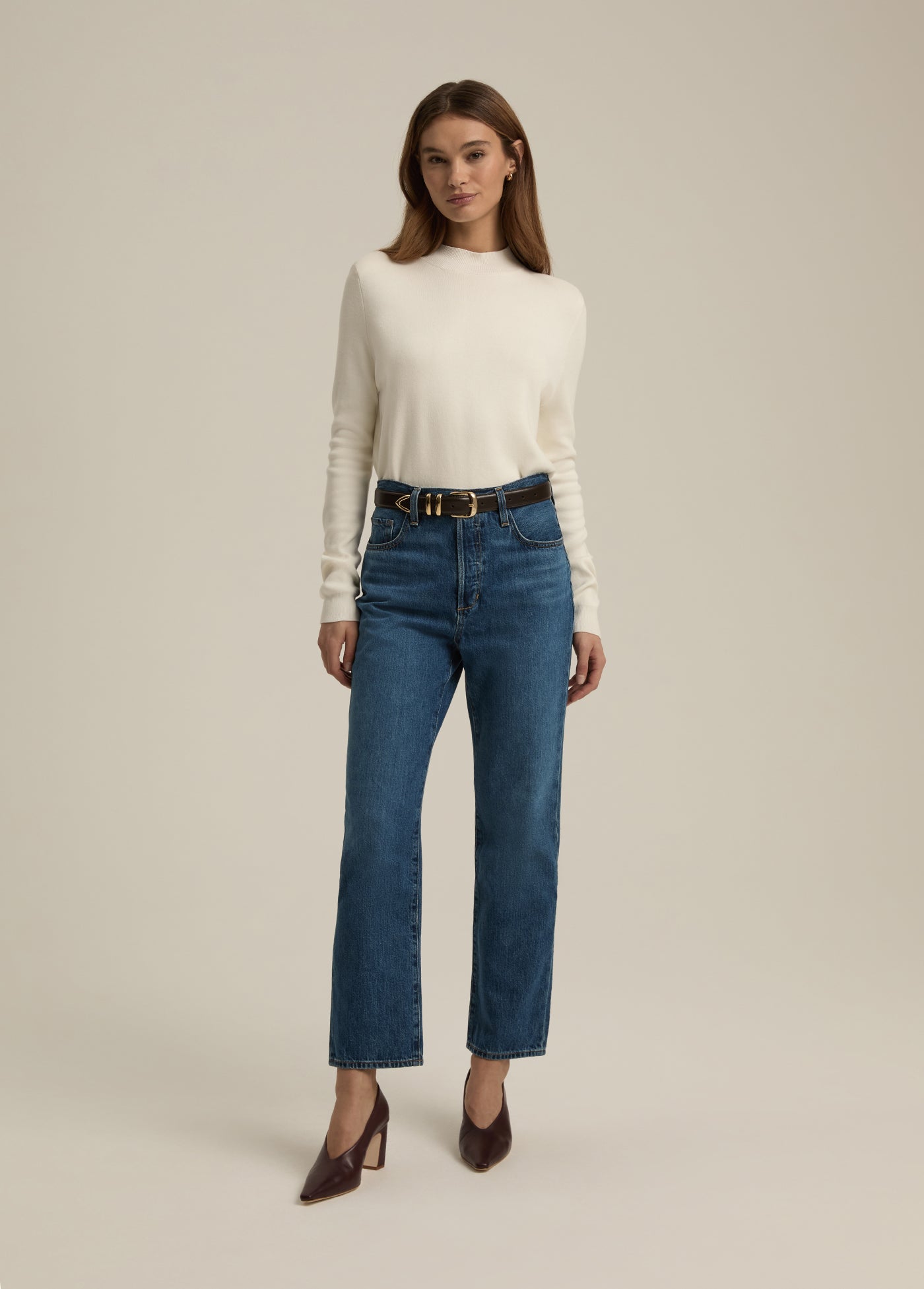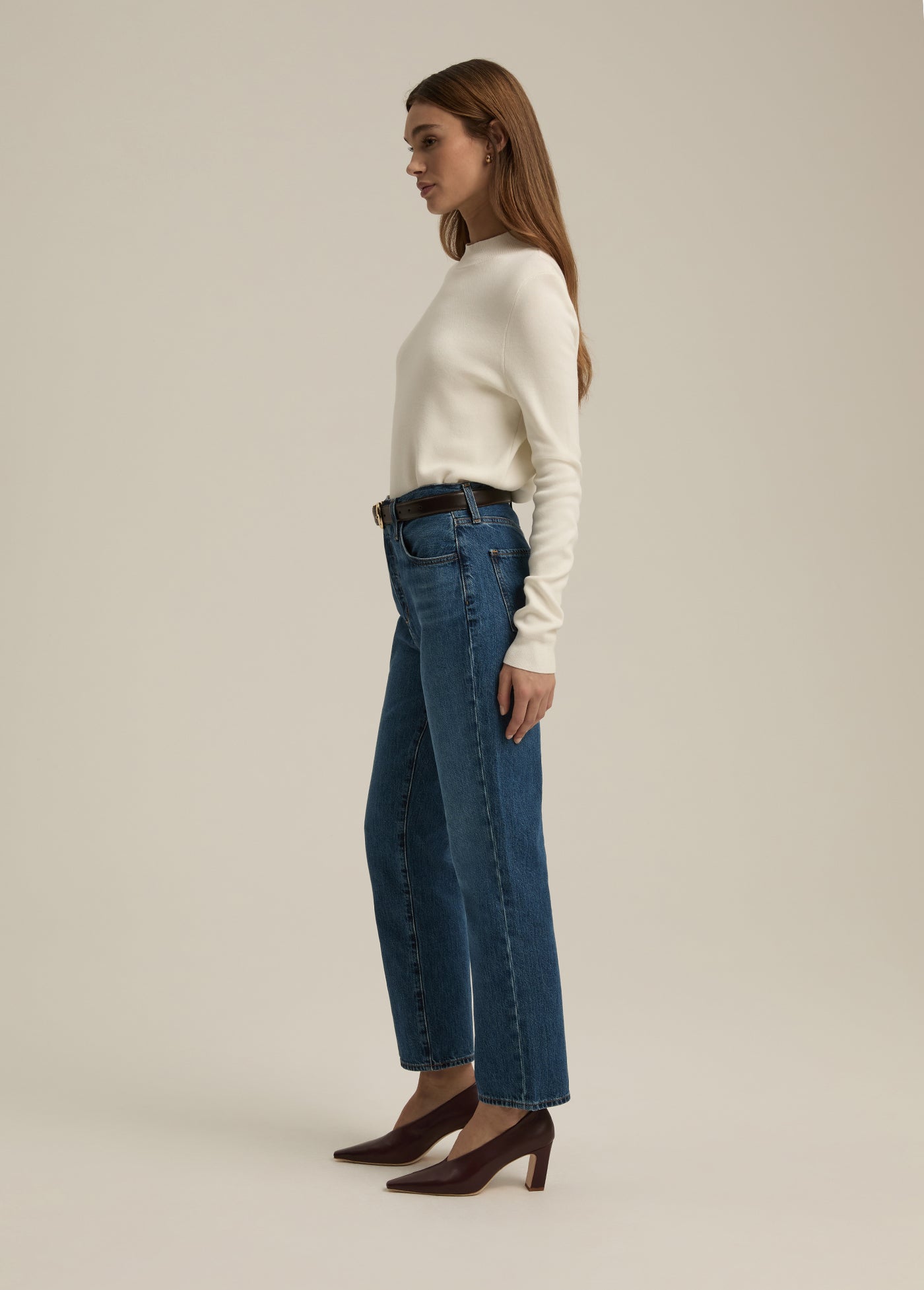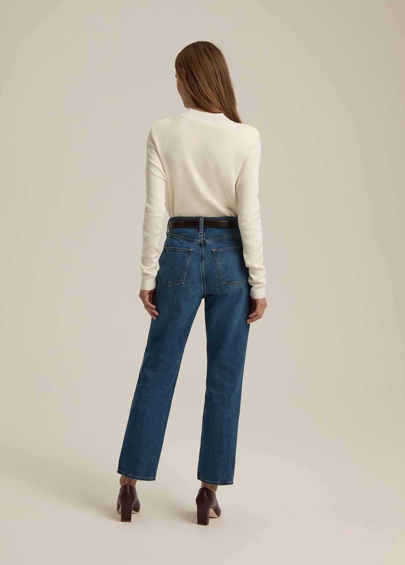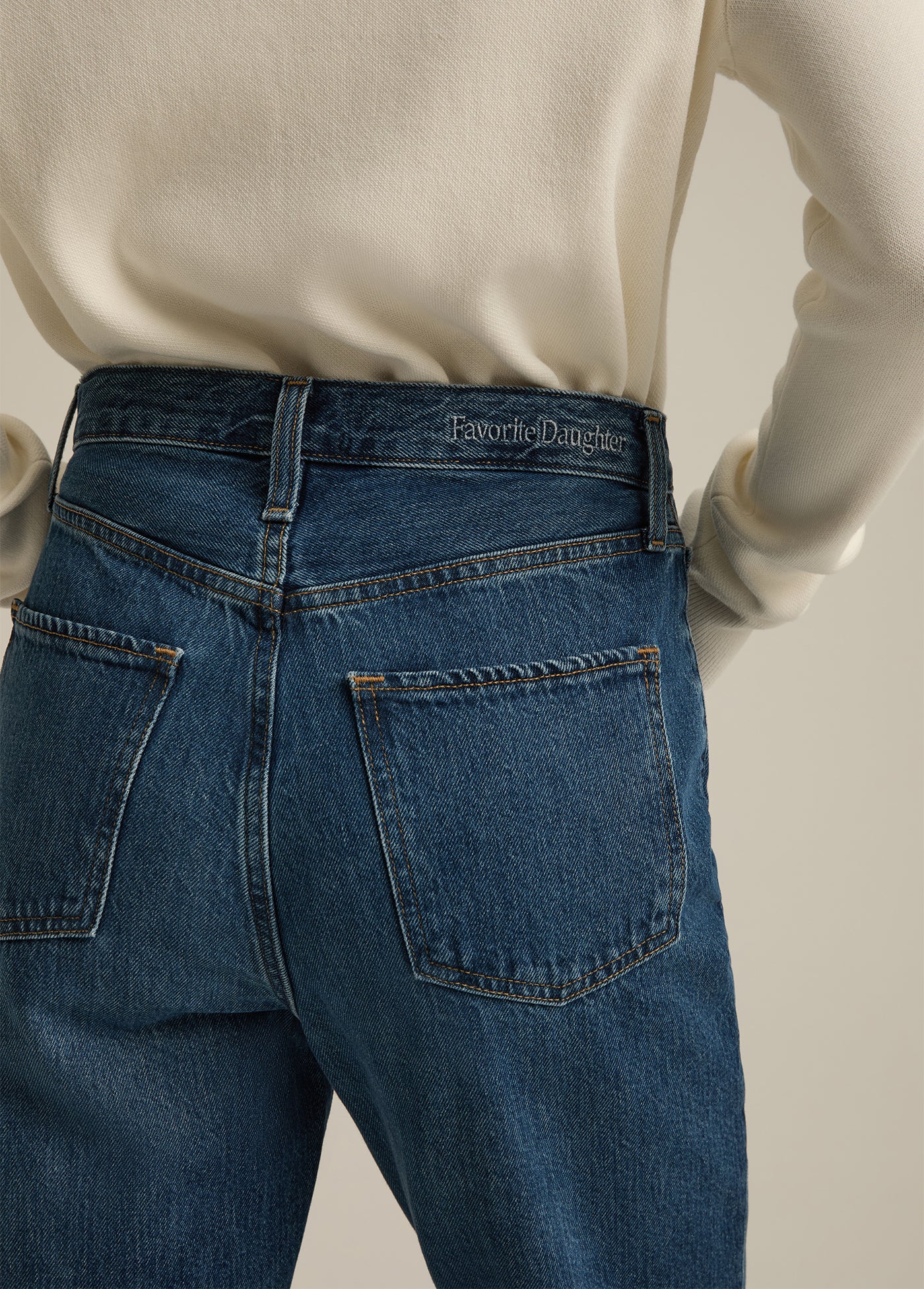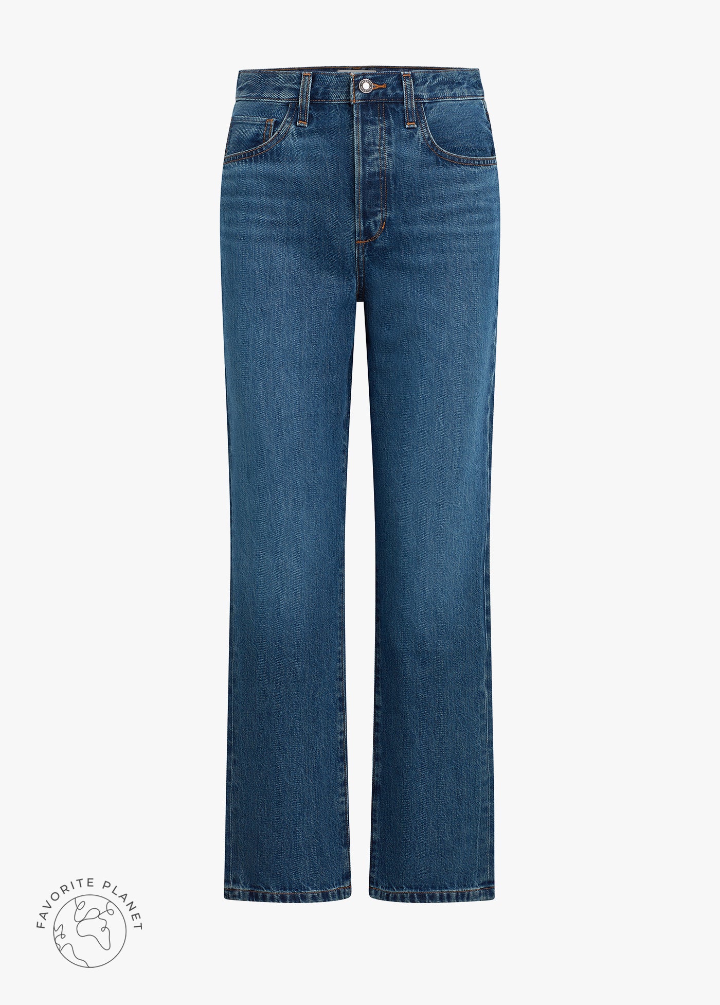 The extreme high rise of these relaxed straight legs is easy at the hip and flattering at the waist. In a traditional medium blue, the Deane wash is part of our Favorite Planet collection that's gentler on the environment by using lasers instead of stones or chemicals during production.