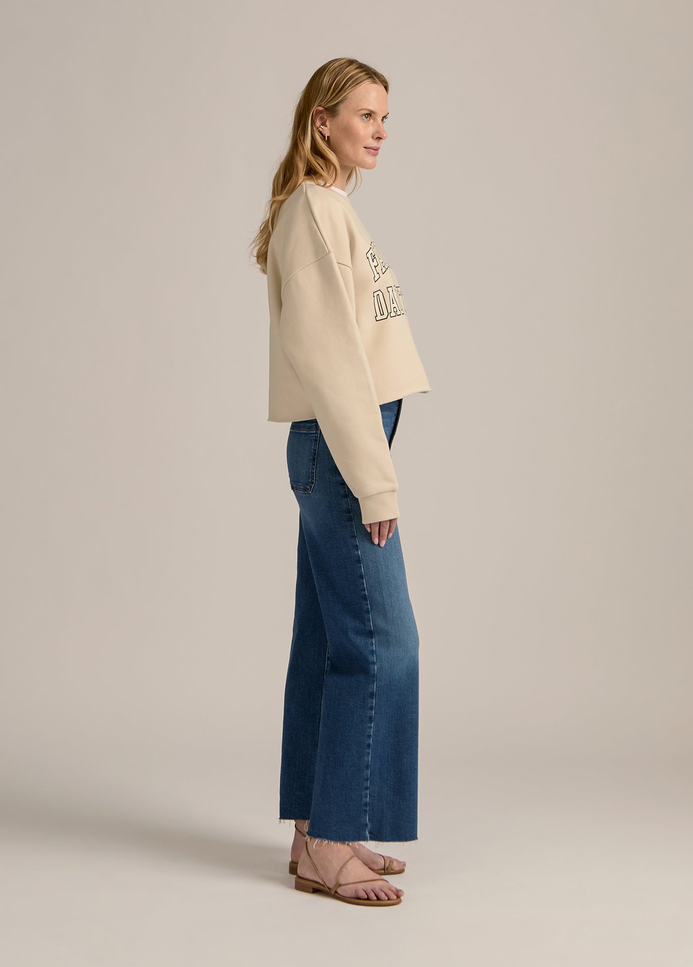 Give it the old college try with our cropped collegiate sweatshirt. With the drop shoulder and relaxed fit, this collegiate classic will go to the head of the class (and your closet).