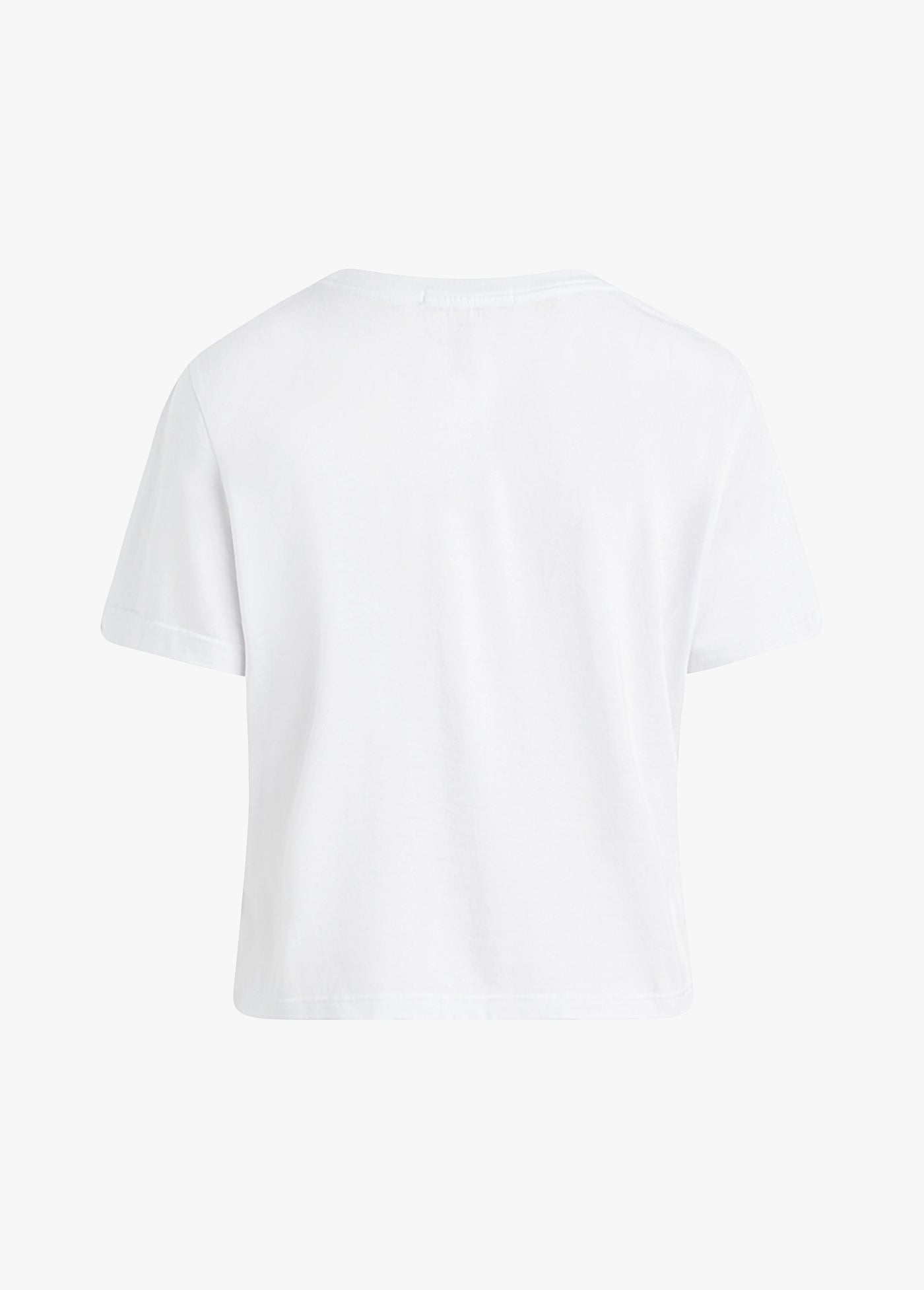 So there's no confusion. This classic cut tee says it all--simply styled in a soft tri-blend cotton with a cropped fit. Wear it to run errands, style it for a Friday night and rock it at the next family reunion.