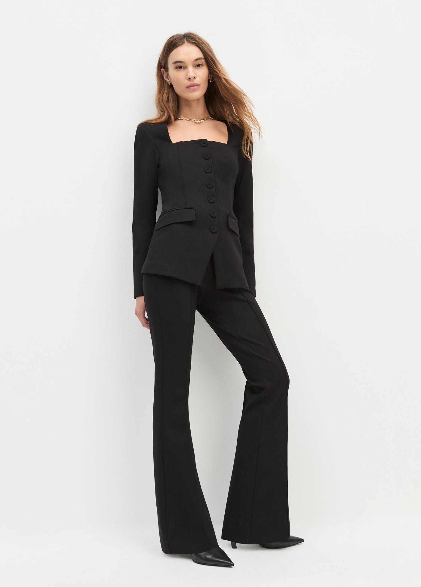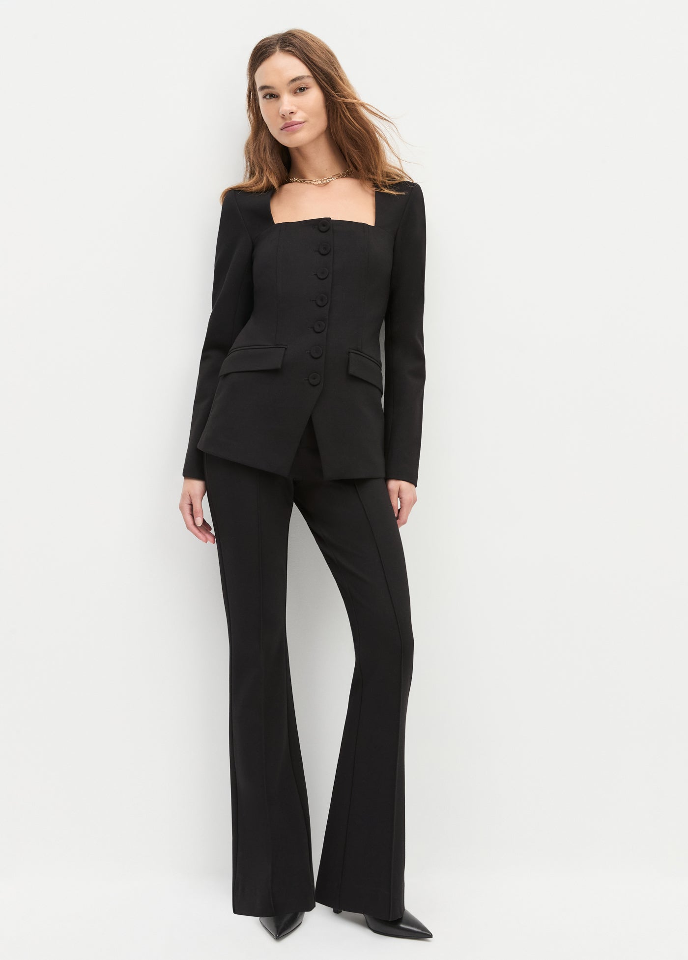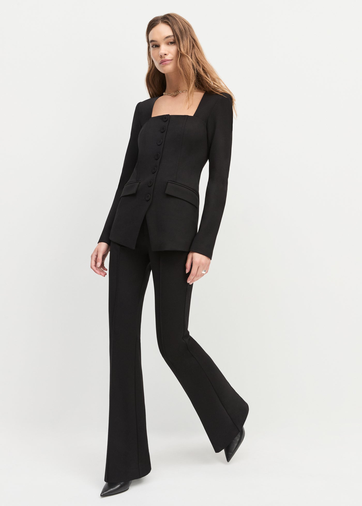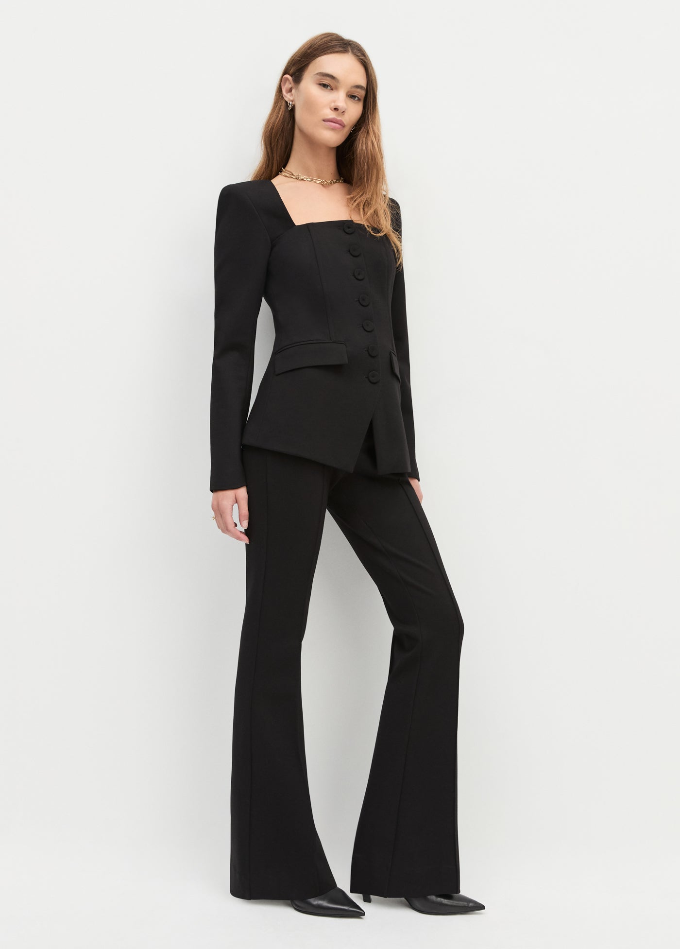 The Devin Pant has the comfort of a legging, styled like a fitted trouser. Made from stretchy ponte with a 11" rise, 34" inseam and a just-right flare at the ankle. A favorite with The Penelope Top.