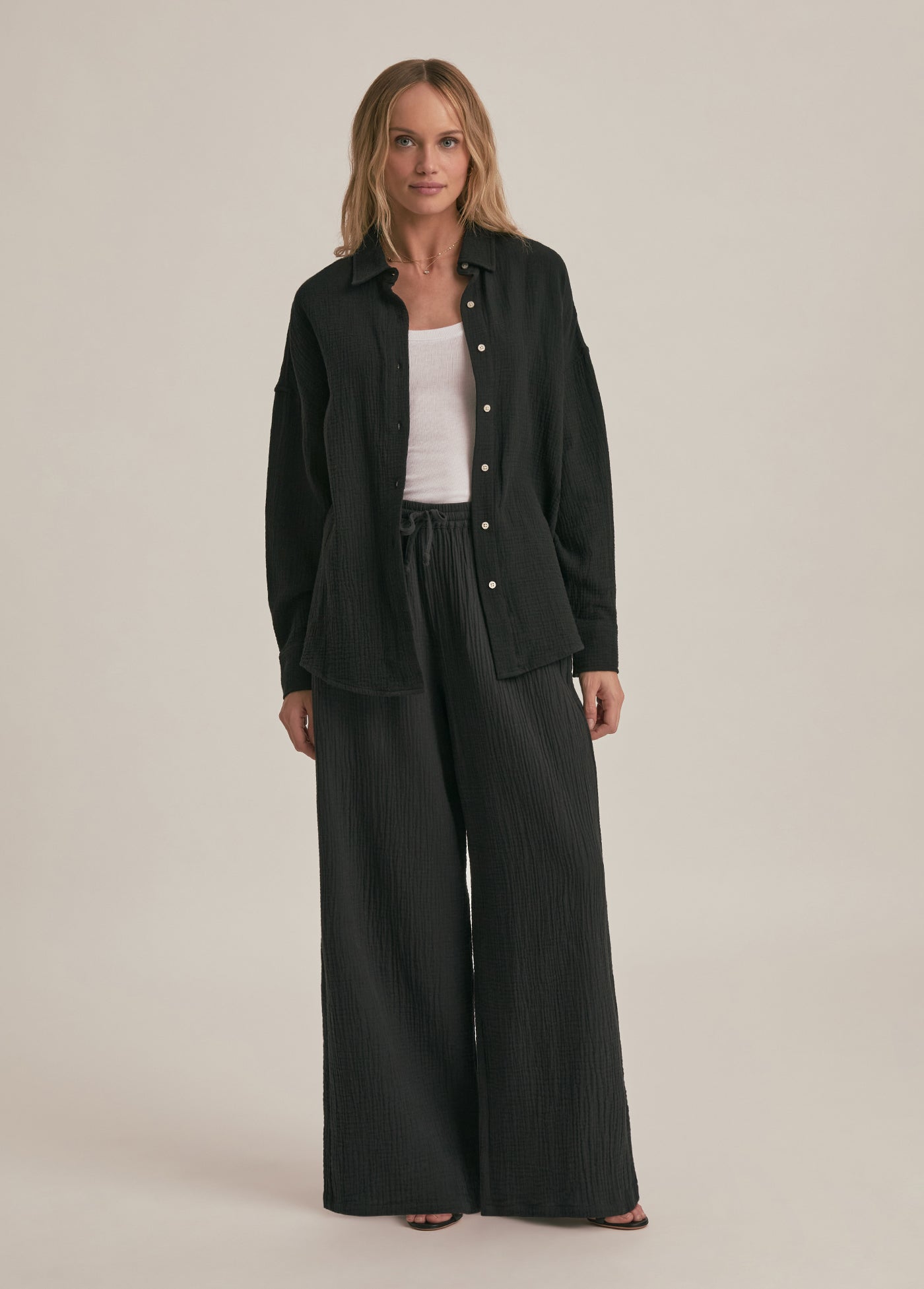 With a relaxed fit and pointed collar, the Ex-Boyfriend Shirt is an oversized button up cut from a lightweight gauze, perfect for breezy summer days. Our favorite way to wear this shirt is, actually, any way–tied, tucked, half-tucked, and unbuttoned with the coordinating Slip It On Pant.