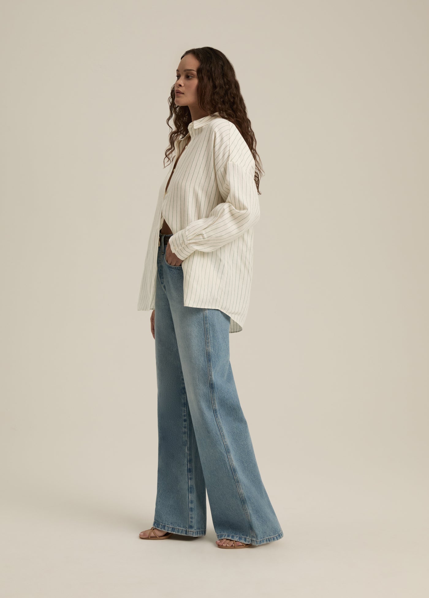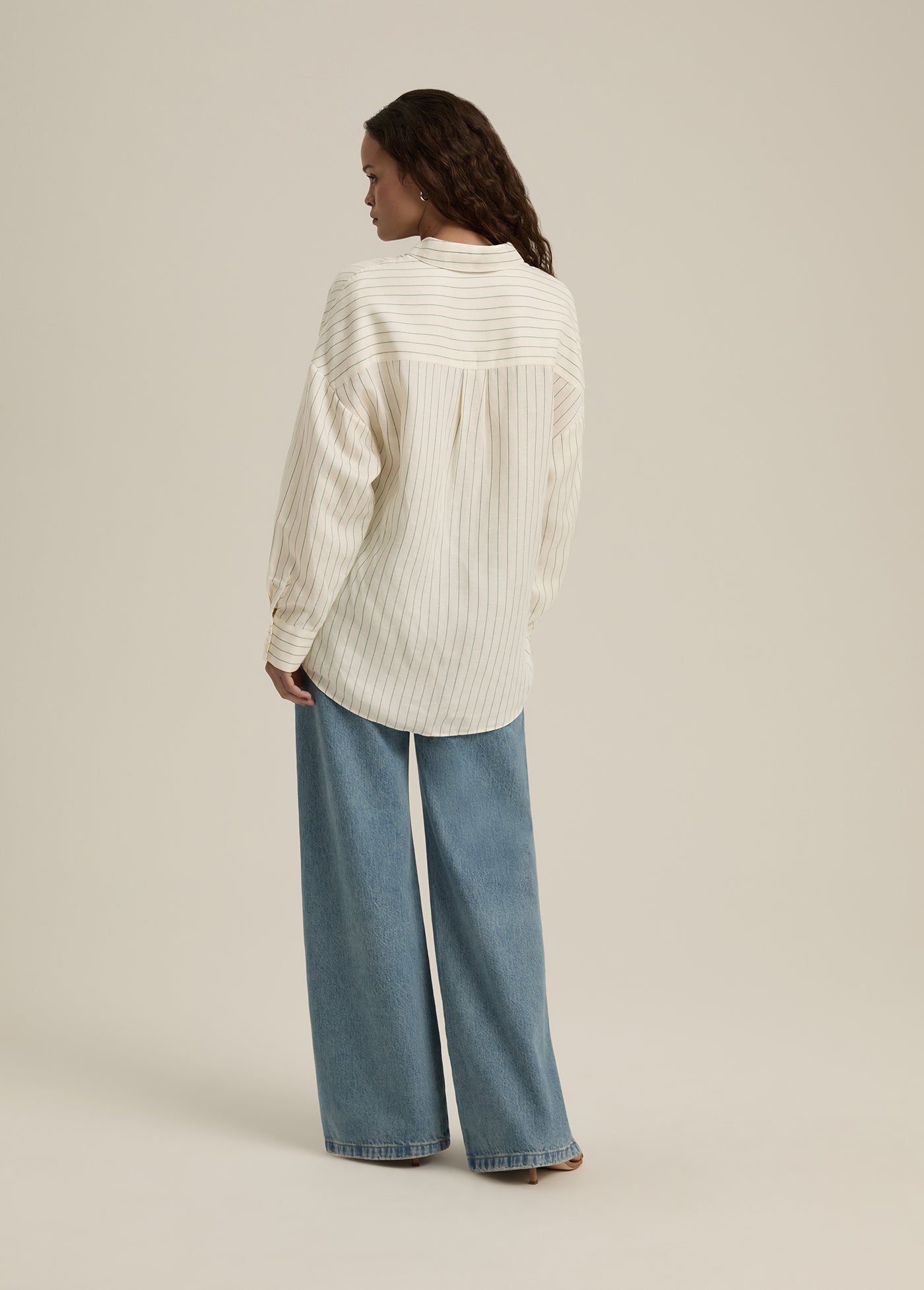With a relaxed fit and pointed collar, the Ex-Boyfriend Shirt in Emerald Stripe is an oversized button up cut from a lightweight linen blend. Our favorite way to wear this shirt is, actually, any way–tied, tucked, half-tucked, and unbuttoned with the coordinating Paige Pant.