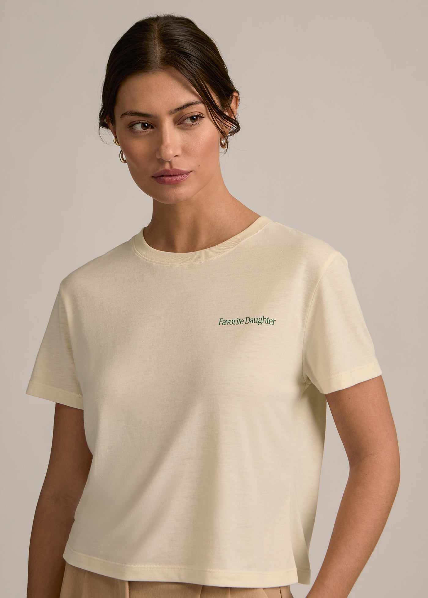So there's no confusion. This classic cut tee says it all--simply styled in a tri-blend cotton with a cropped fit. Wear it to run errands, style it for a Friday night and rock it at the next family reunion.