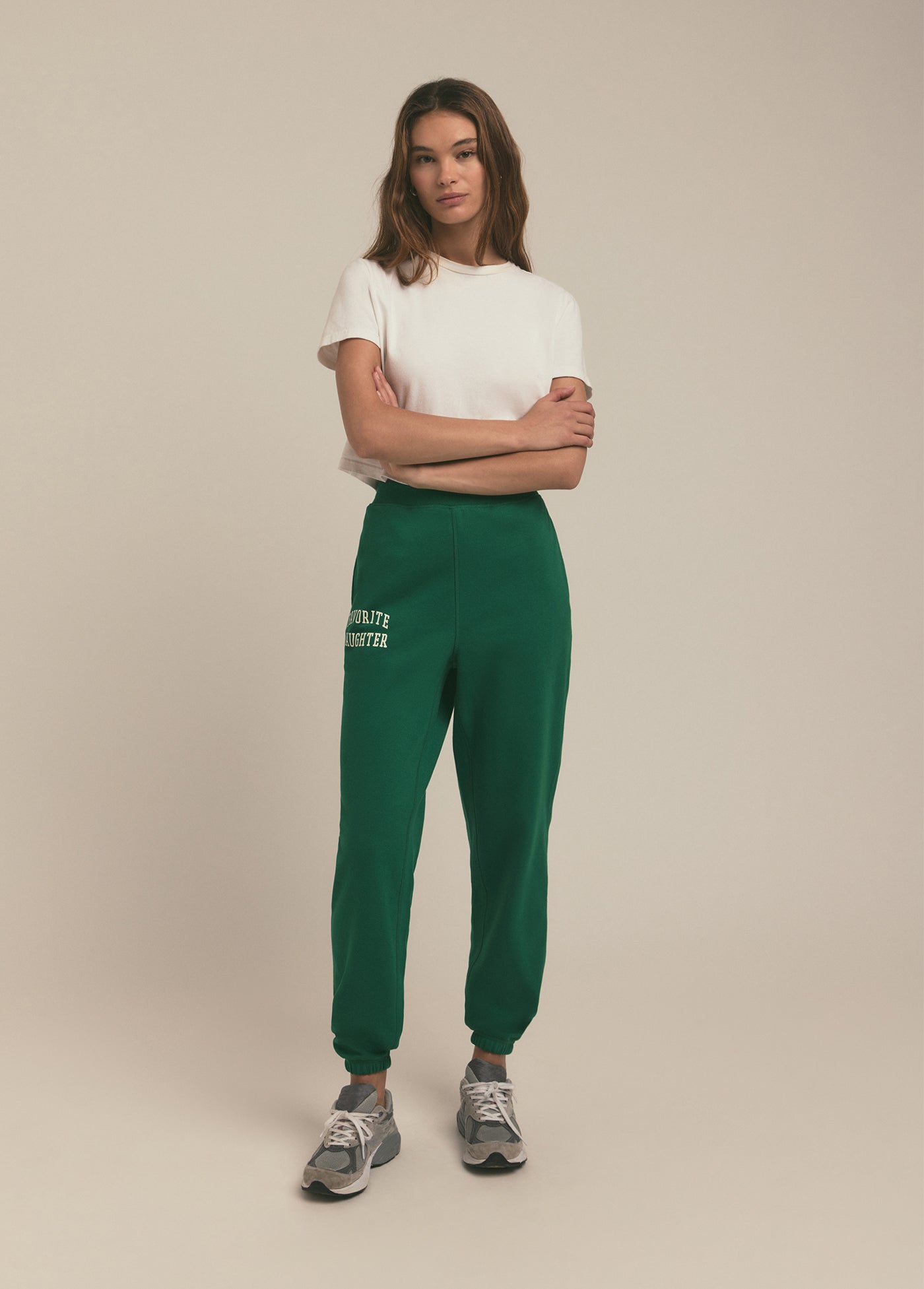 The comfiest pair ever constructed. The Logo Jogger is that super-soft favorite with all the style details—an elasticized waistband, side seam pockets, Favorite Daughter logo (of course), and a relaxed, classic fit. Designed with a 31" inseam and an 11.5" rise for the perfect laid-back feel.