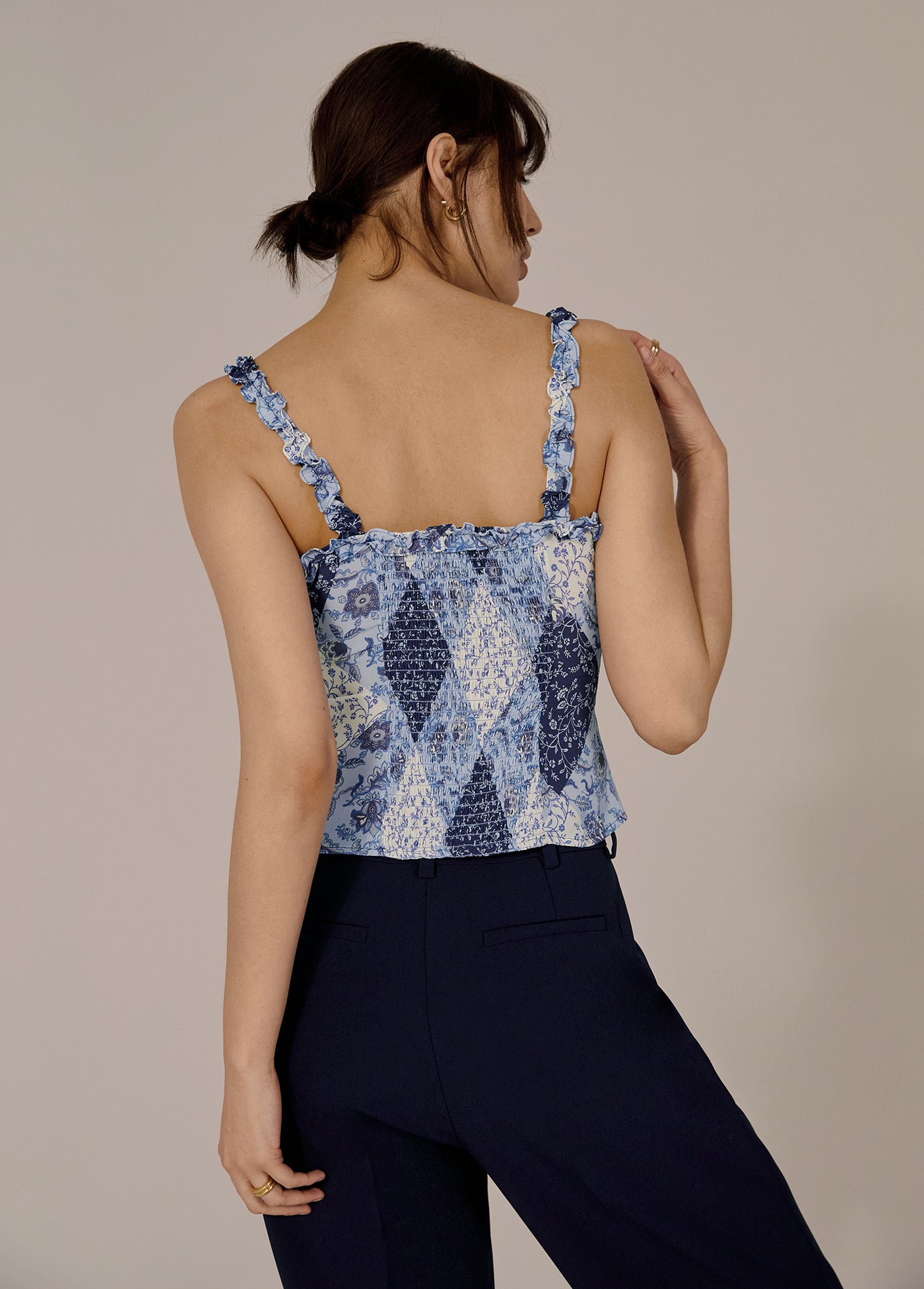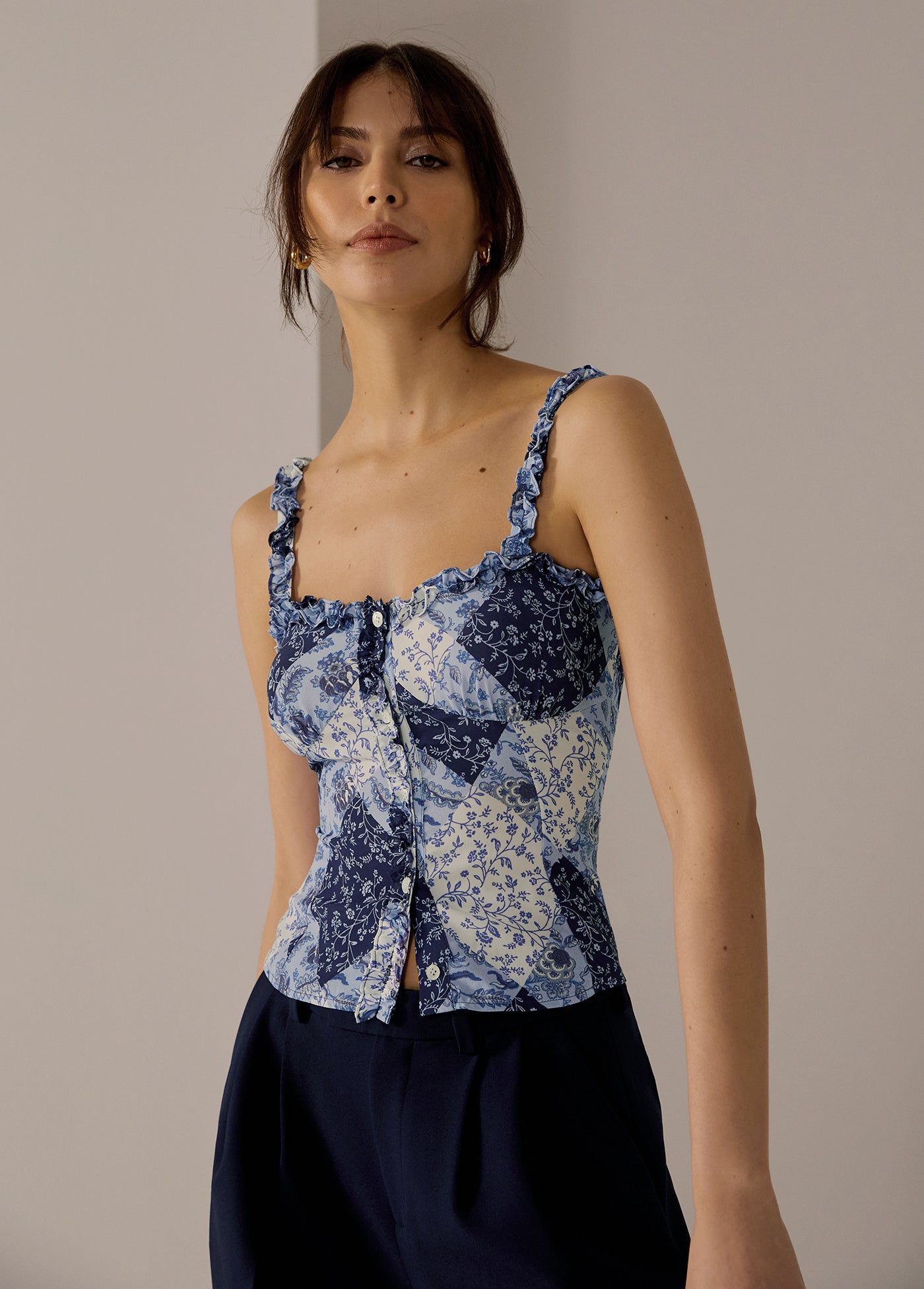 A little top with a lot of detail. The On A Break Top has a cute floral pattern set in blue with ruffle straps (that don't feel frilly), front buttons and smocked back. It's made from a sustainable crepe fabric that gives our planet a little break too.