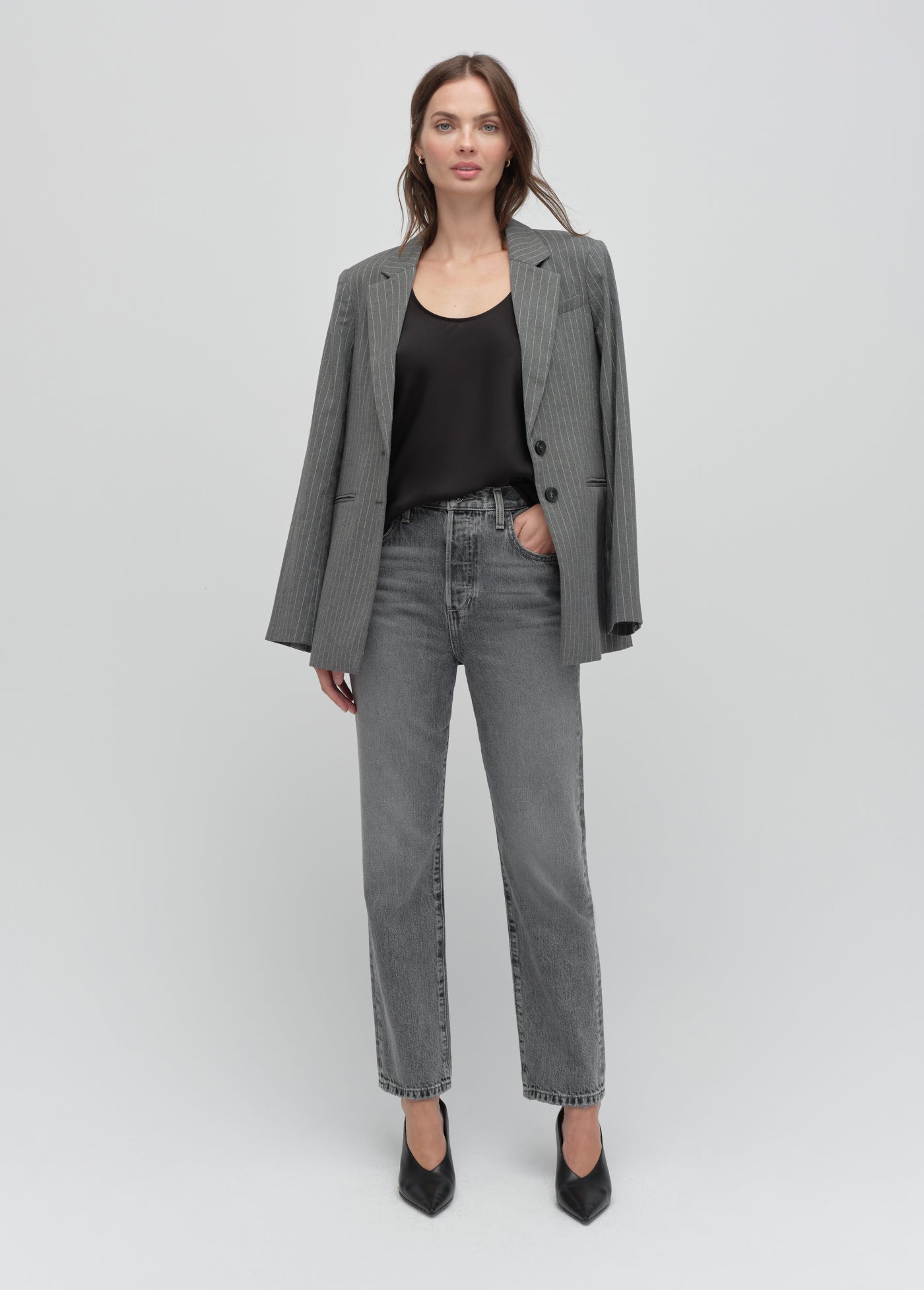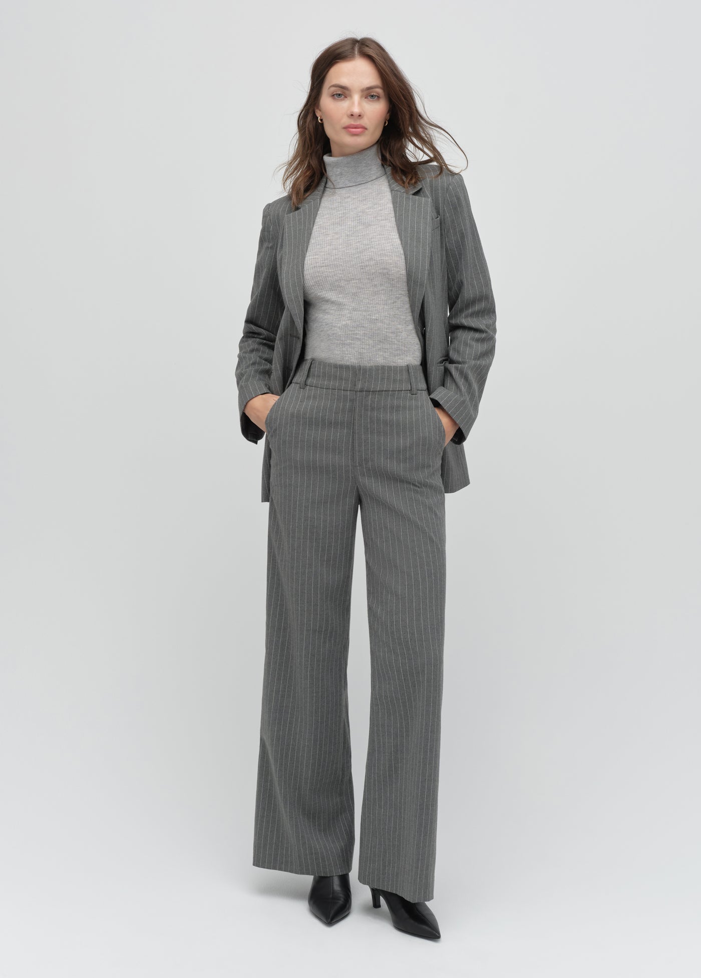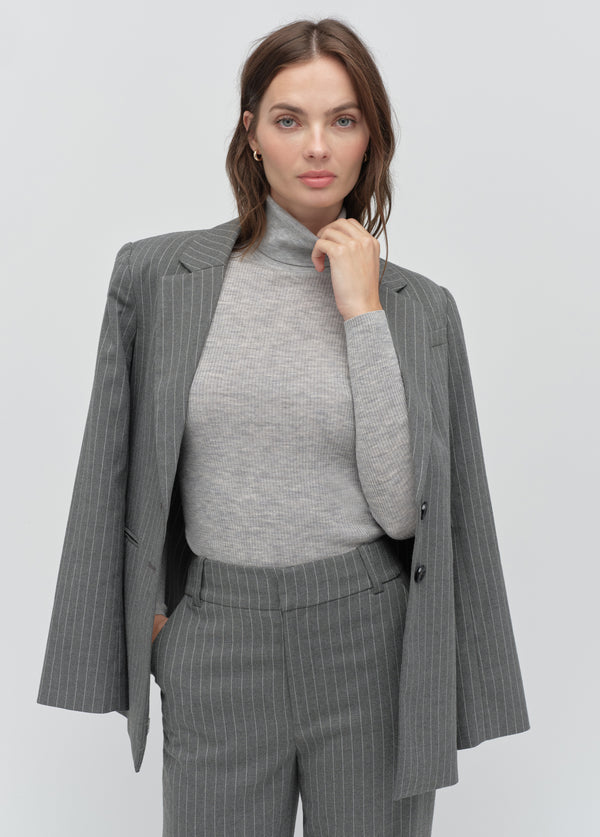 The Alexis Blazer in Shadow Pinstripe features a slim silhouette with a relaxed feel, thanks to its lightweight suiting fabric. Wear it with anything, or style it with The Jones Pant for an effortlessly cool, matching look.