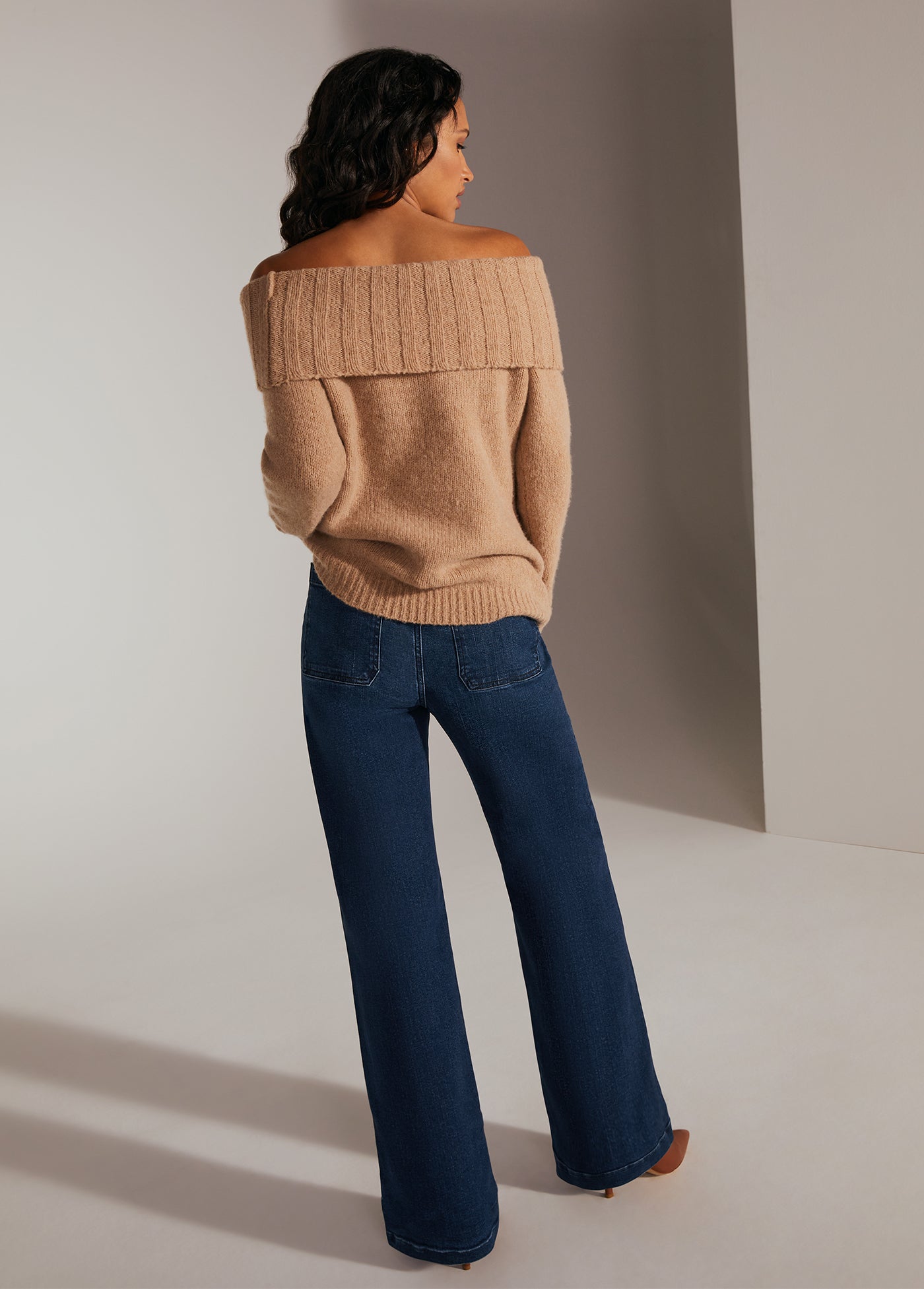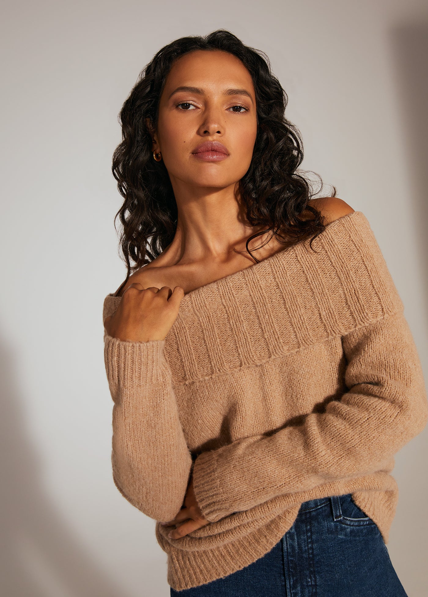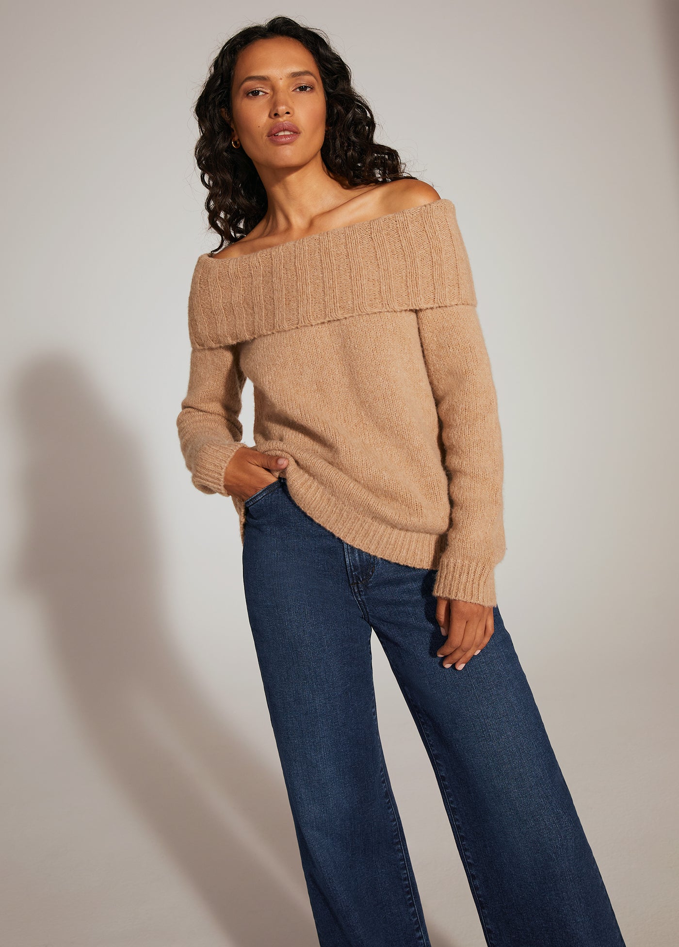 Comfy-yet-cool is actually a thing. It's called The Andrea Sweater. The wool-cashmere blend and relaxed, comfortable fit is styled perfectly with an off-the-shoulder neckline.