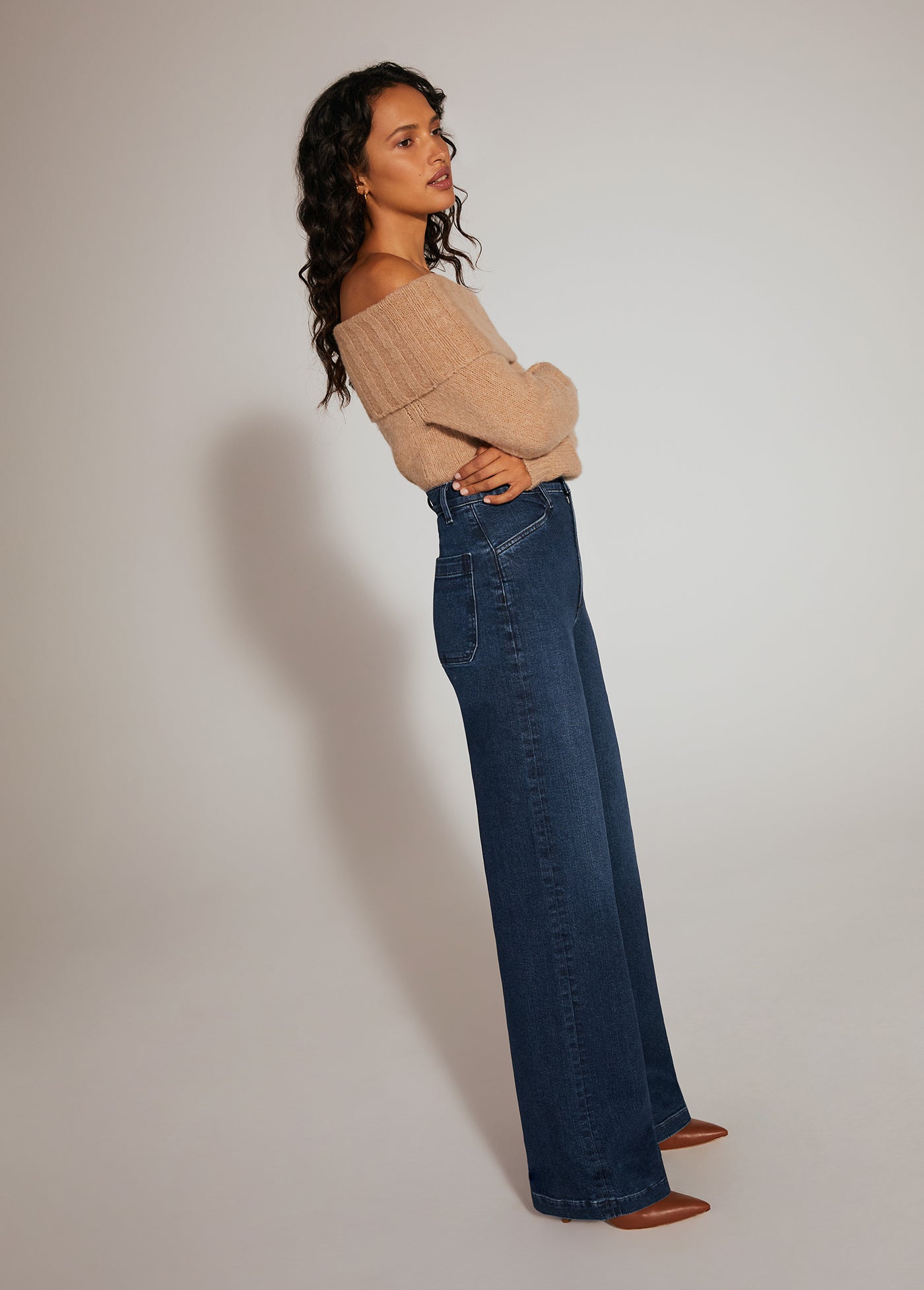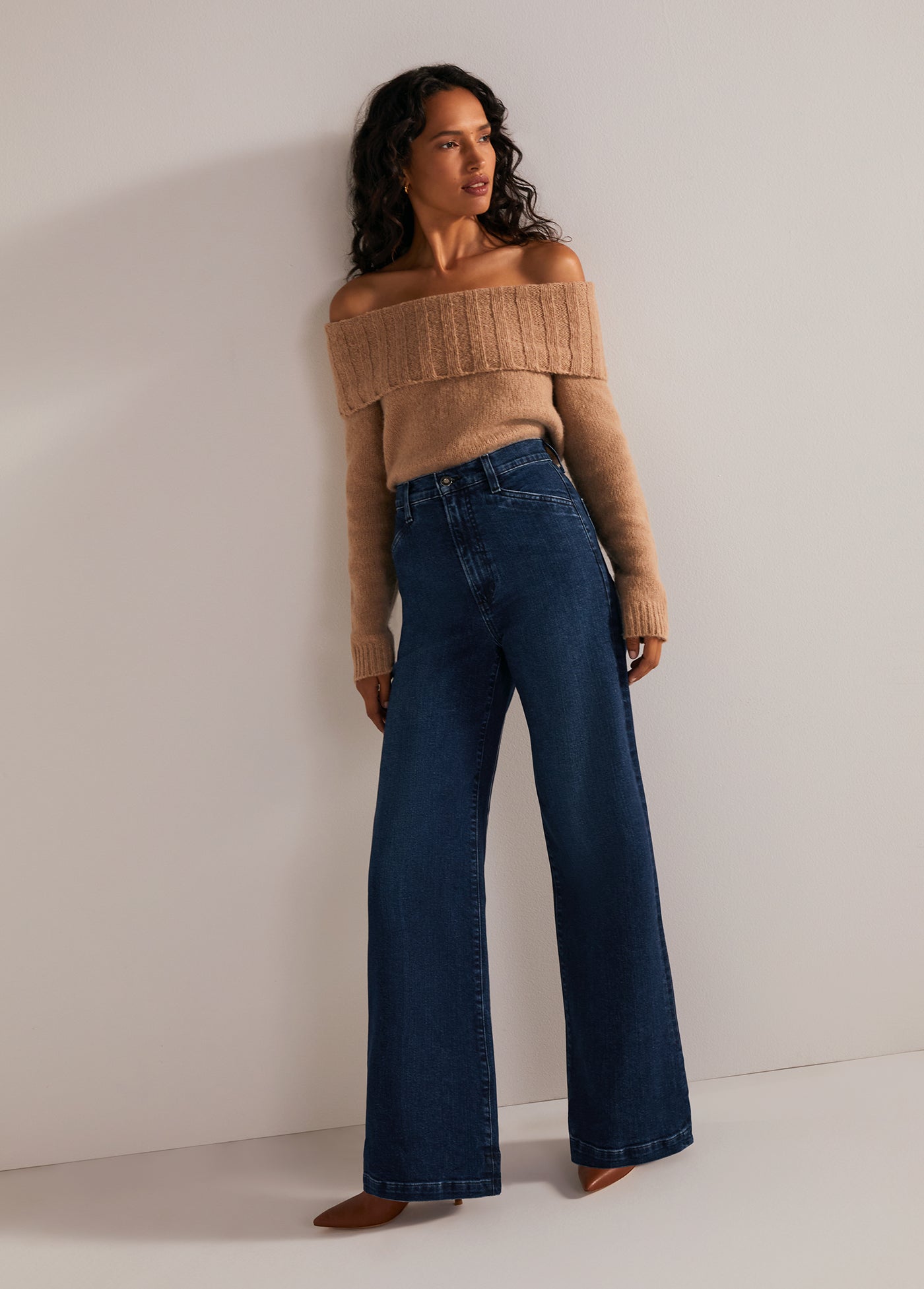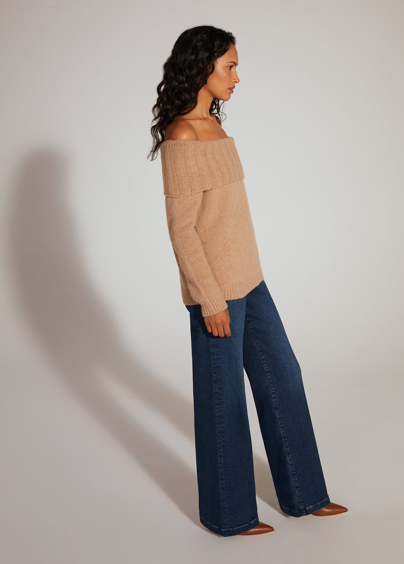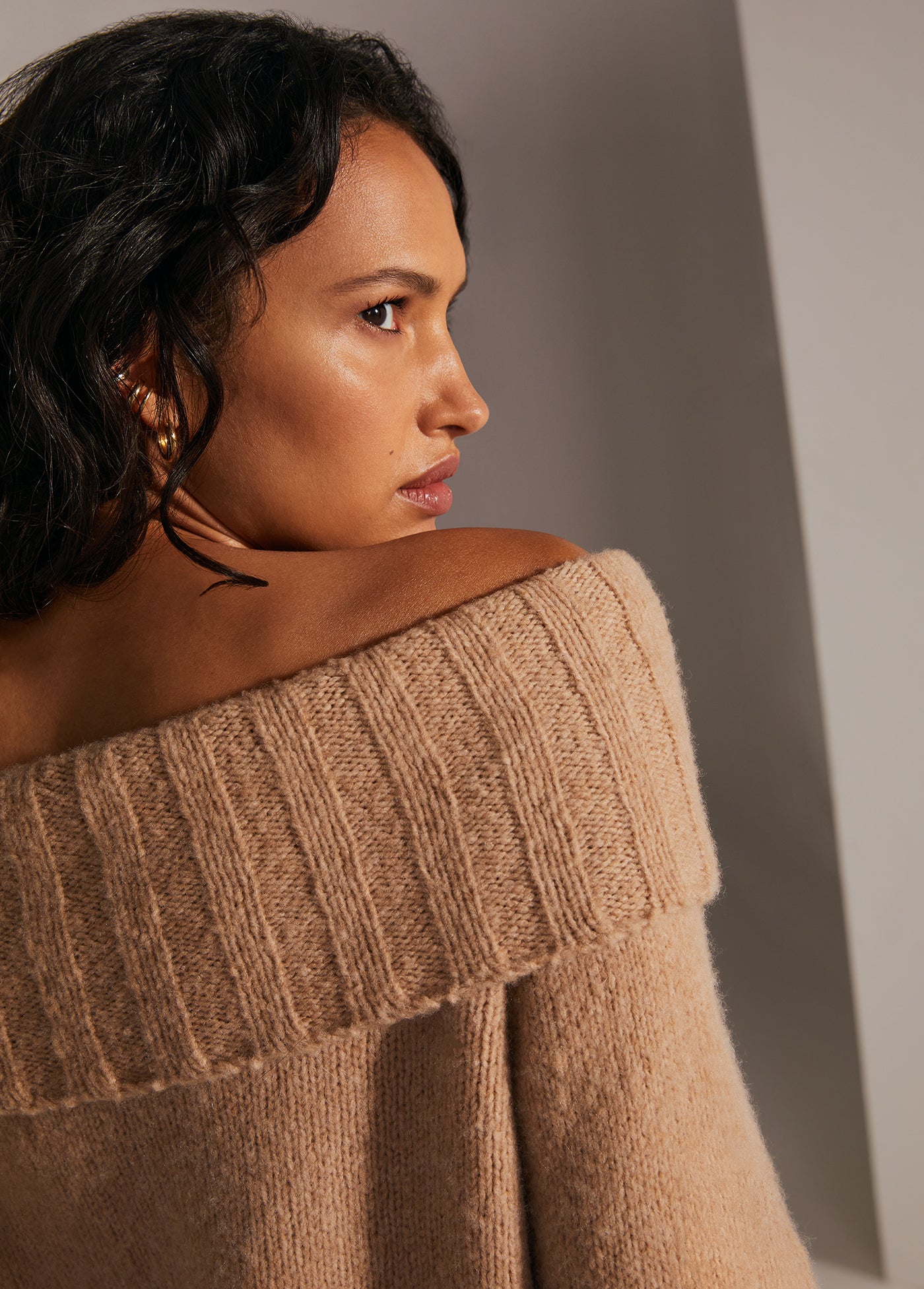 Comfy-yet-cool is actually a thing. It's called The Andrea Sweater. The wool-cashmere blend and relaxed, comfortable fit is styled perfectly with an off-the-shoulder neckline.