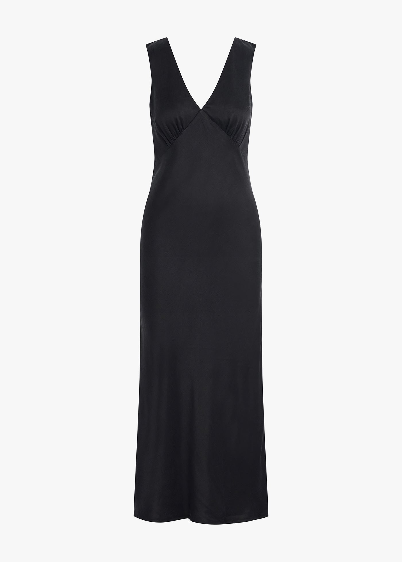 A dress that works for, well, any day and anytime. The form-fitting bodice is balanced by a V-neck and a bias-cut skirt. Fully lined for comfort, it’s crafted from a soft, breathable cupro-viscose blend. At 50" from shoulder to hem, it's a favorite you'll reach for again and again.