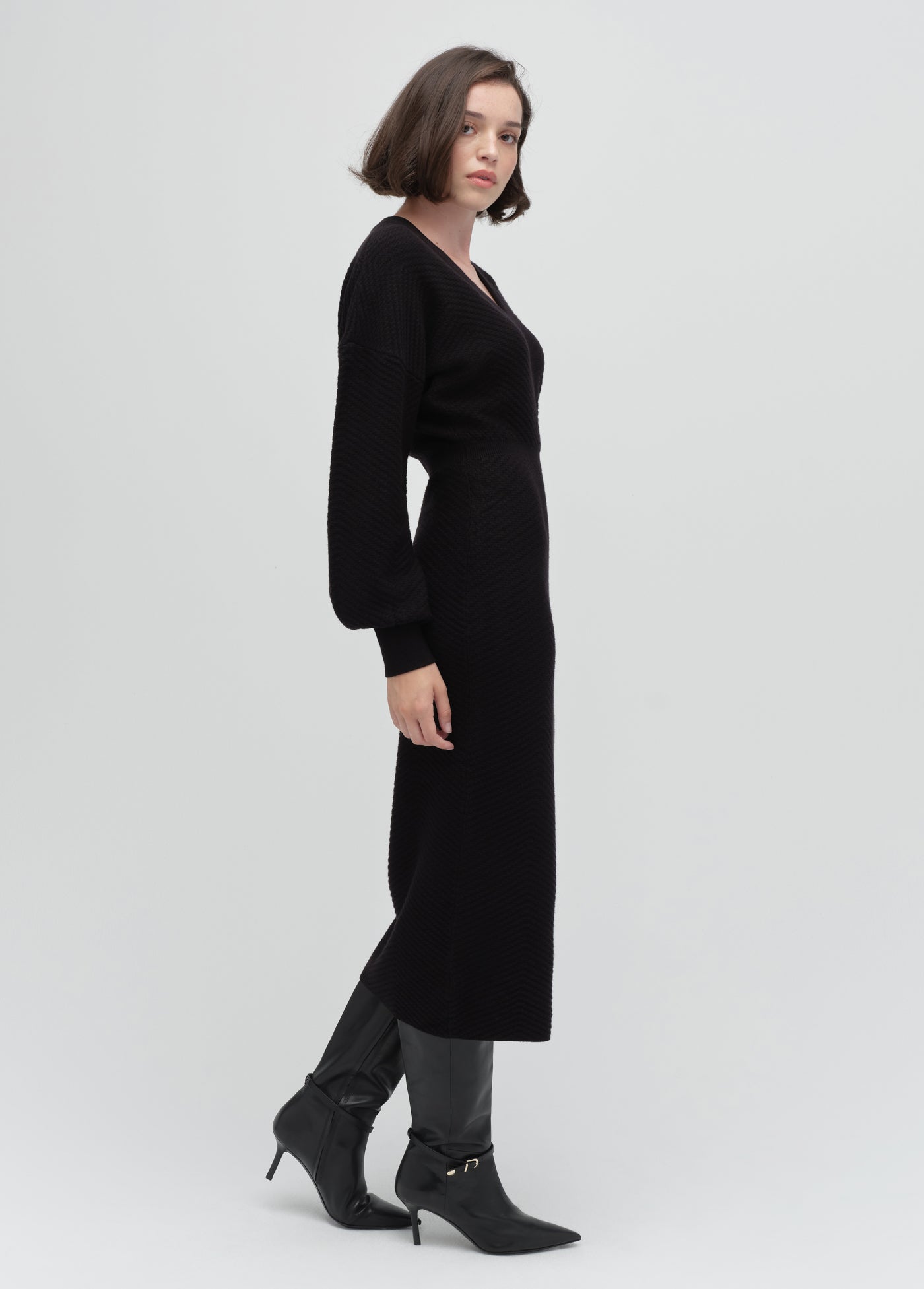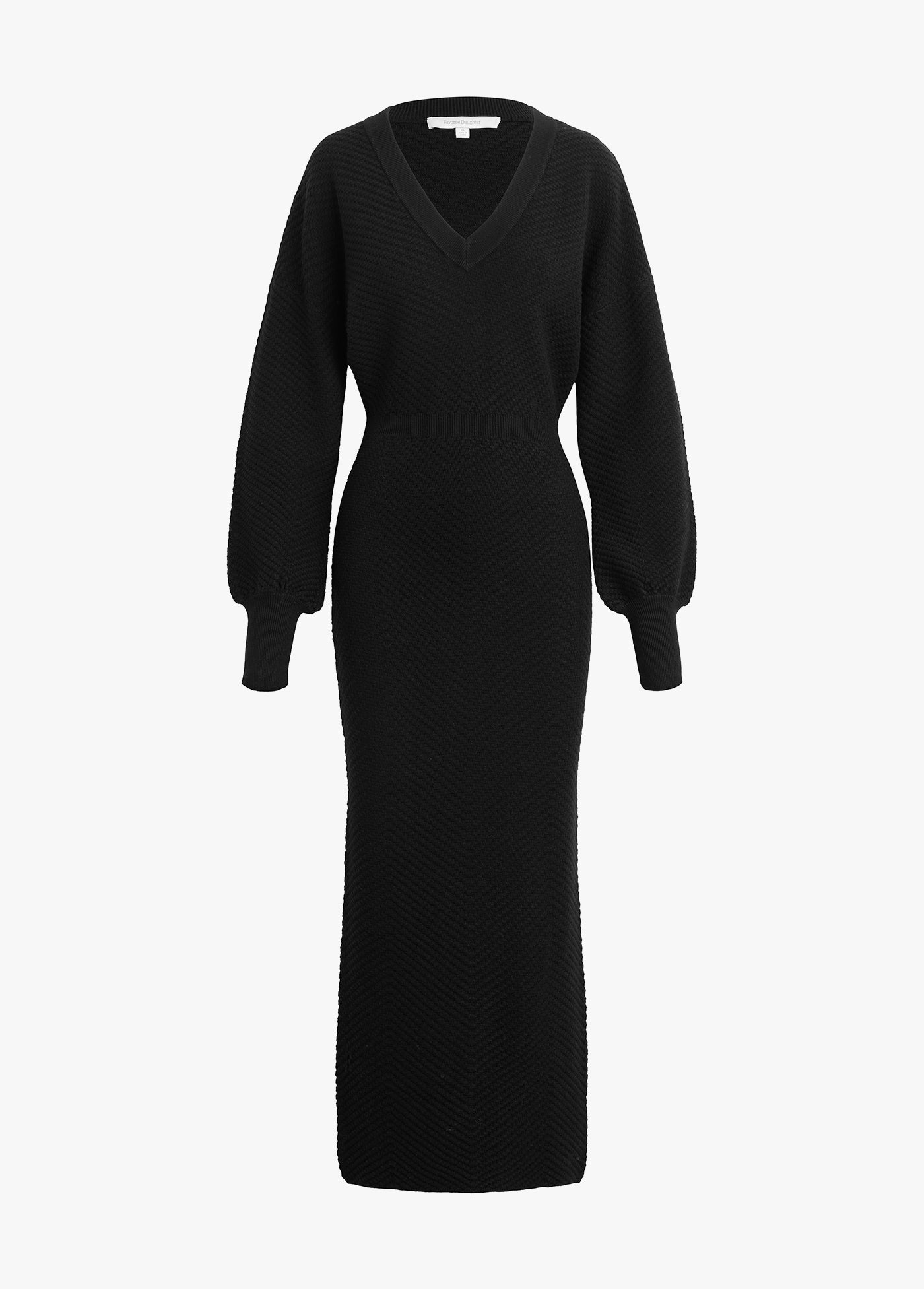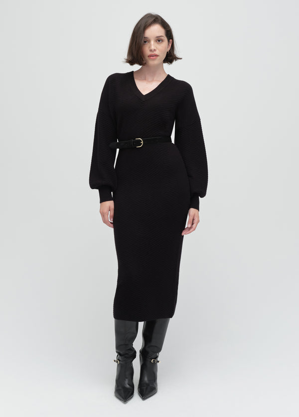Comfort got dressed up. In soft chevron knit with a flattering V-neckline, blouson waist, and subtle sleeve drama, The Ava Dress Petite hugs from the hips down in a 47" midi length. (Perfect for those a little less tall.)