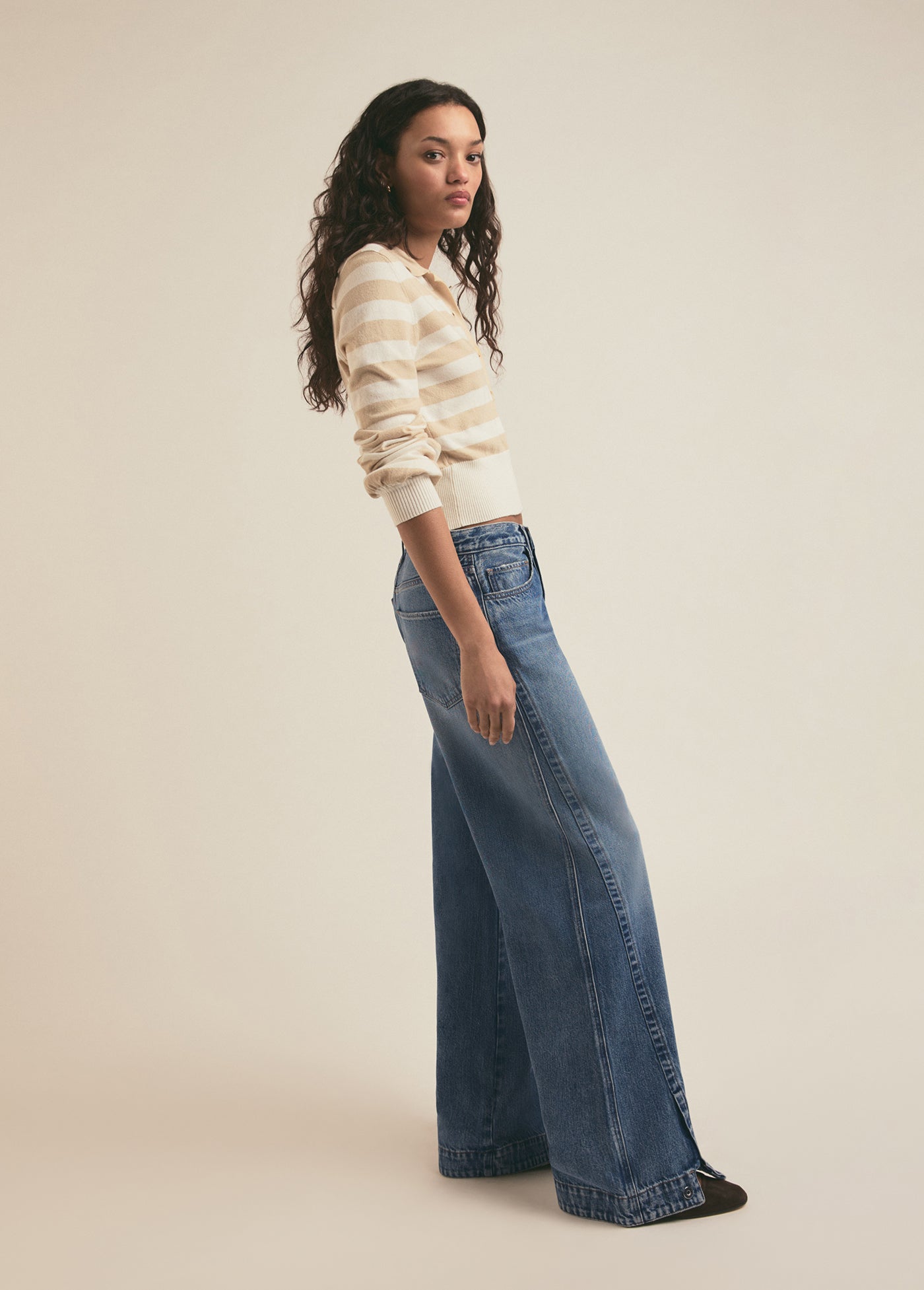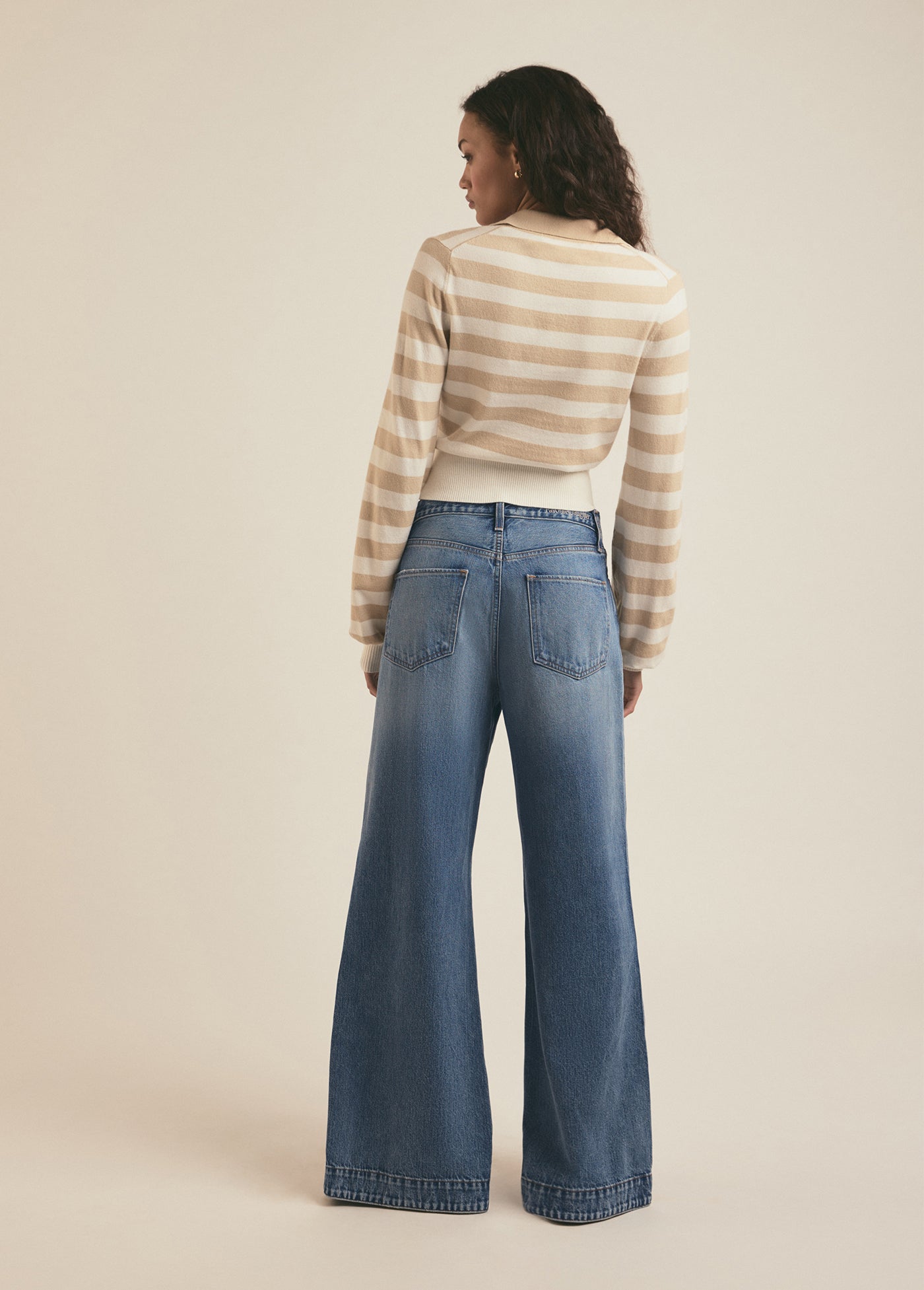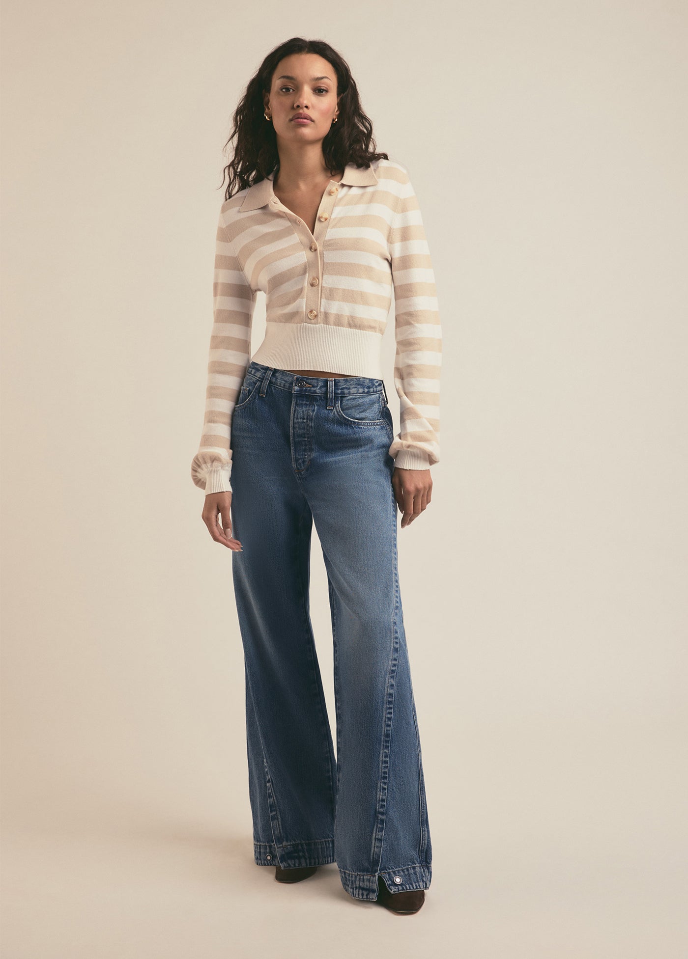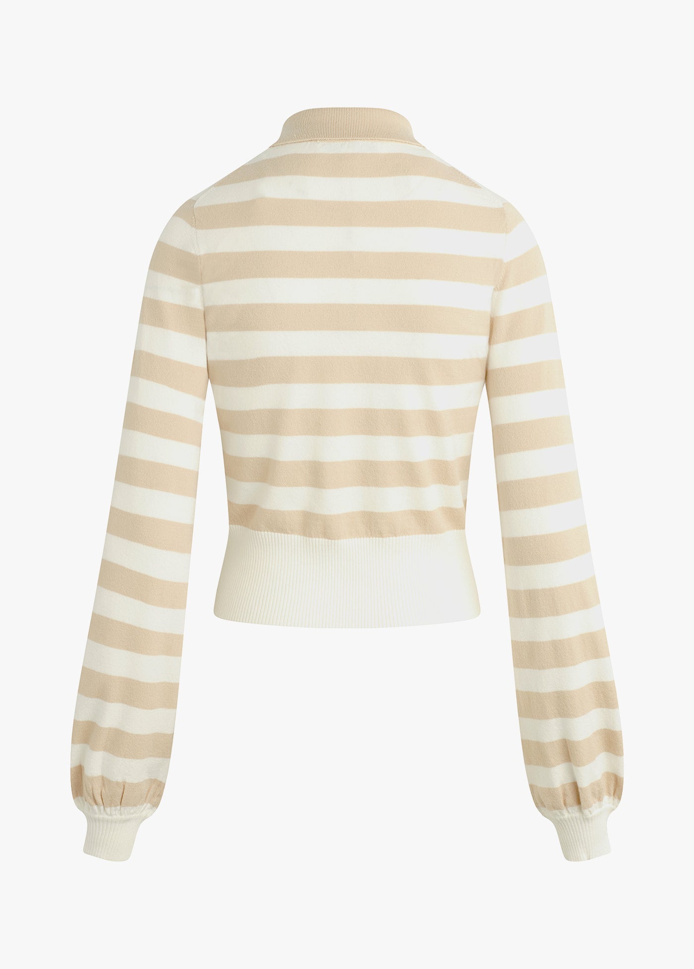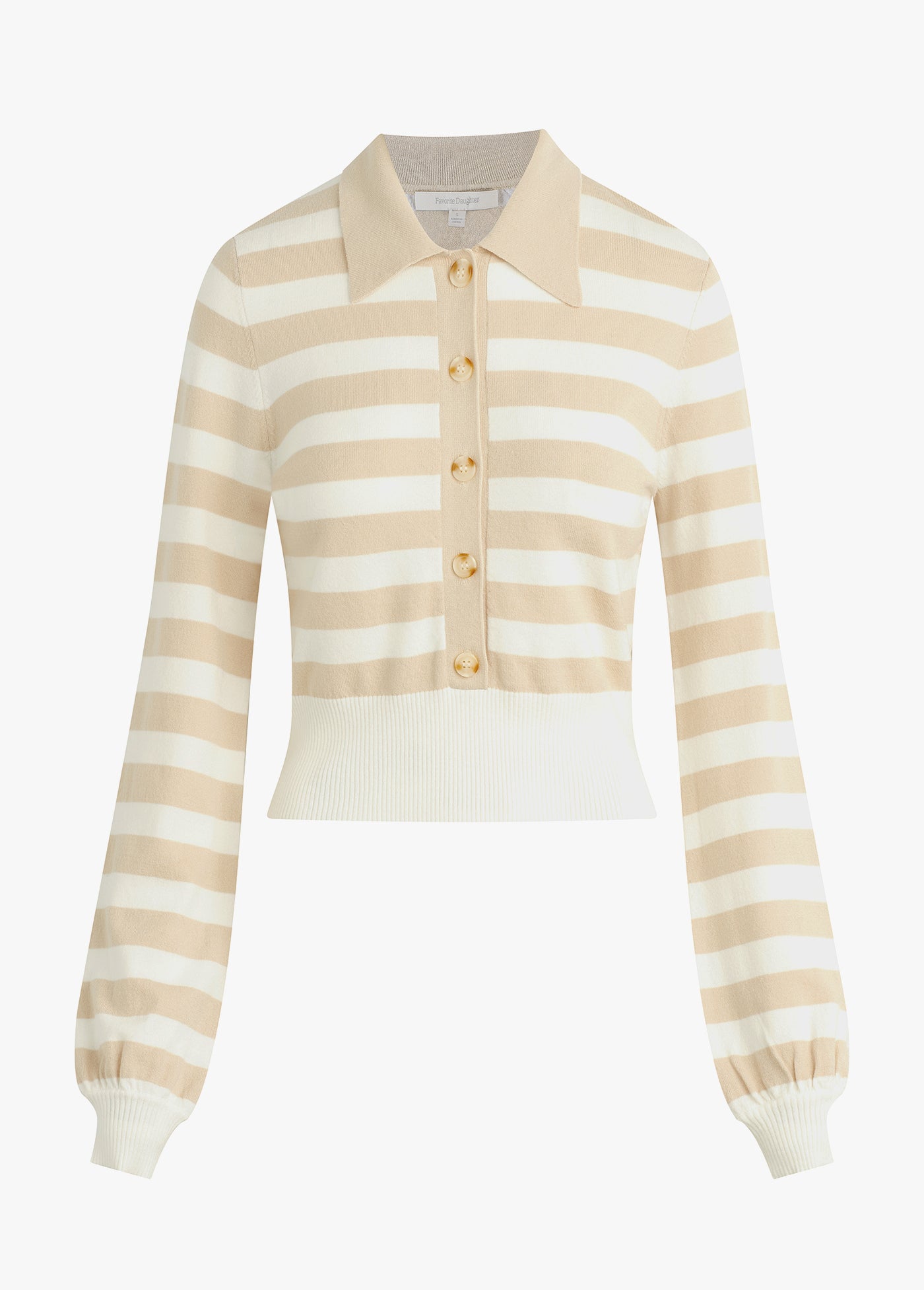 Cut from a soft knit blend with stretch for tailored comfort, The Belle Top is a favorite for fall. Pointed collar, faux horn buttons, blouson sleeves and contrast cuffs and hem give this pull-on top a refined look.