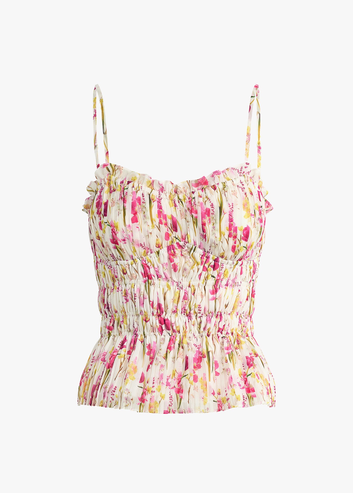The Best Dressed Guest Top is ready for every RSVP. Cut from airy chiffon, it features a subtle sweetheart neckline, adjustable pin-thin straps and a perfectly-pleated, fitted bodice.