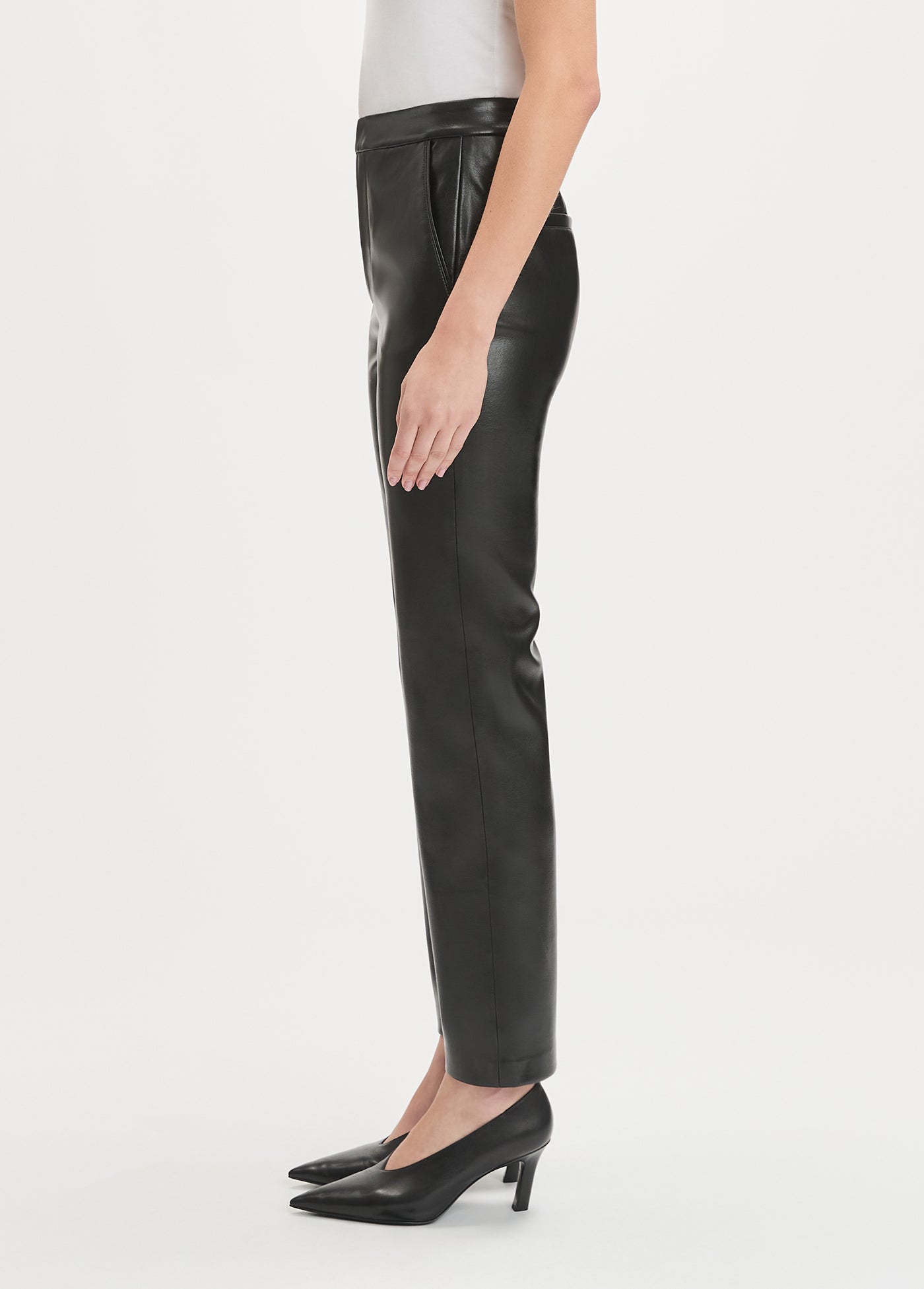 The Carla Trouser keeps it chic. A 10.5" mid-rise, slim-leg fit with 29" inseam in glossy vegan leather. We especially love the slant front pockets, back welt pockets, and the clean, minimalist waistband.