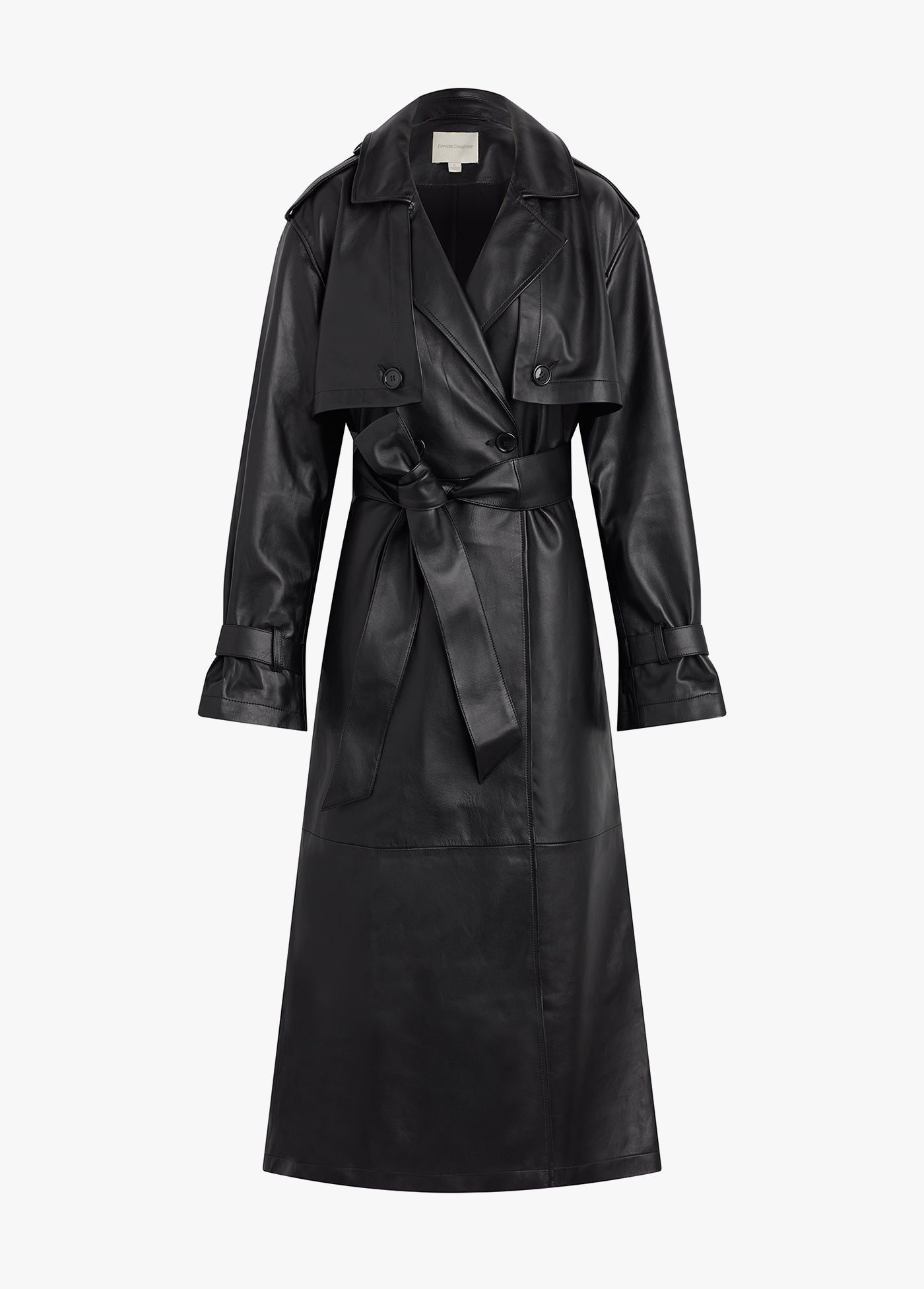 A trench to stand the test of time. The timeless cut of The Charles Trench will make it the most chic and classic article of clothing in your closet. It's cut from beautiful leather with a slightly boxy silhouette and cinchable waist belt. The double-breasted style is finished with faux horn buttons.