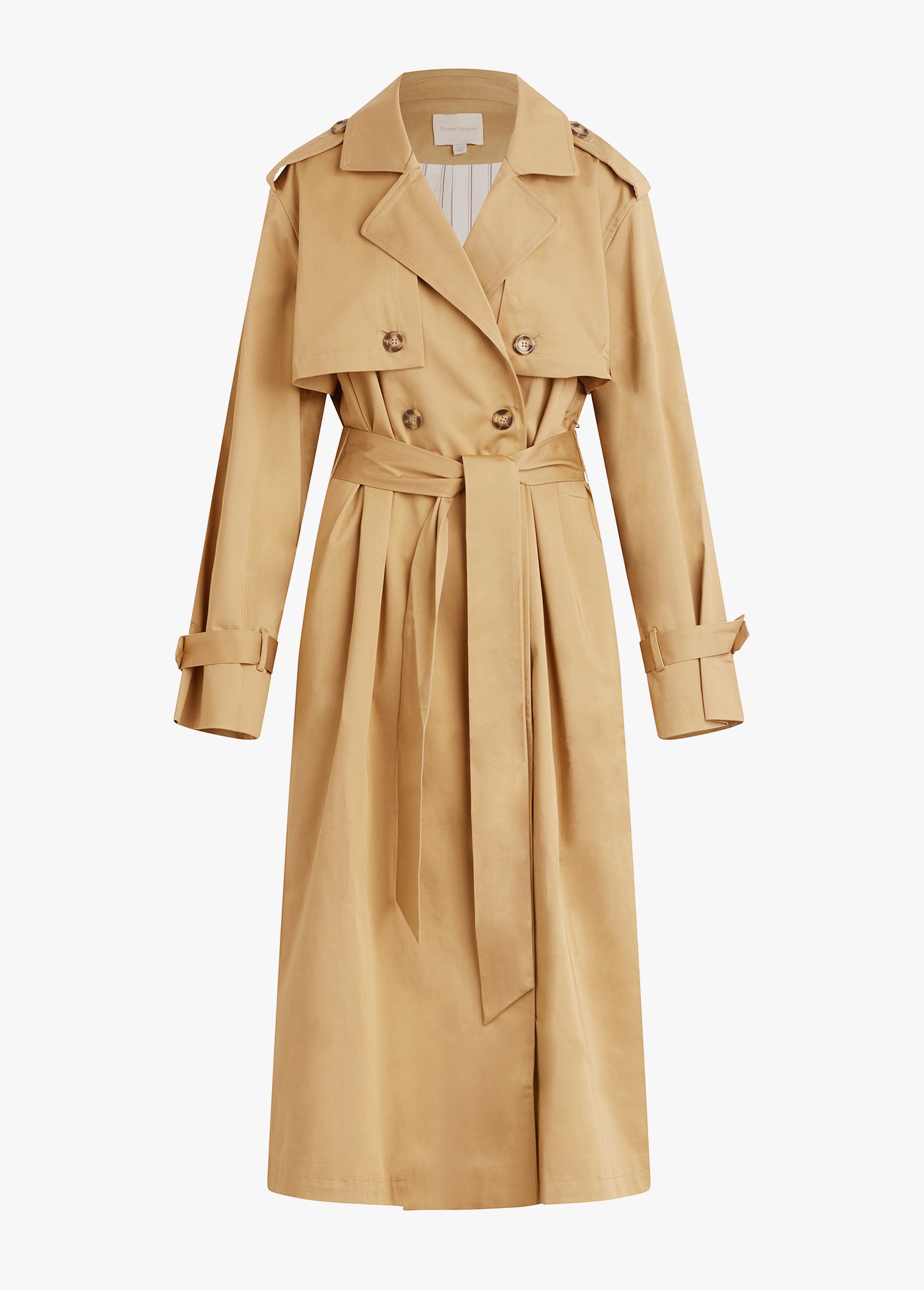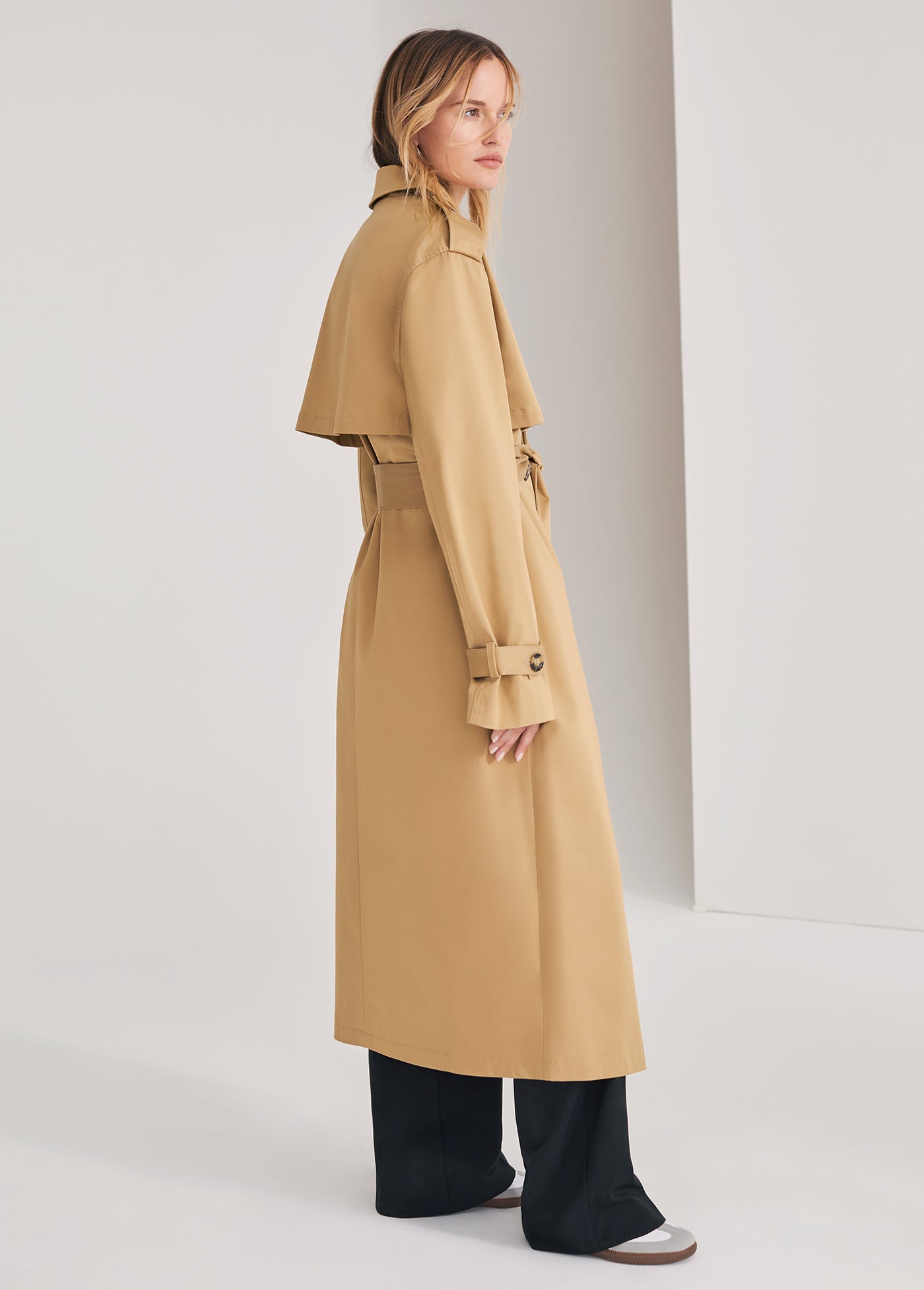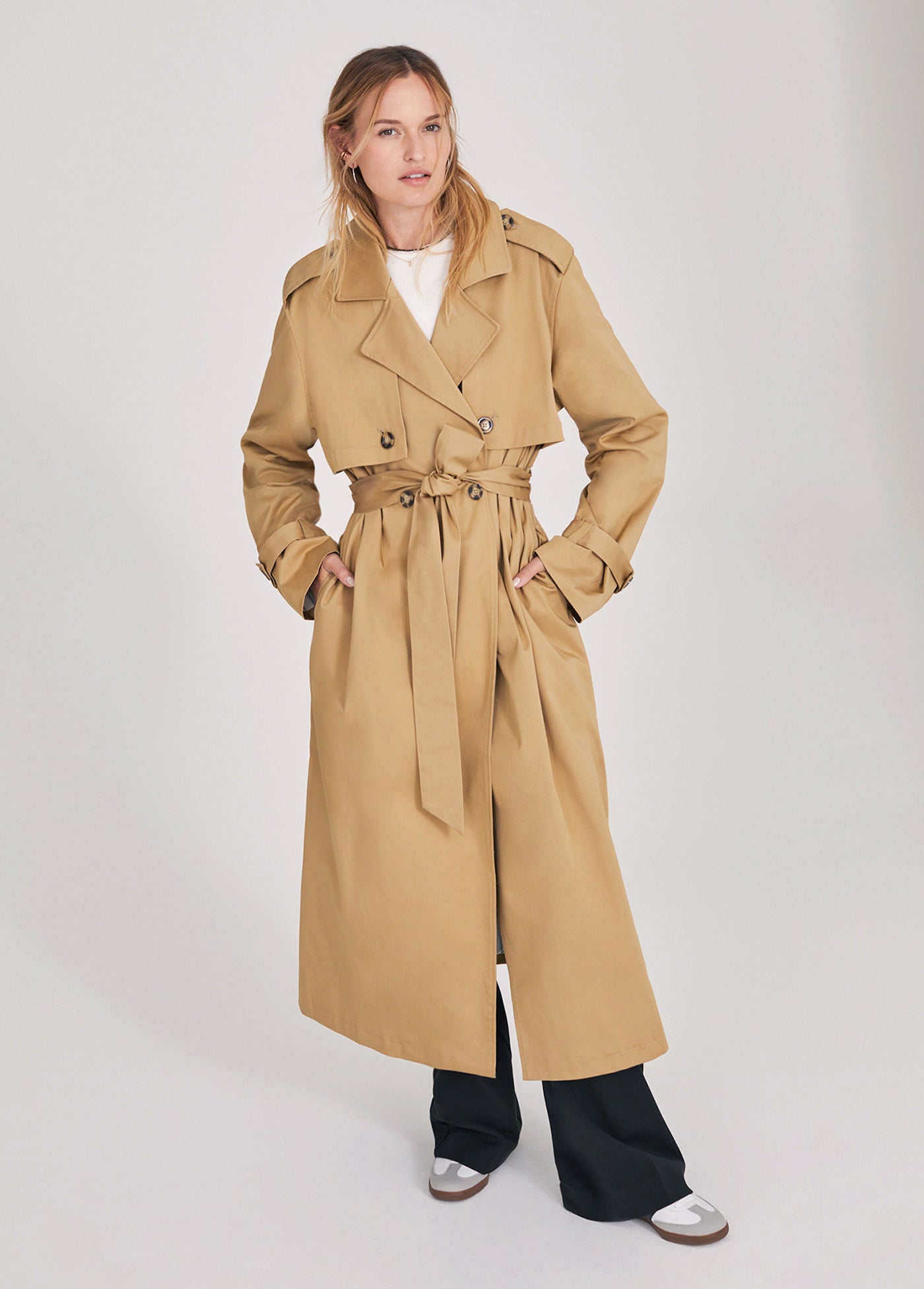 A trench to stand the test of time. The timeless cut of The Charles Trench in petite will make it the most chic and classic article of clothing in your closet. It's cut from an Italian suiting blend with a relaxed oversized silhouette and cinchable waist belt. The double-breasted style is finished with faux horn buttons and contrast lining.