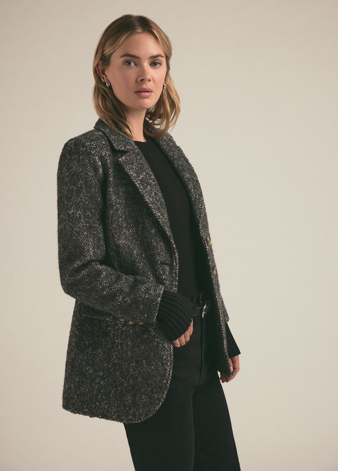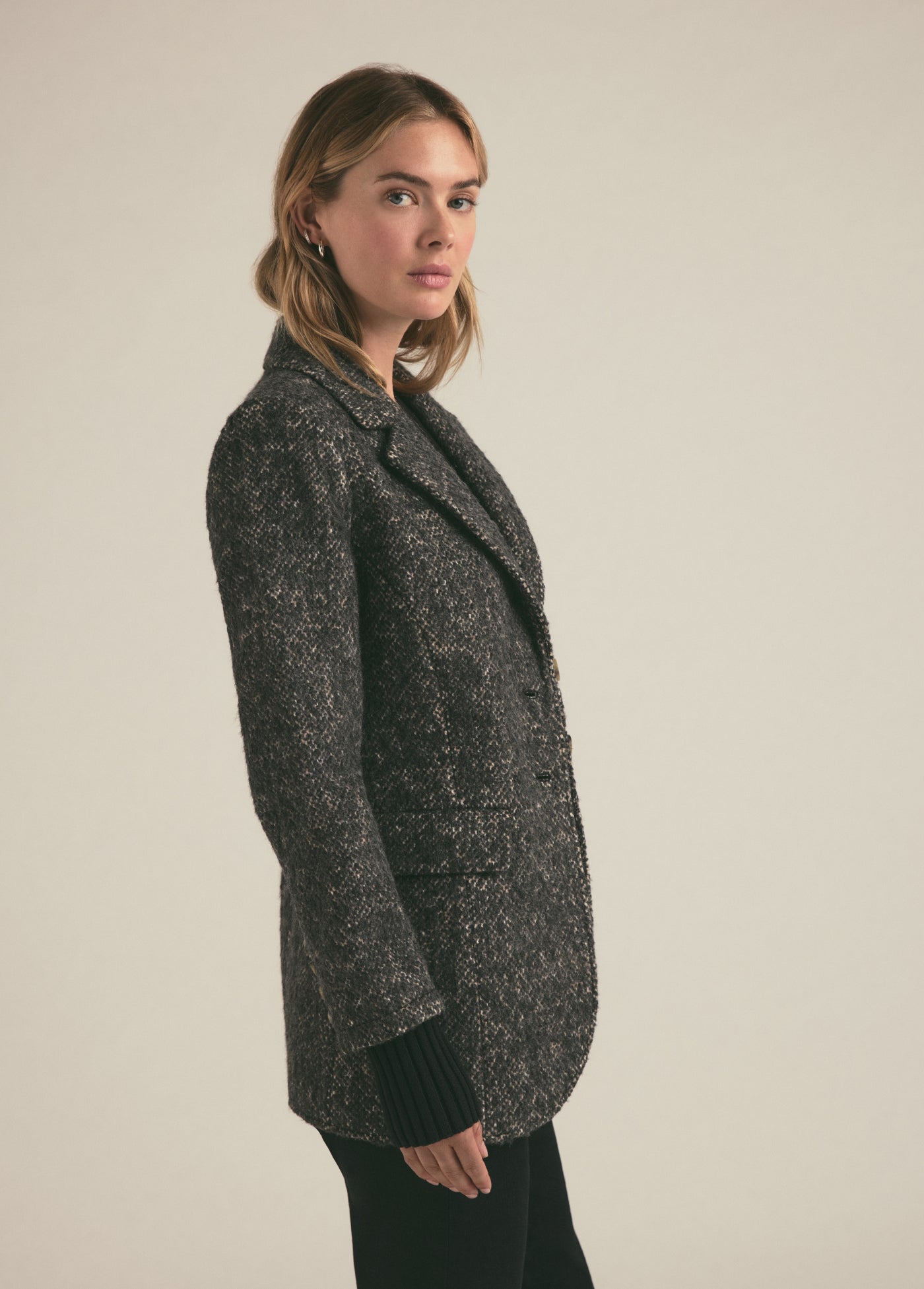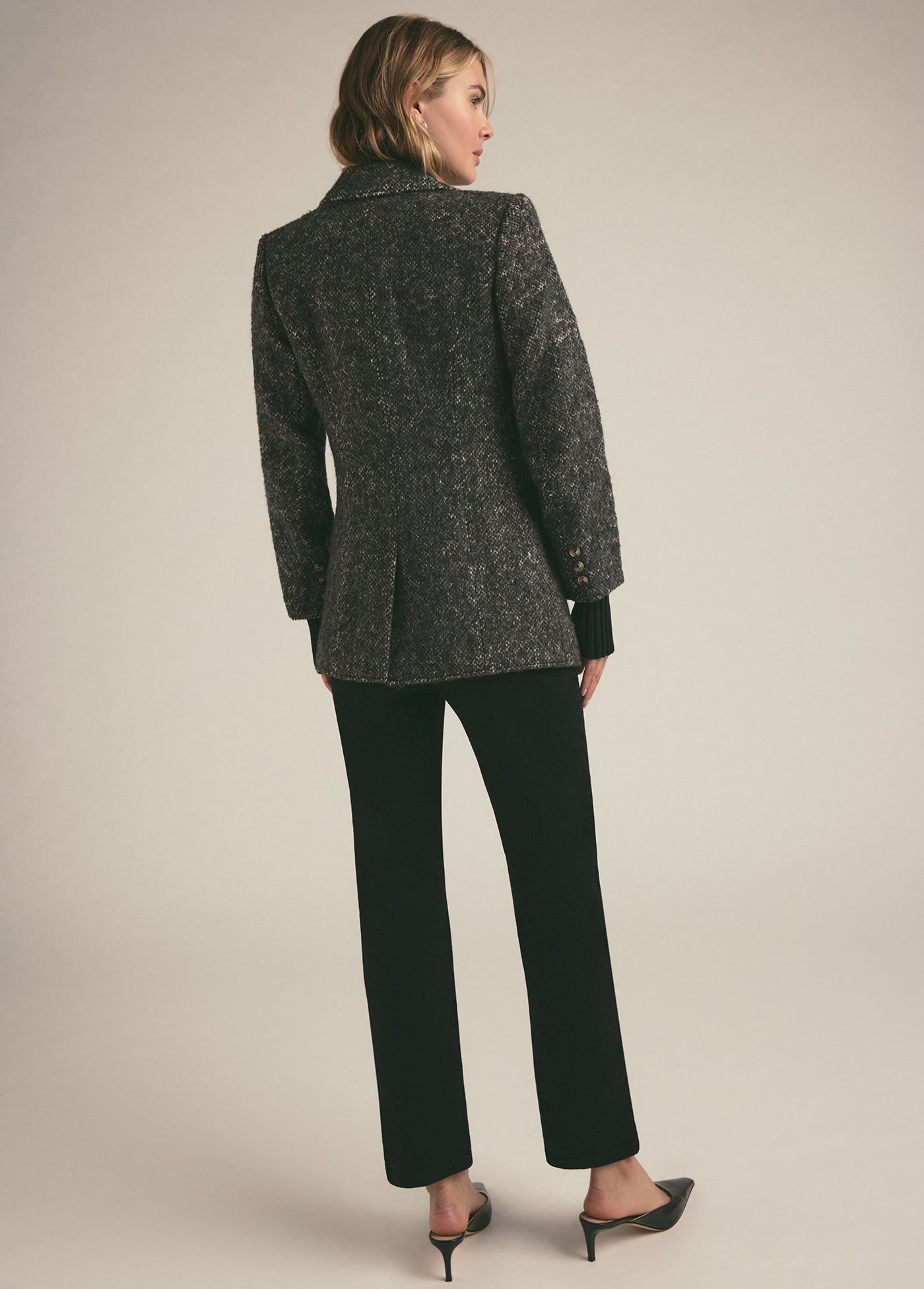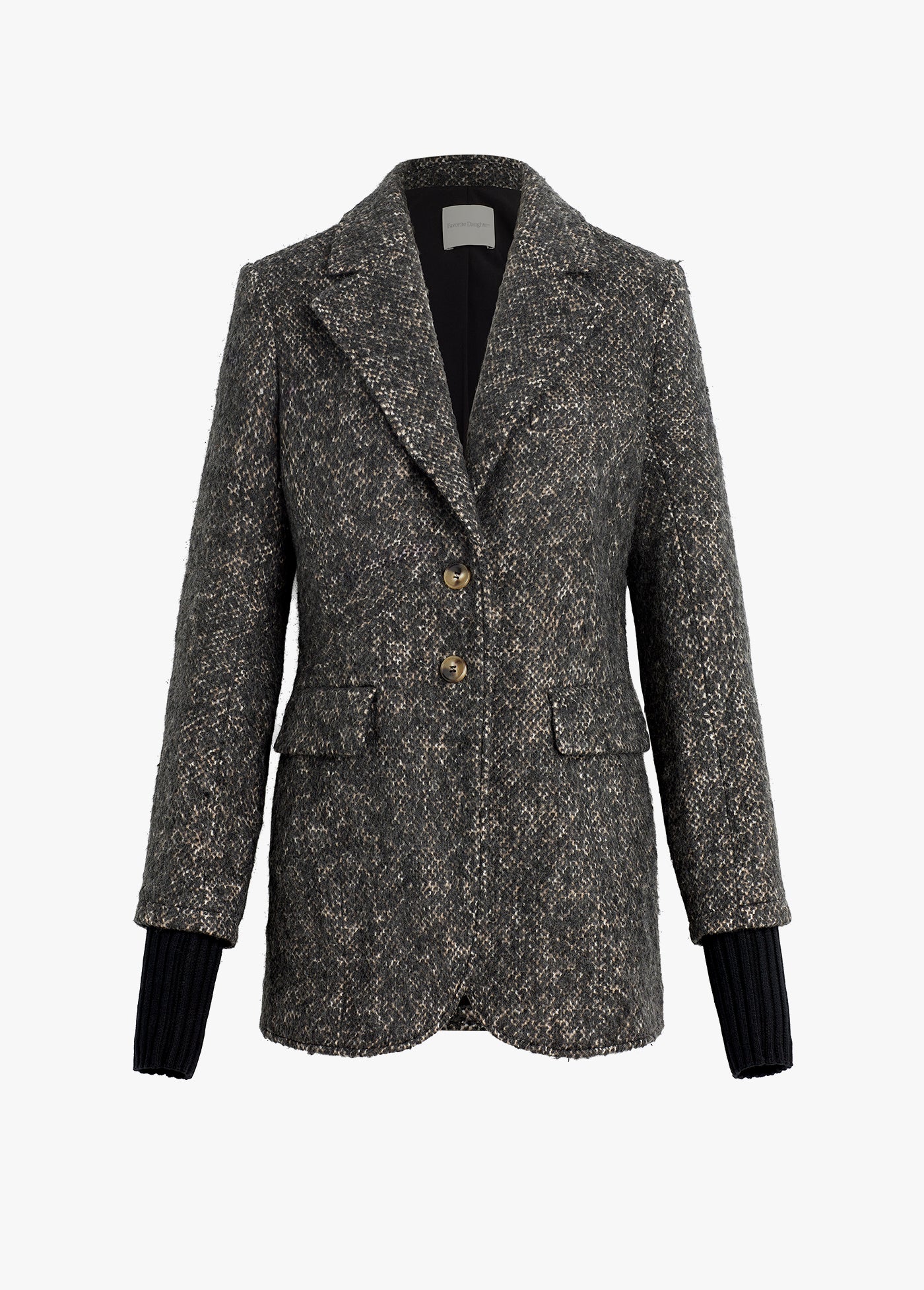 When your runway is a city sidewalk, grab this slim fit, wool-blend blazer. There are faux horn buttons, front flap pockets, delicate stitching details along with an elegant tweed texture. But our favorite part is the cotton-cashmere ribbed cuffs for when walking to work is your very own fashion show.