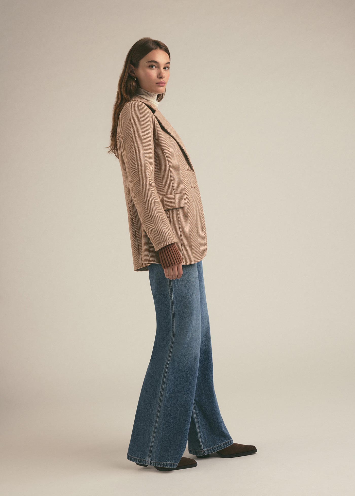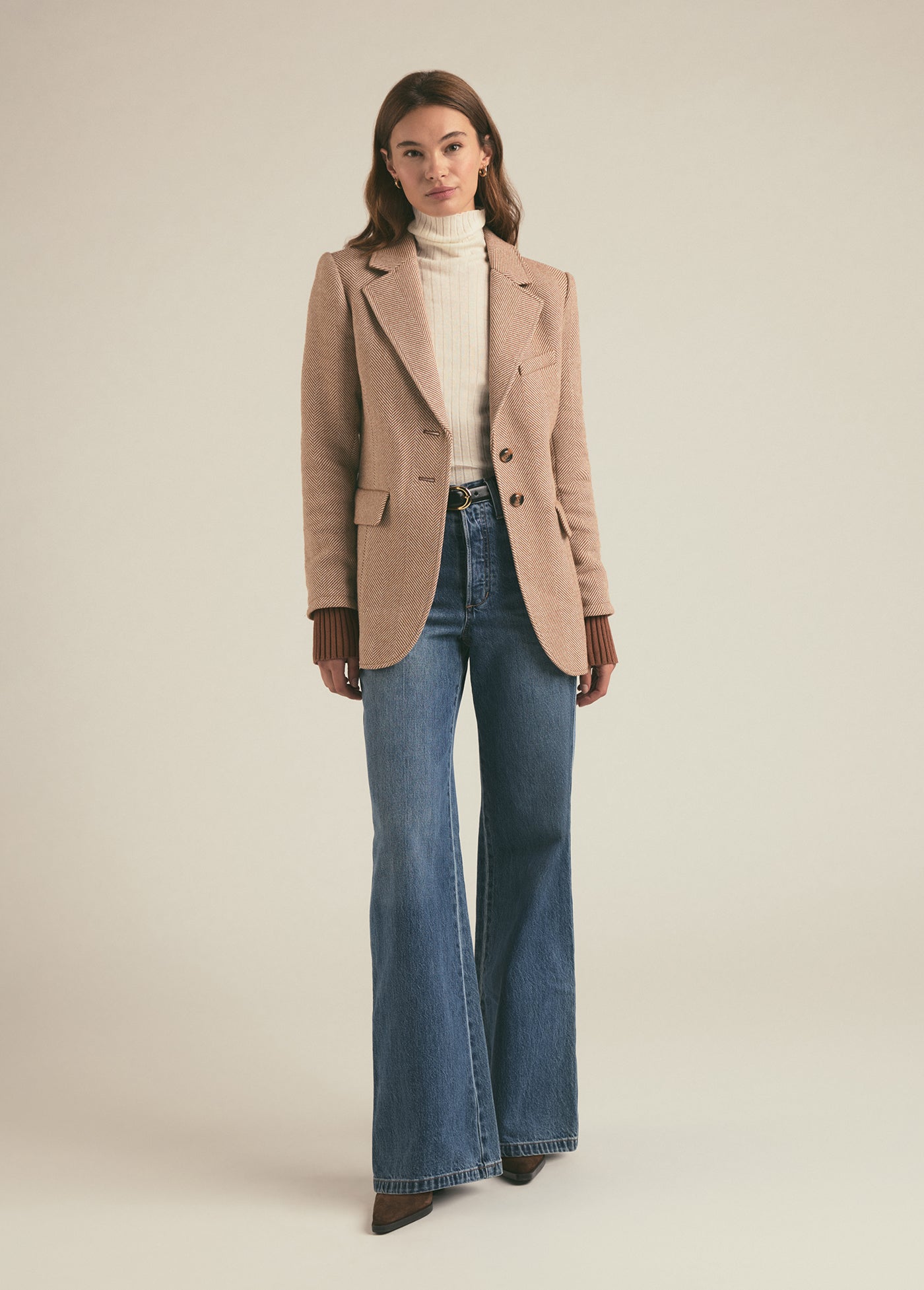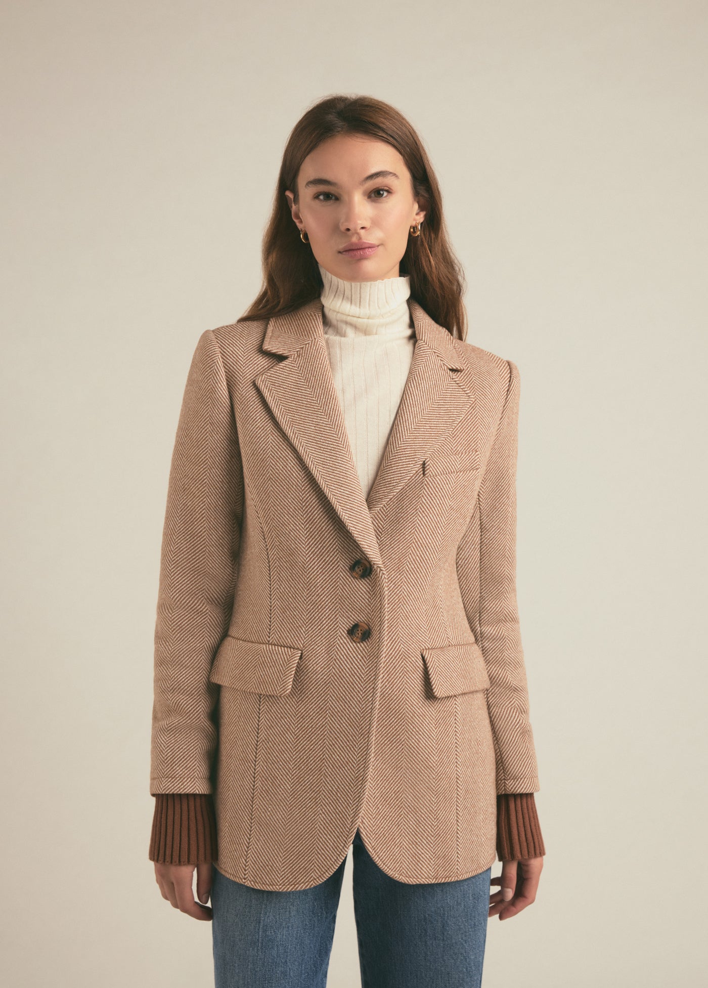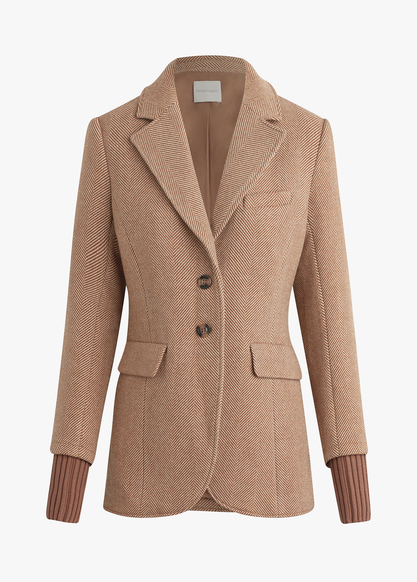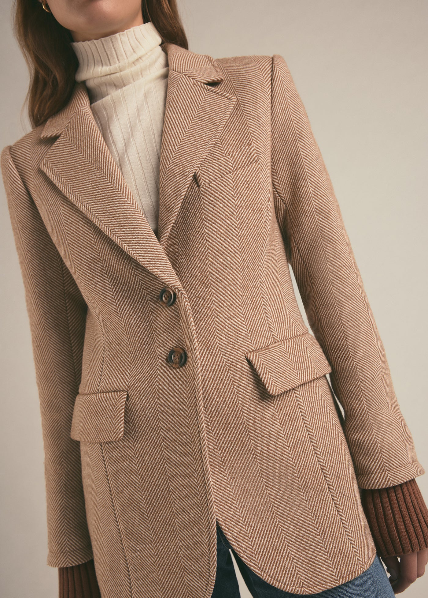 When your runway is a city sidewalk, grab this slim fit, wool-blend blazer. There’s faux horn buttons, front flap pockets, delicate stitching details and a prounounced chevron pattern for added texture. But our favorite part is the cotton-cashmere ribbed cuffs for when walking to work is your very own fashion show.