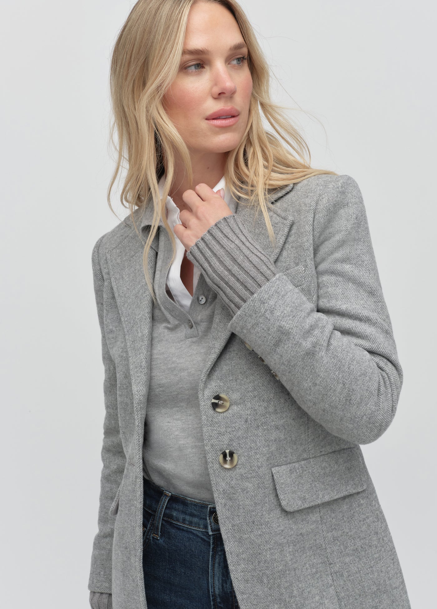 When your runway is a city sidewalk, grab this slim fit, recycled wool-blend blazer. There’s faux horn buttons, front flap pockets, delicate stitching details and a brushed, soft finish. But our favorite part is the cotton-cashmere ribbed cuffs for when walking to work is your very own fashion show.