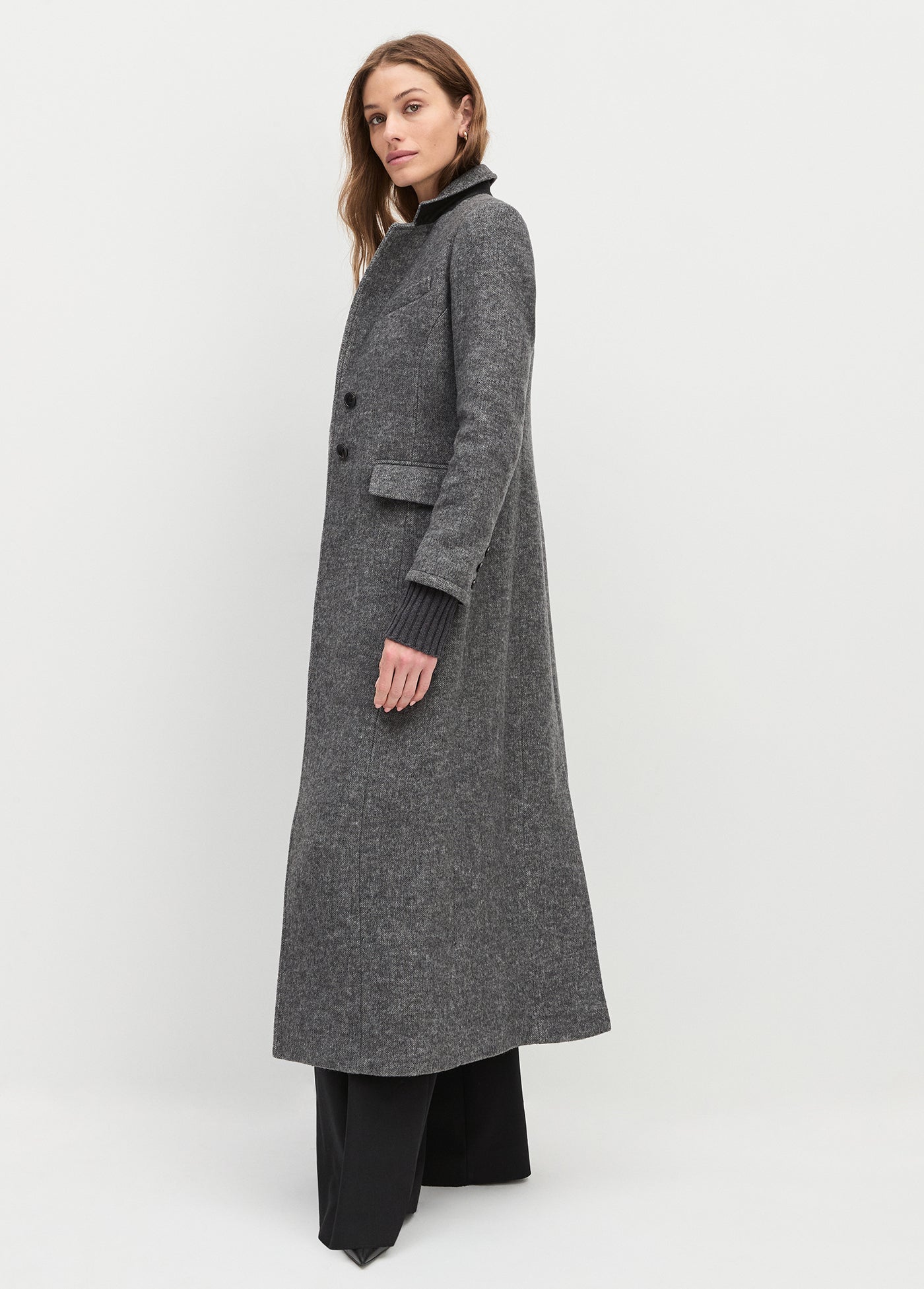 The best-selling City Coat makes cold weather so much more chic. The double-faced wool long coat has faux horn buttons, front flap pockets and delicate stitching details. Our favorite part is the cotton-cashmere ribbed cuffs.