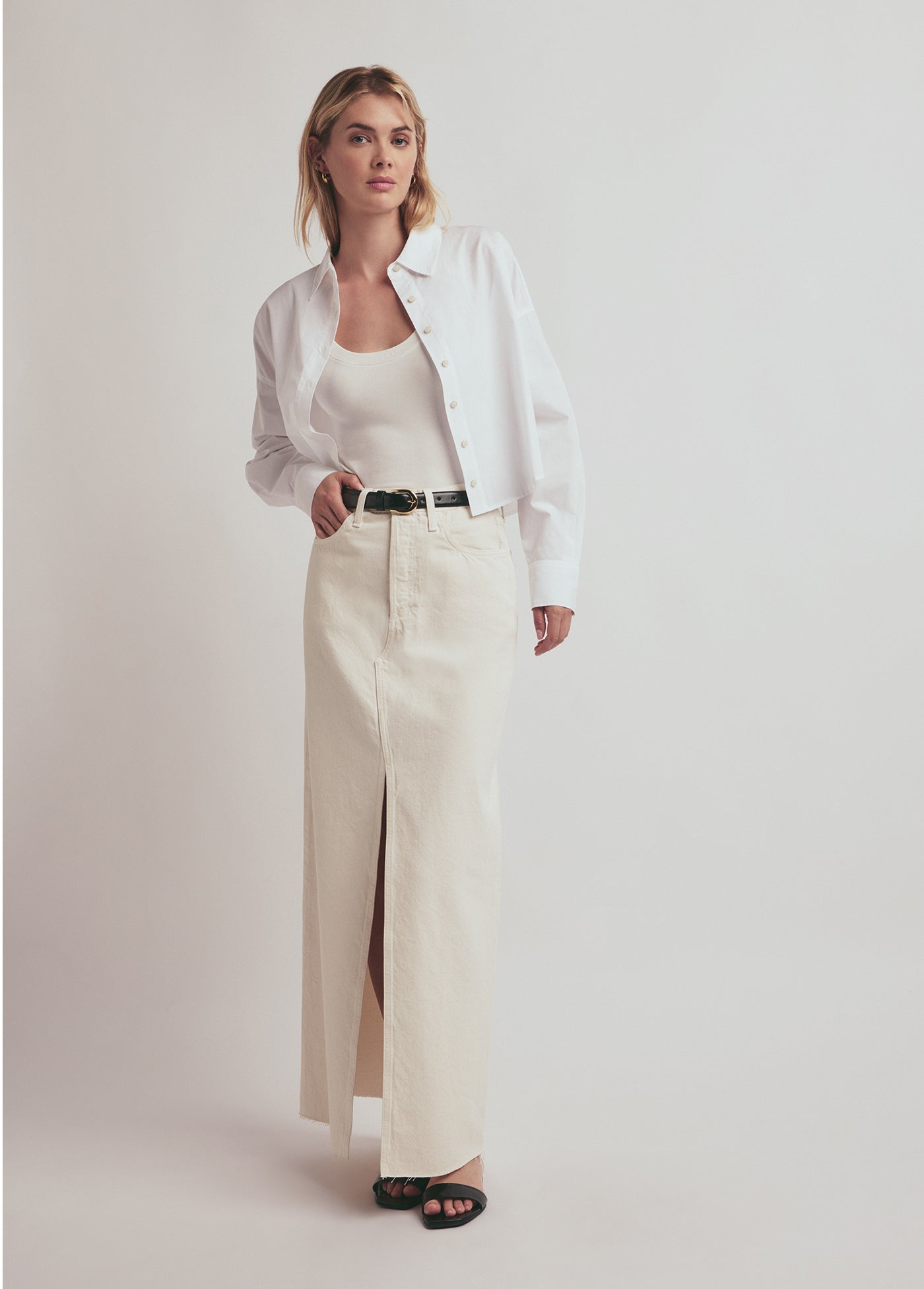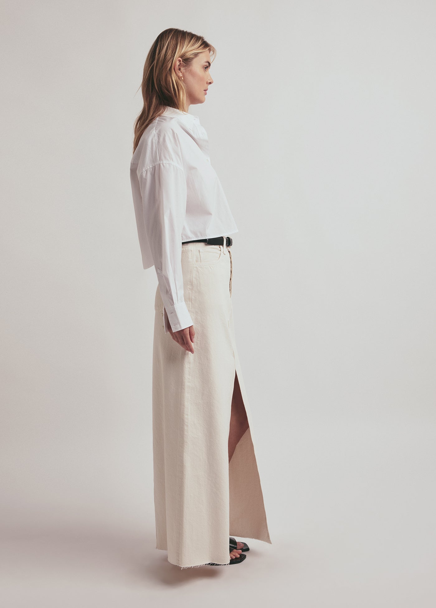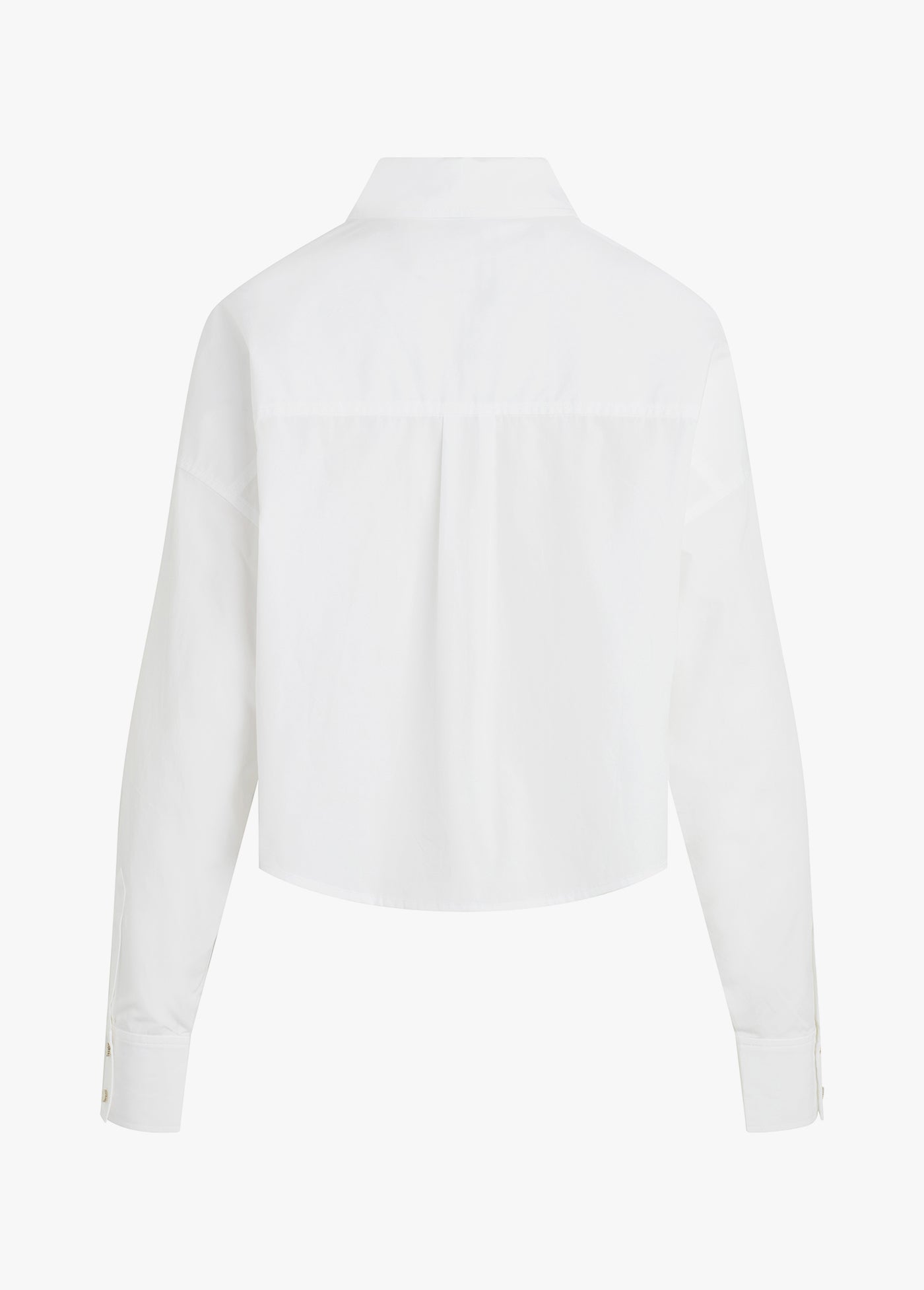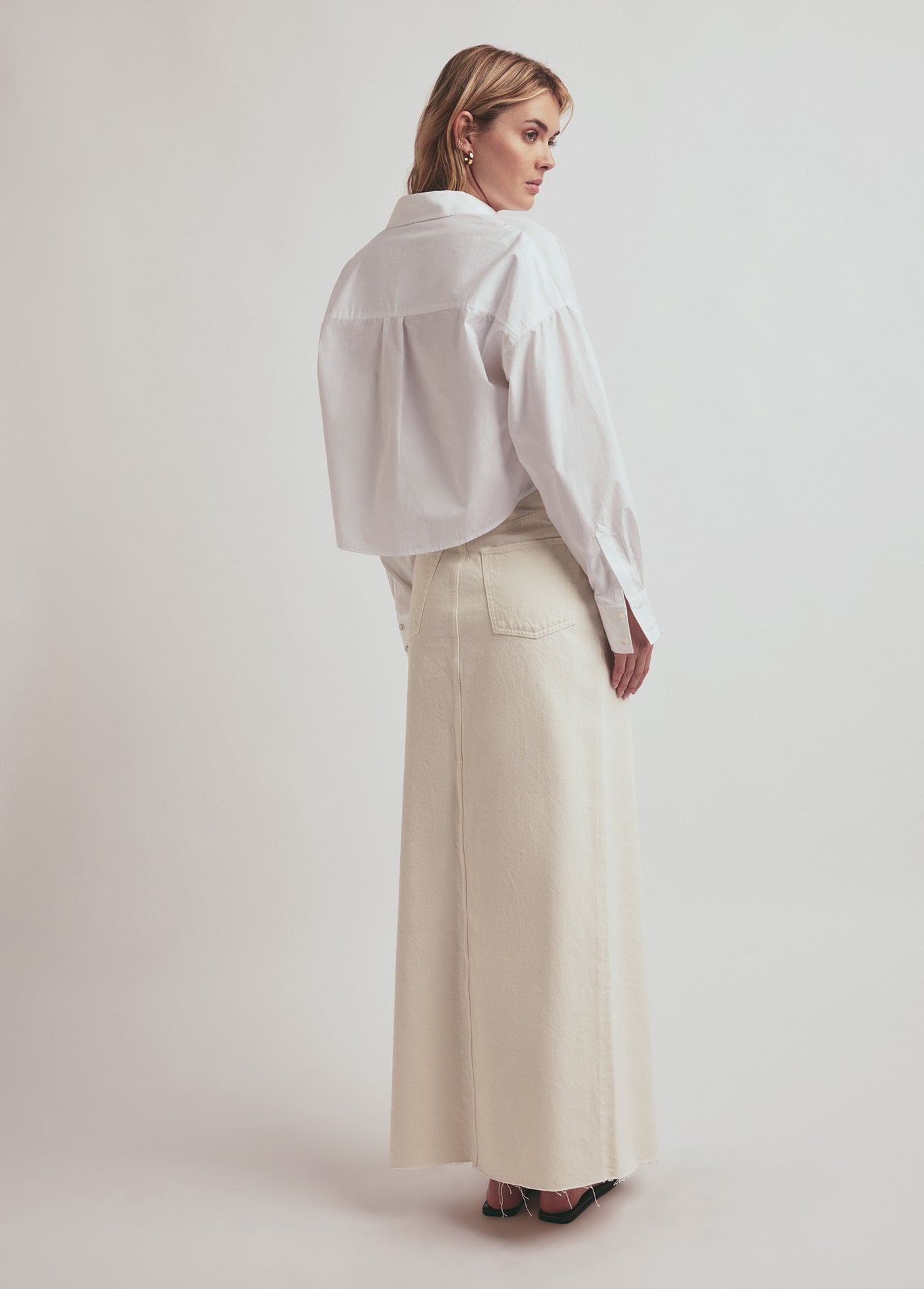 It's a fan favorite, now with slightly cropped styling. The Crop Ex-Boyfriend Shirt is an oversized button up cut from a cotton poplin with a relaxed fit and pointed collar. With the shortened length, you'll find it's super versatile as an unbuttoned layer over The Ribbed Tank or buttoned up with absolutely anything.