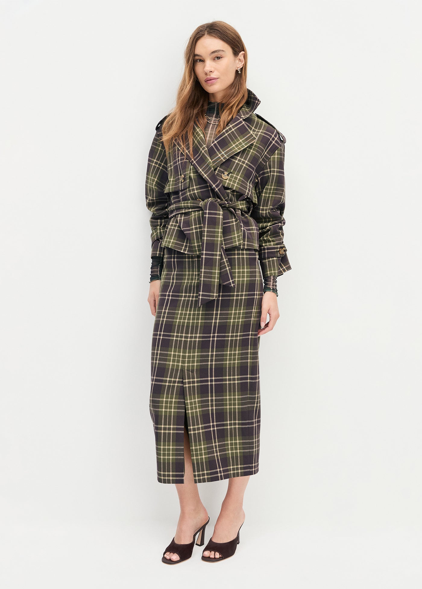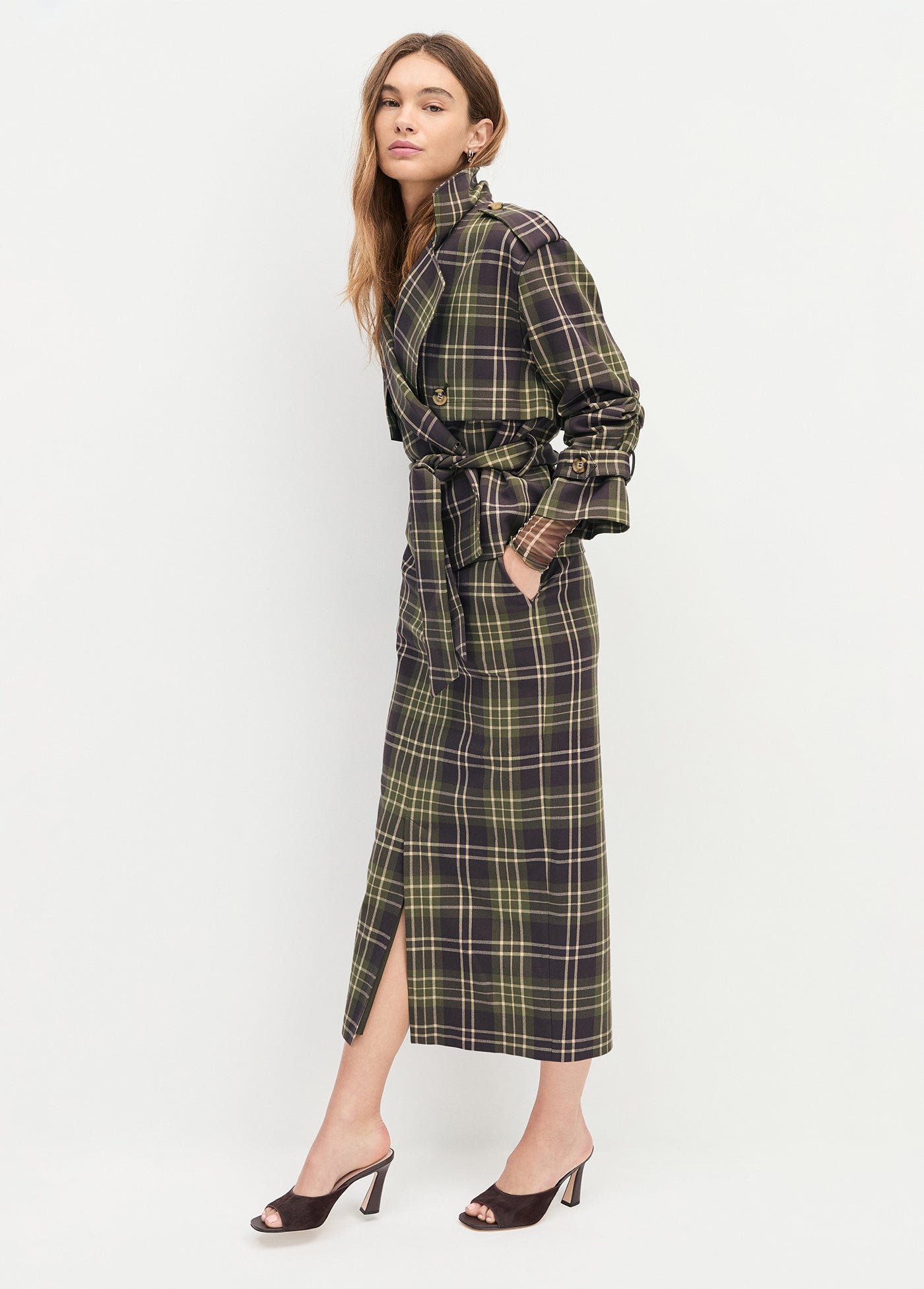 The timelessness of The Charles Trench will make it the most chic and classic article of clothing in your closet. Our latest rendition has a cropped length, cut from a yarn-dyed plaid with a slightly boxy silhouette and cinchable waist belt. The double-breasted style is finished with faux horn buttons and matching lining.