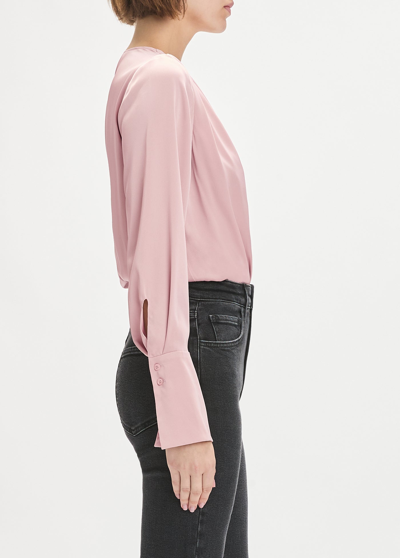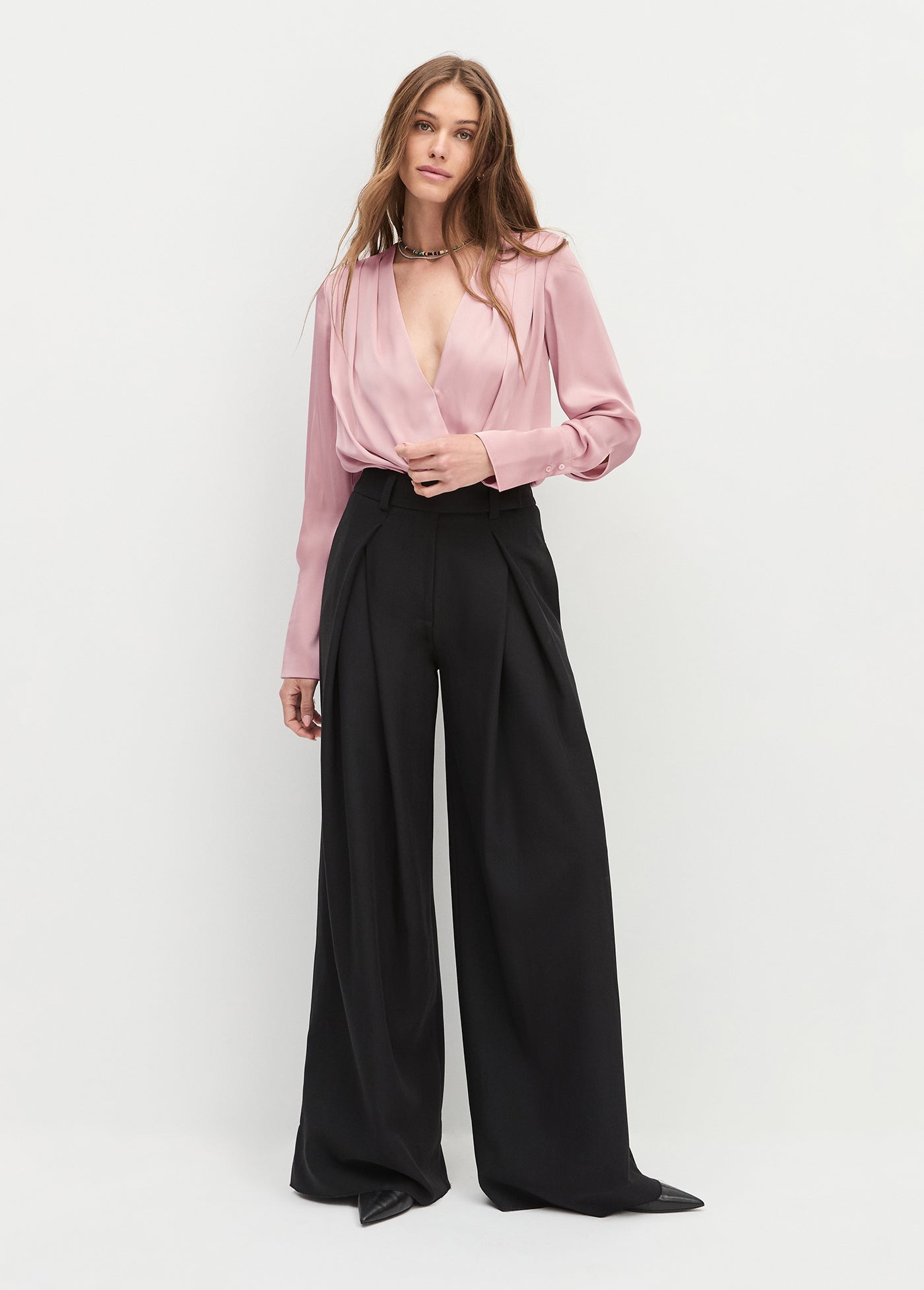 Text me when you get home. Our best-selling satin bodysuit, with a pleated neckline and a soft drape. The comfortable snap bodysuit makes it a no-fuss tuck, so it’s effortlessly easy to wear on its own and a favorite look when styled with your go-to denim.