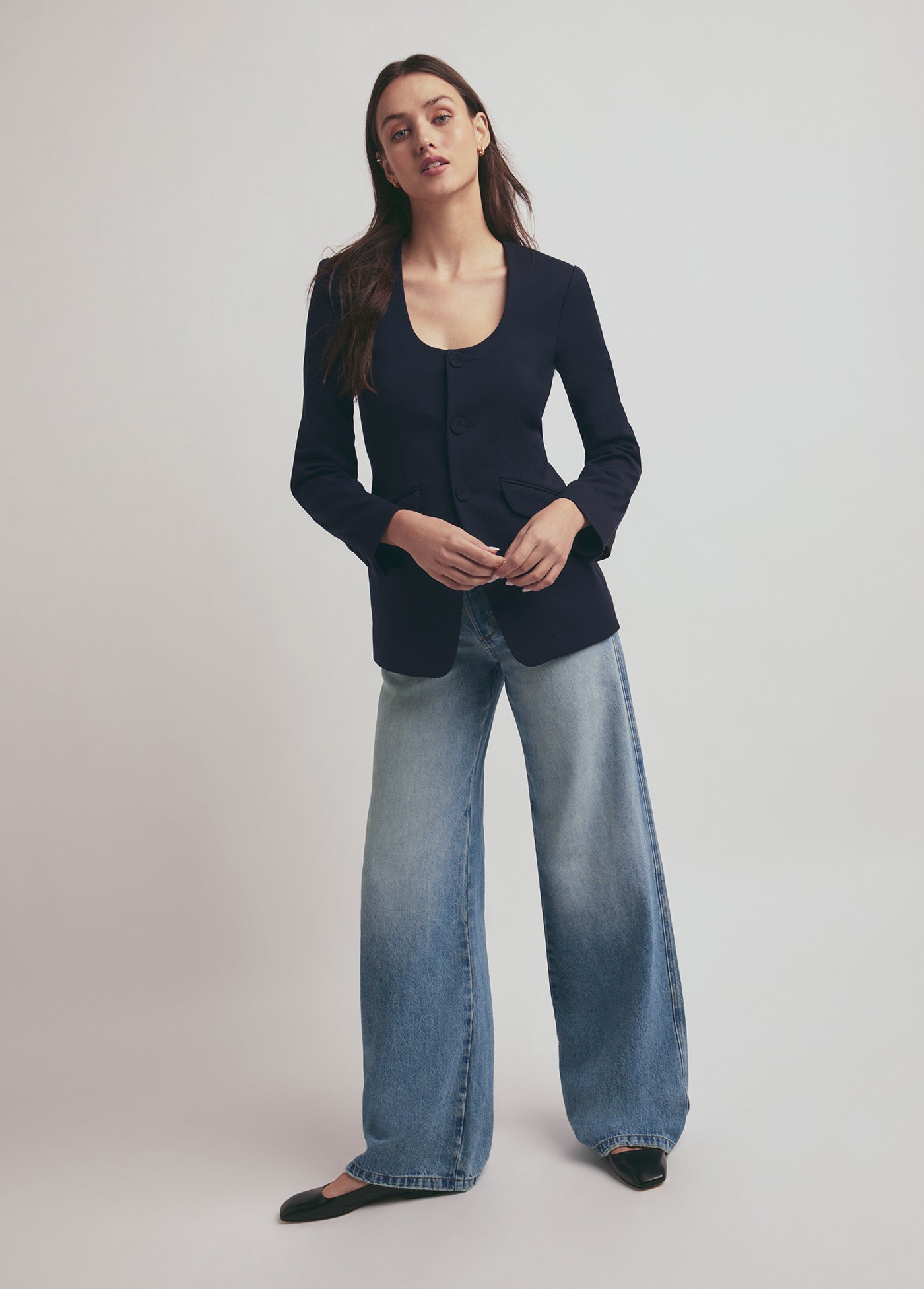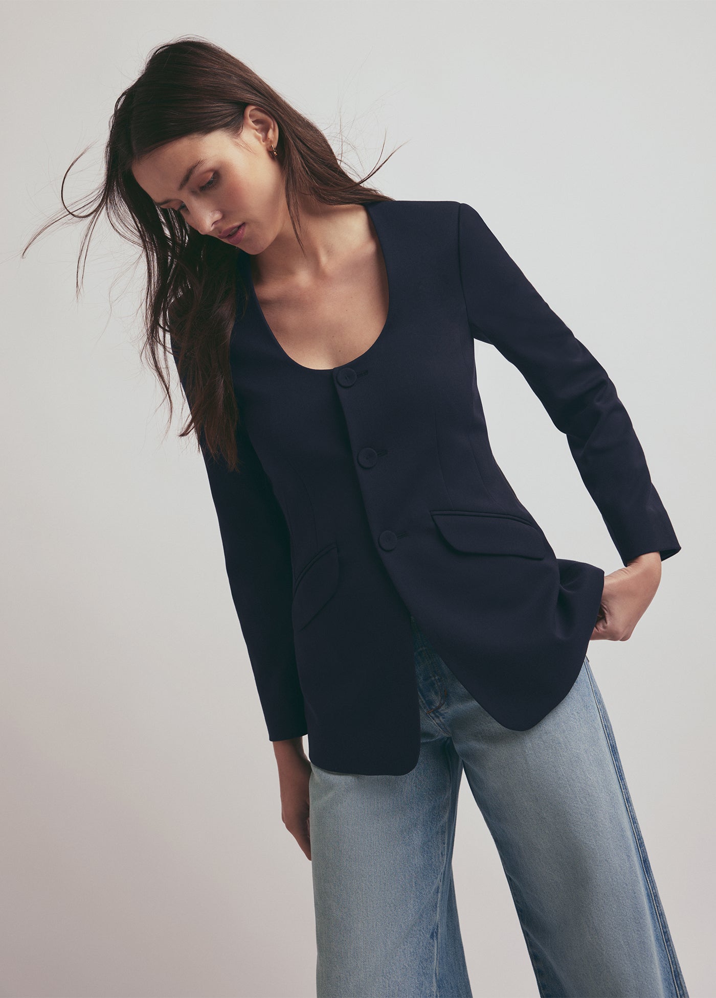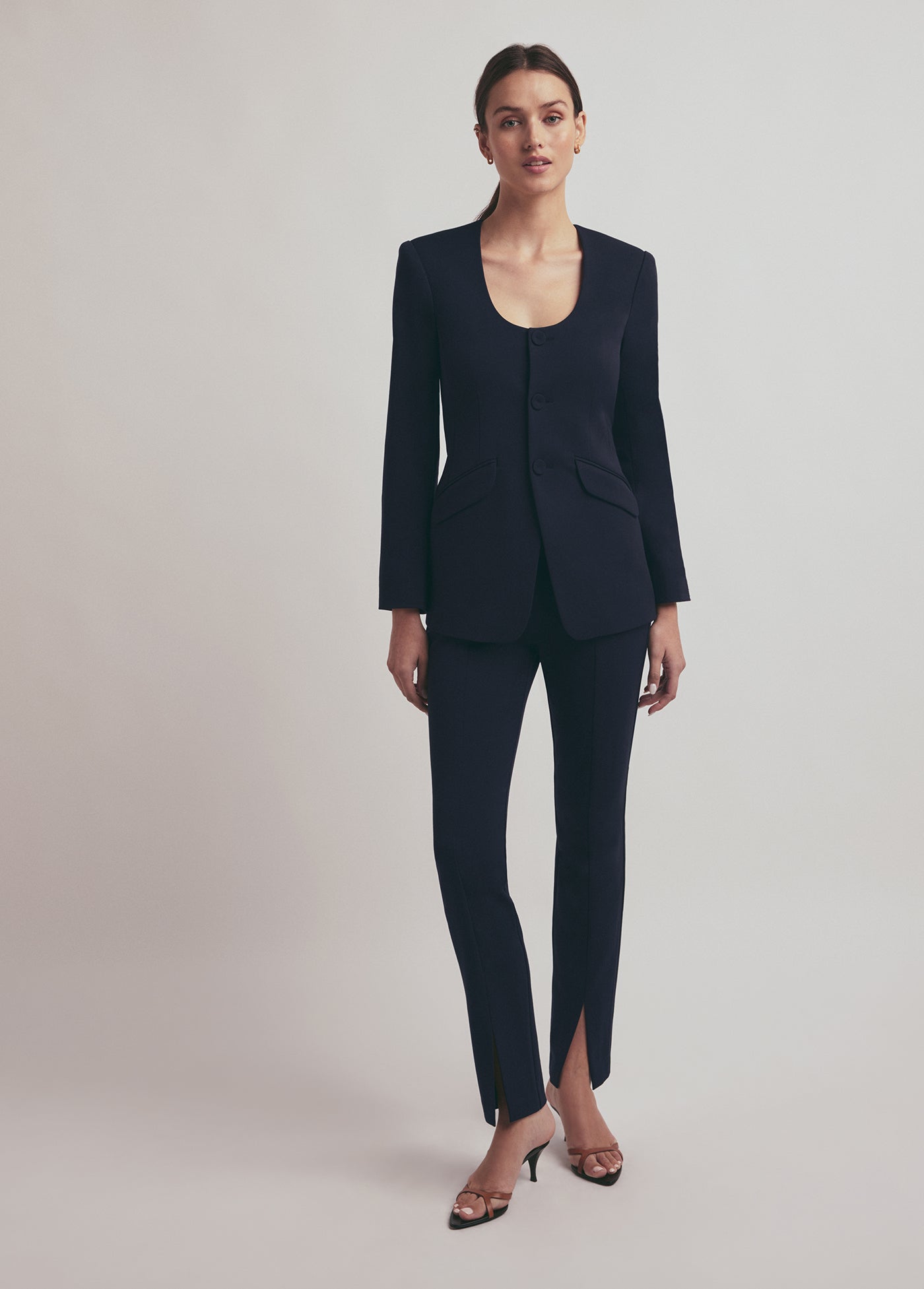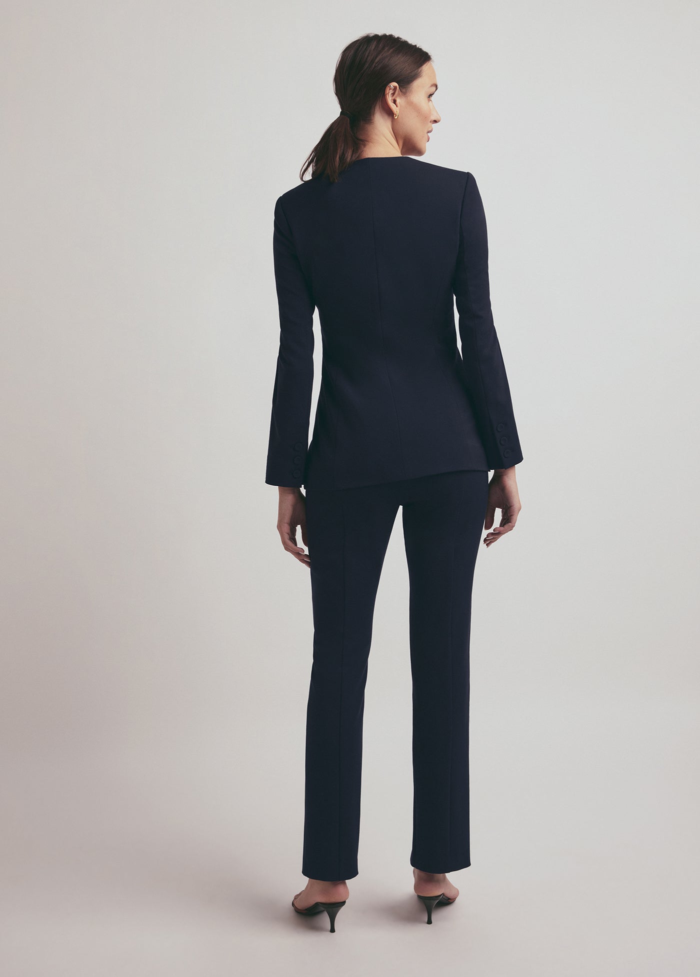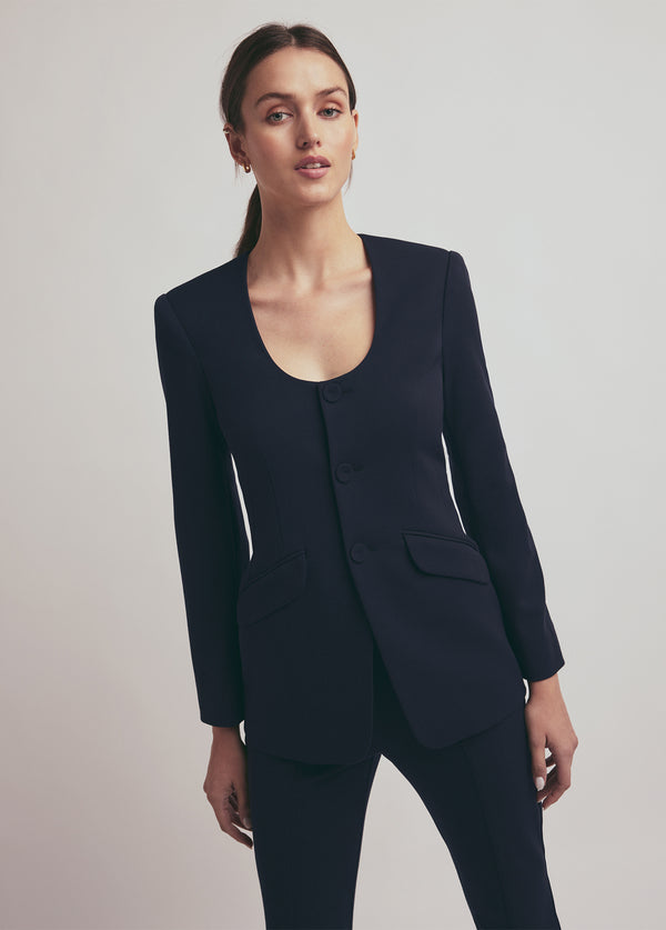 Our favorite design element of The Diana Jacket is how chic it looks buttoned up or open. With the round neckline, slim fit, and self-covered buttons, this blazer jacket will be a timeless treasure in your closet for years to come. It looks especially great when paired with The Suits You Legging in coordinating Night Sky.