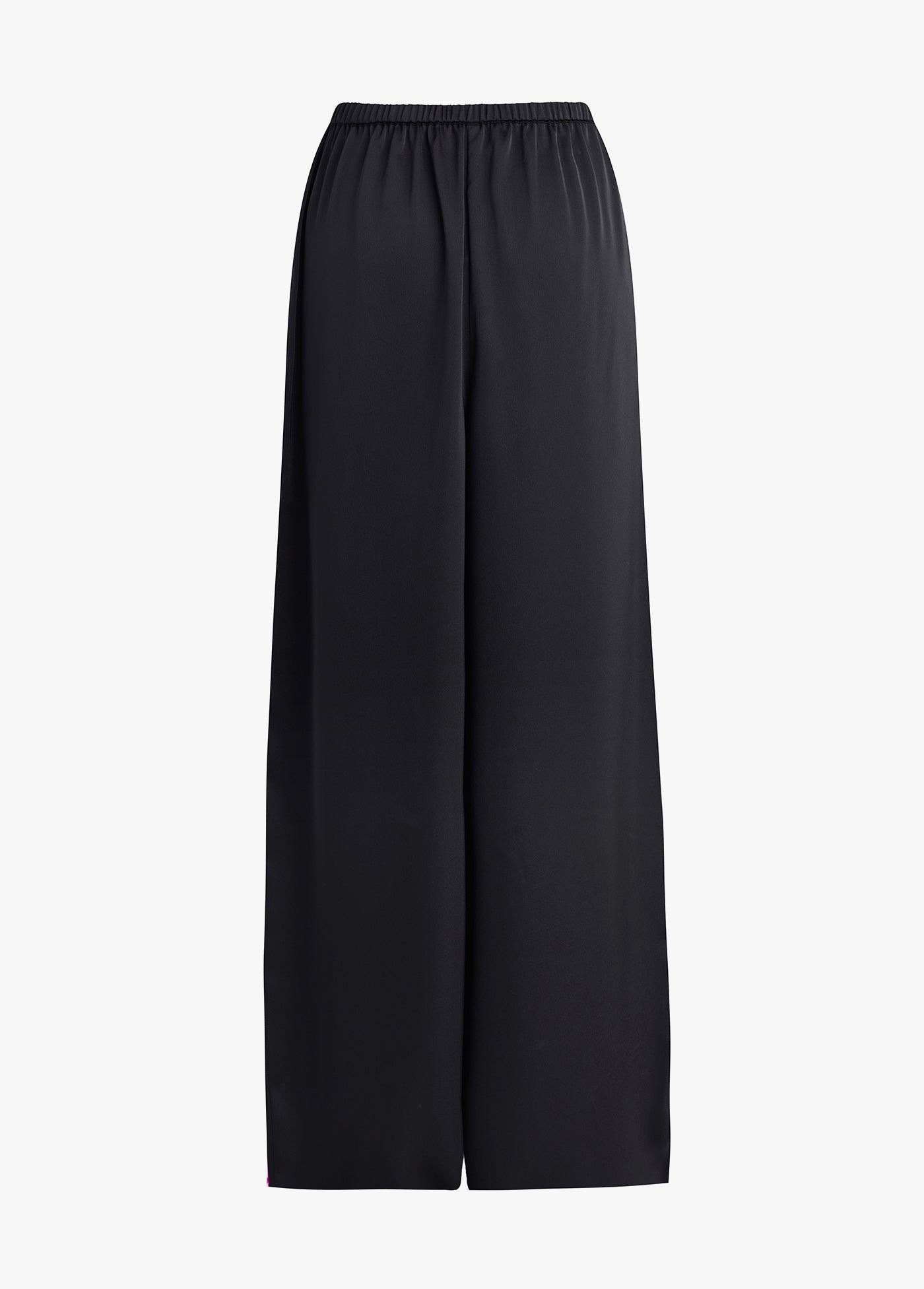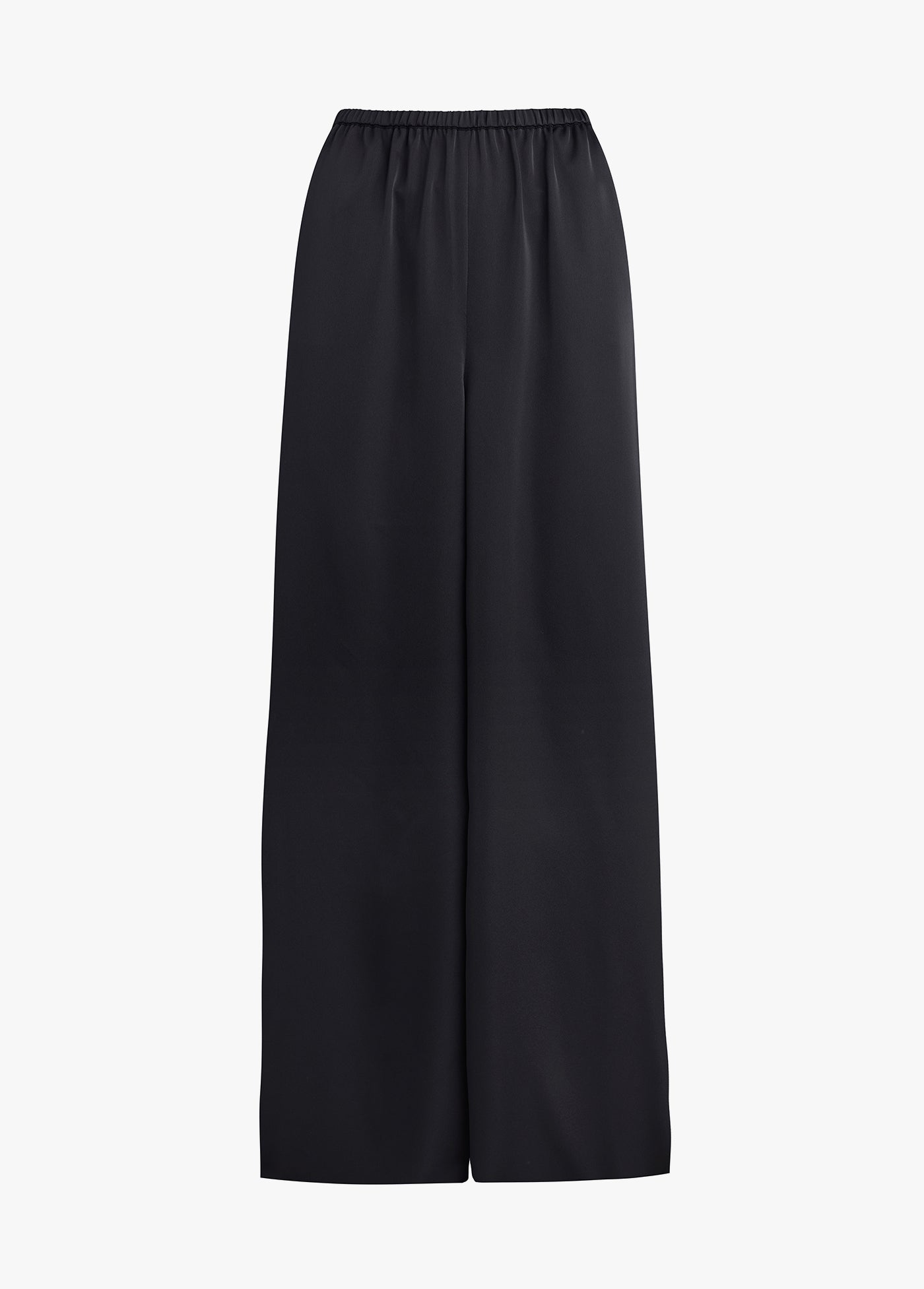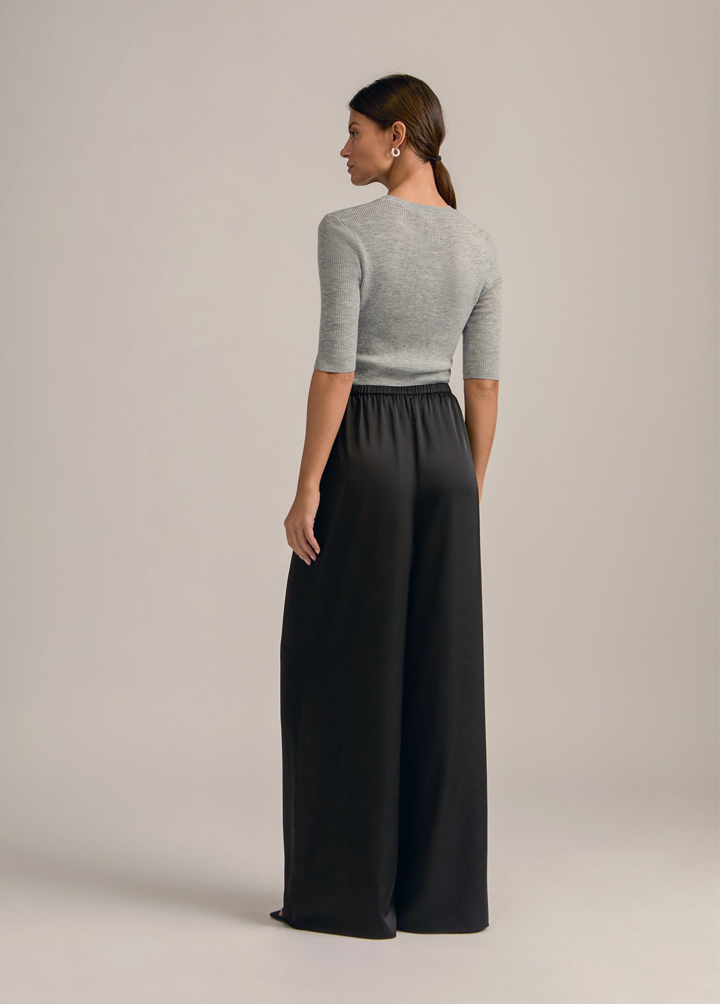 The Effortless Wide Leg is as easy to wear as it sounds—wide legs, a slim elastic waist with an 11.5” rise, and pull-on styling. Designed with a 32” inseam, these crepe satin pants look super chic when paired with The Agatha Top for a matching set.