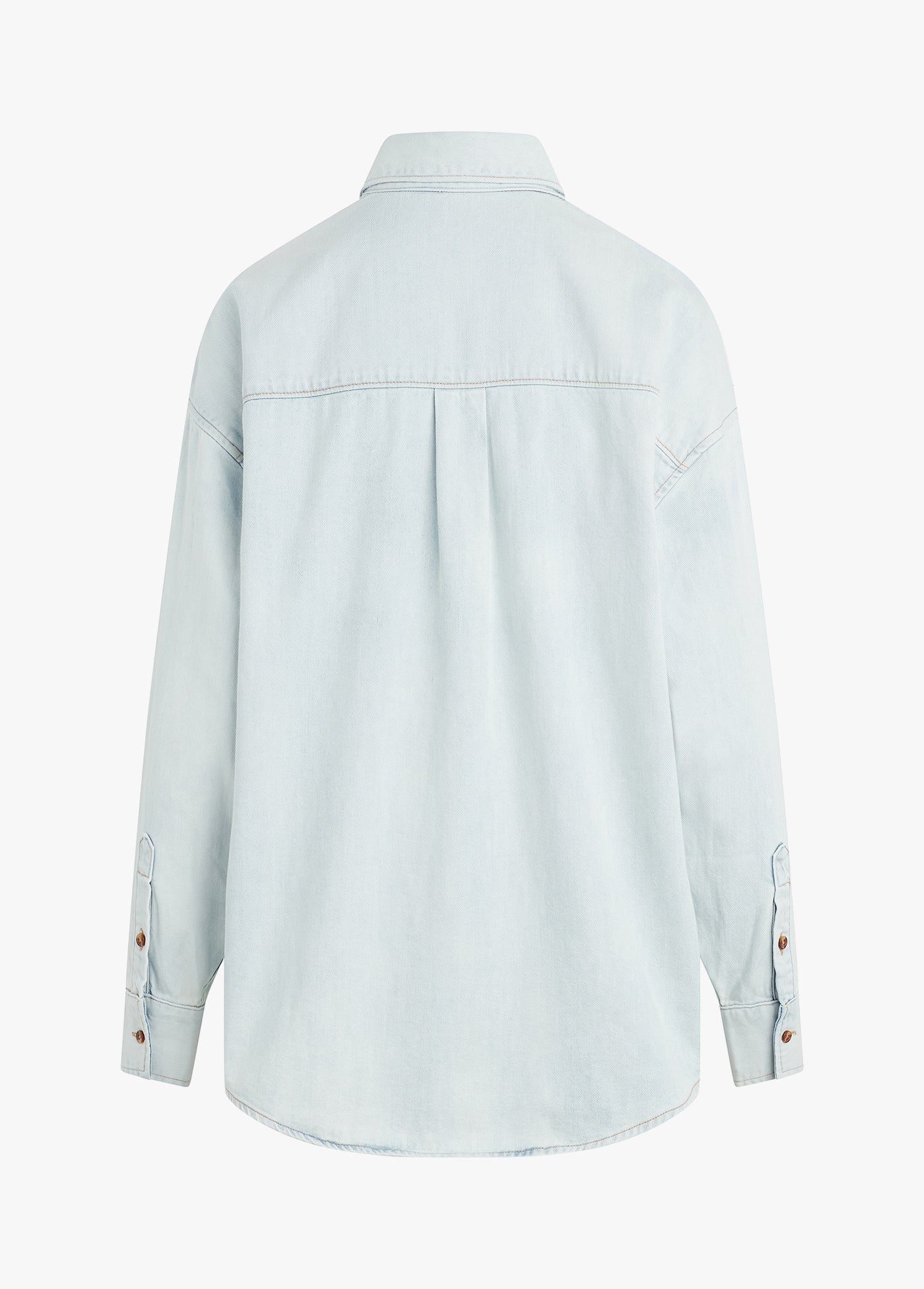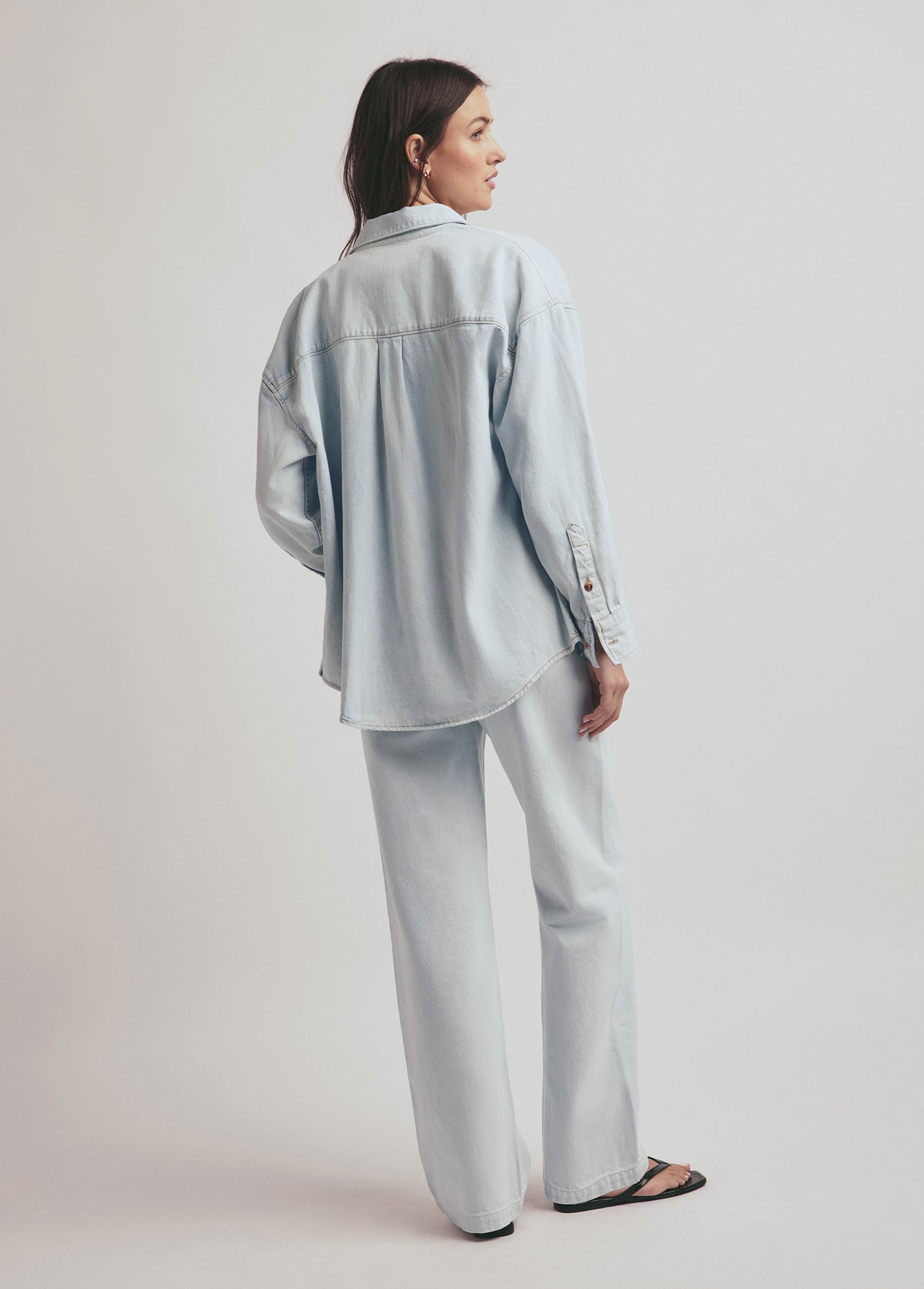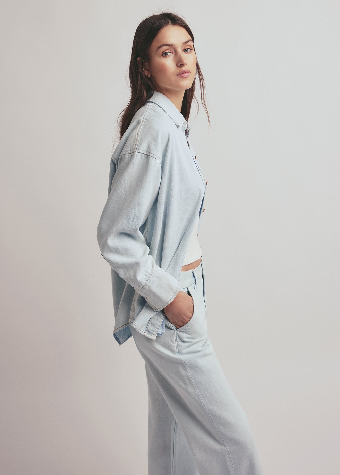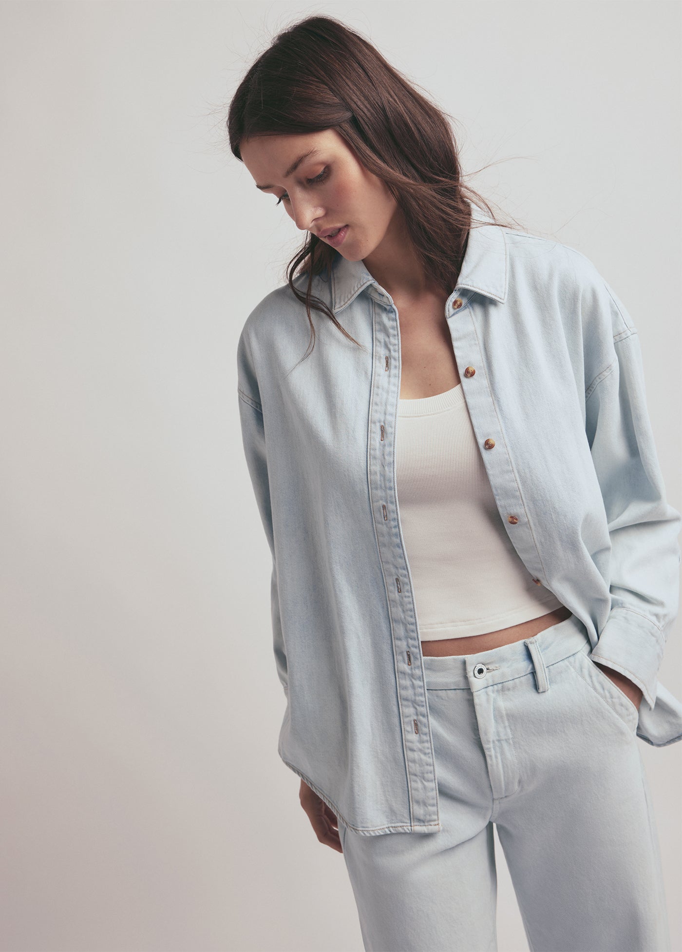 With a relaxed fit and pointed collar, the Ex-Boyfriend Shirt in Sierra is an oversize d button up cut from lightweight cotton denim that's been bleached down to the lightest shade of sunkissed blue. Our favorite way to wear this shirt is, actually, any way–tied, tucked, half-tucked, and unbuttoned.