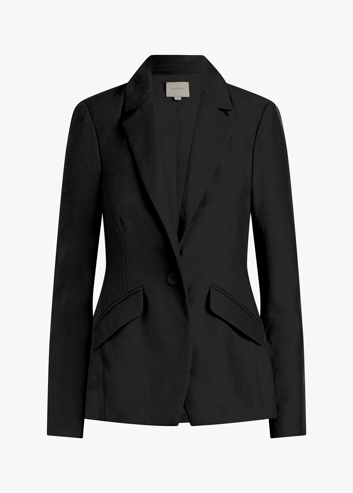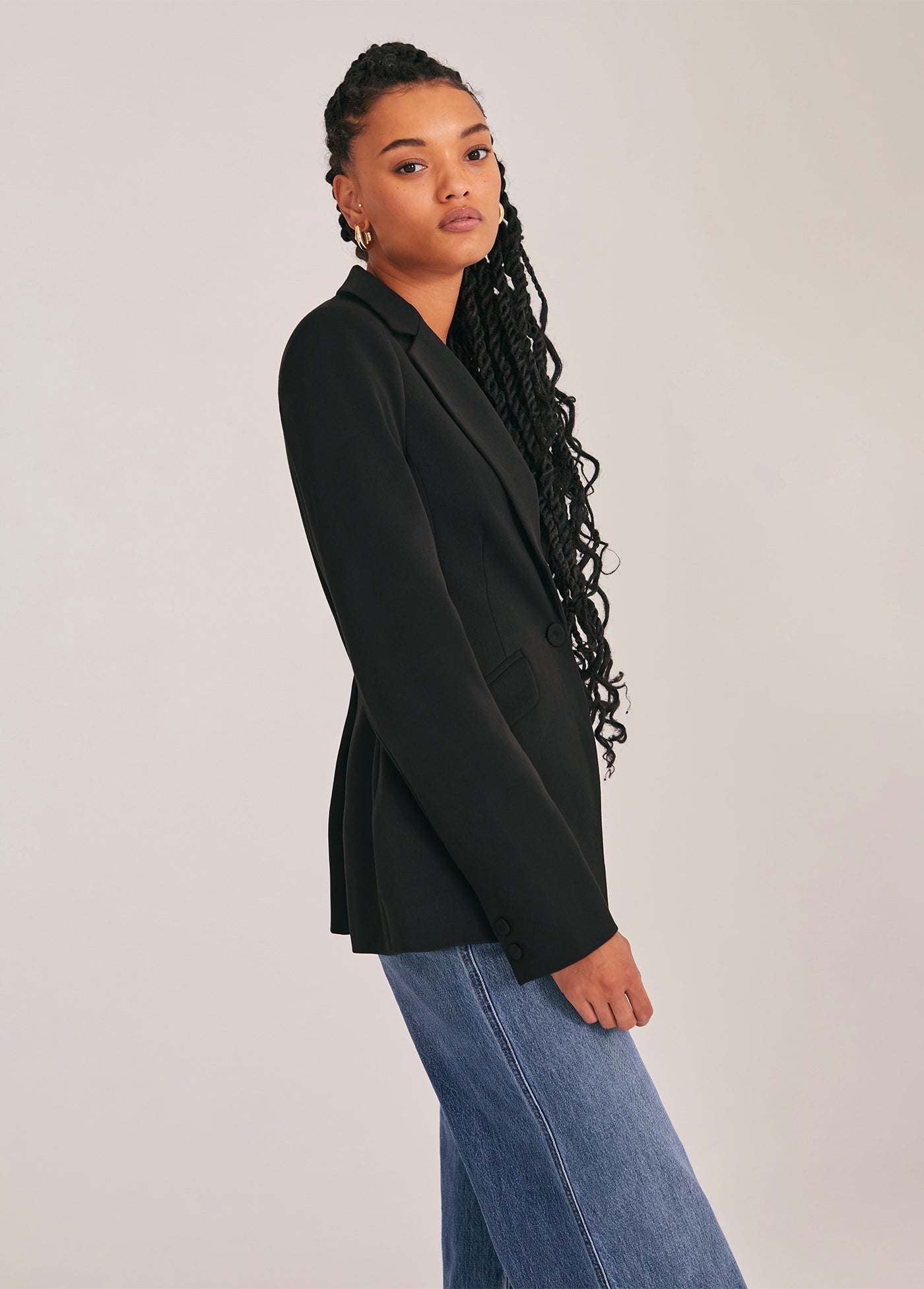 Our single button blazer could be our single most favorite layer. Crafted in black, The Favorite Blazer has a contoured waist so it hangs beautifully and gives just enough shape and structure. We wear it with everything (yes, everything) but we swoon over the suiting set when paired with The Favorite Pant or The Favorite Skirt.