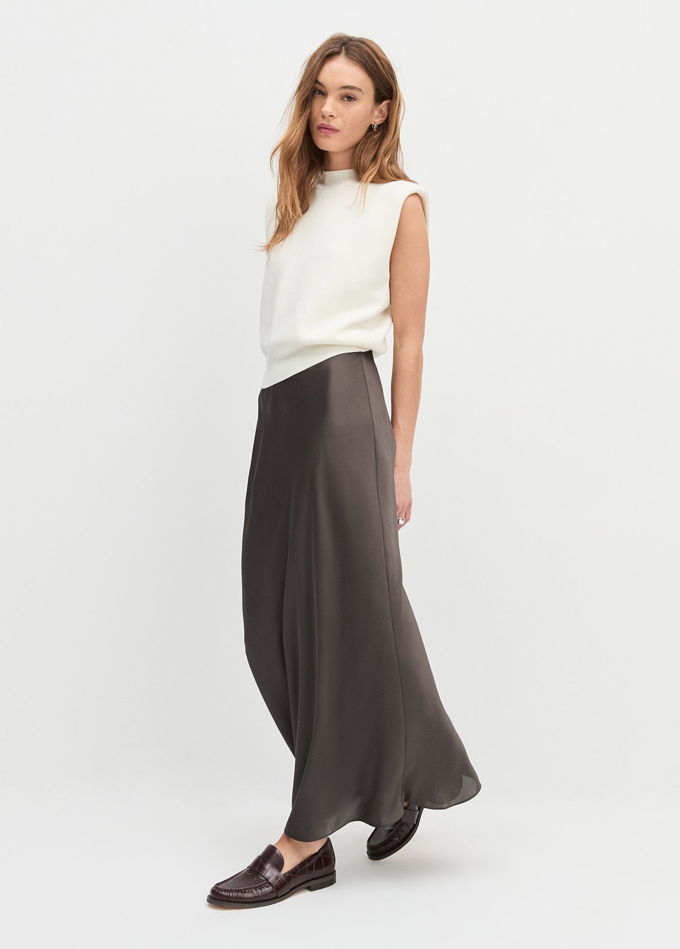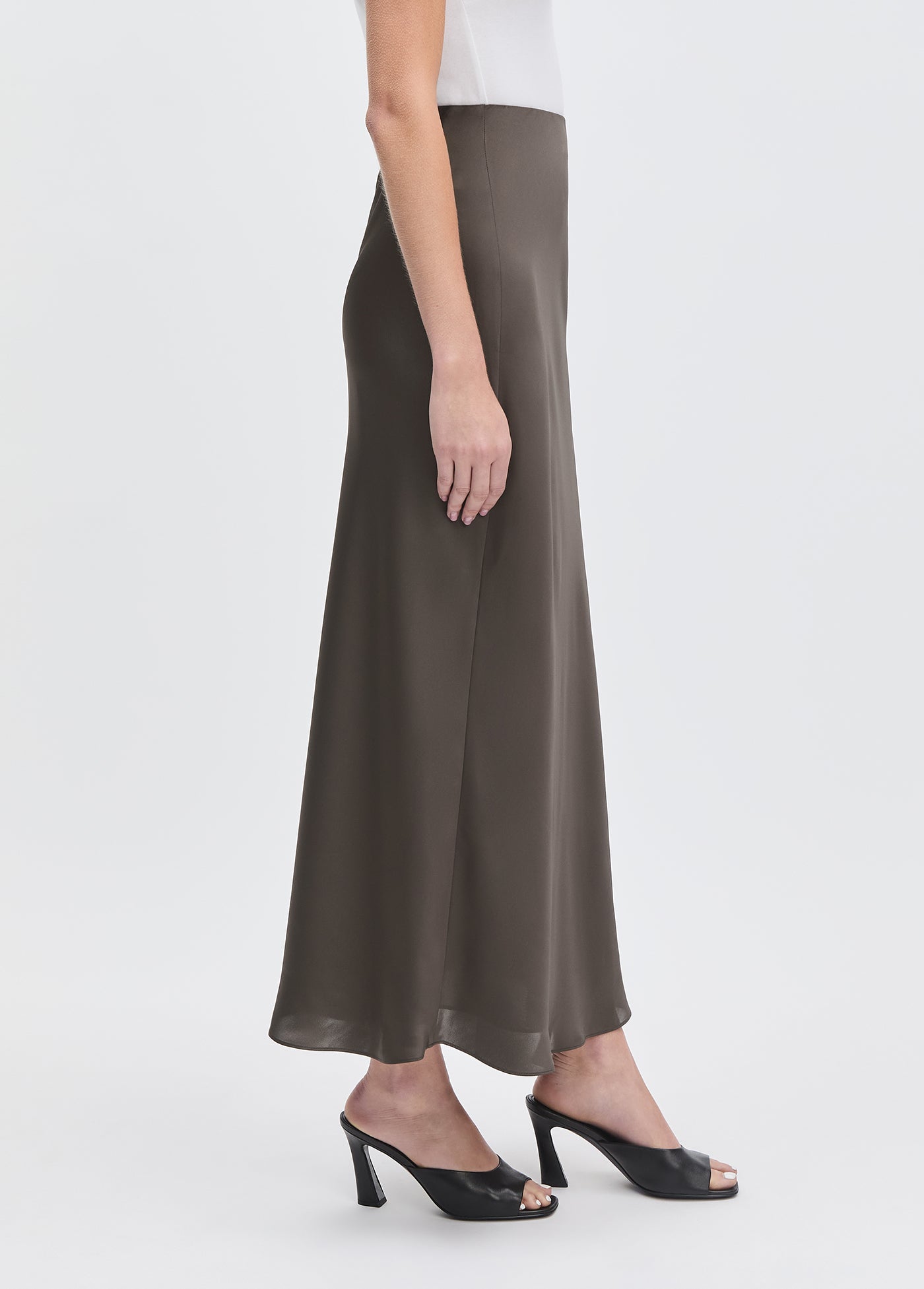 For special occasions. Any occasion, actually. The bias-cut Favorite Skirt in coffee has a high, pull-on waist and a billowy fit that hugs in all the right places. Measuring 34.5" from waistband to hem, it's cut from a soft viscose blend with a delicate feel--and it's super easy to style up or down. (It looks especially effortless with The Amelia Top or a classic tee.)