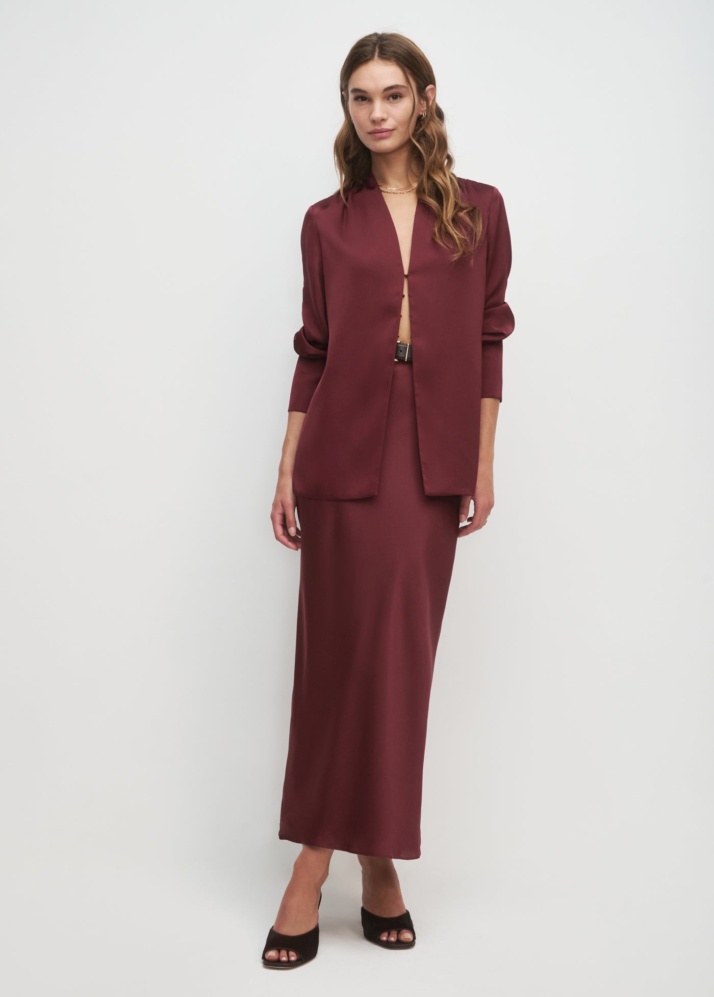 For special occasions. Any occasion, actually. The bias-cut Favorite Skirt in Vino has a high, pull-on waist and a billowy fit that hugs in all the right places. Measuring 34.5" from waistband to hem, it's cut from a soft viscose blend with a delicate feel--and it's super easy to style up or down. (It looks especially effortless with The Amelia Top or a classic tee.)