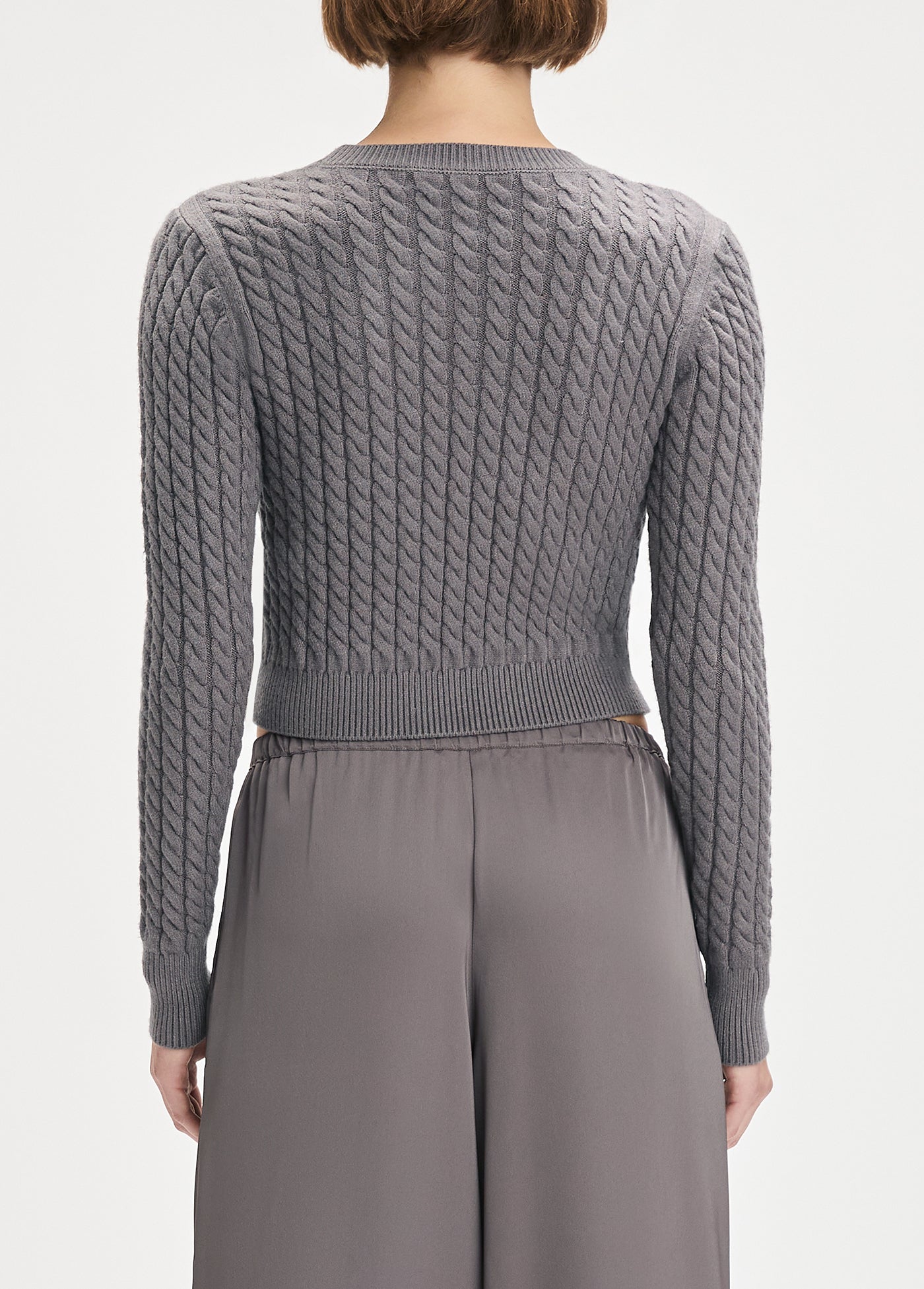 Cropped with a classic fit and fine cable stitching, this long-sleeve sweater is knit from a soft viscose blend that feels as good as it looks. For a favorite look, pair it with The Effortless Wide Leg in matching Grey Shadow.