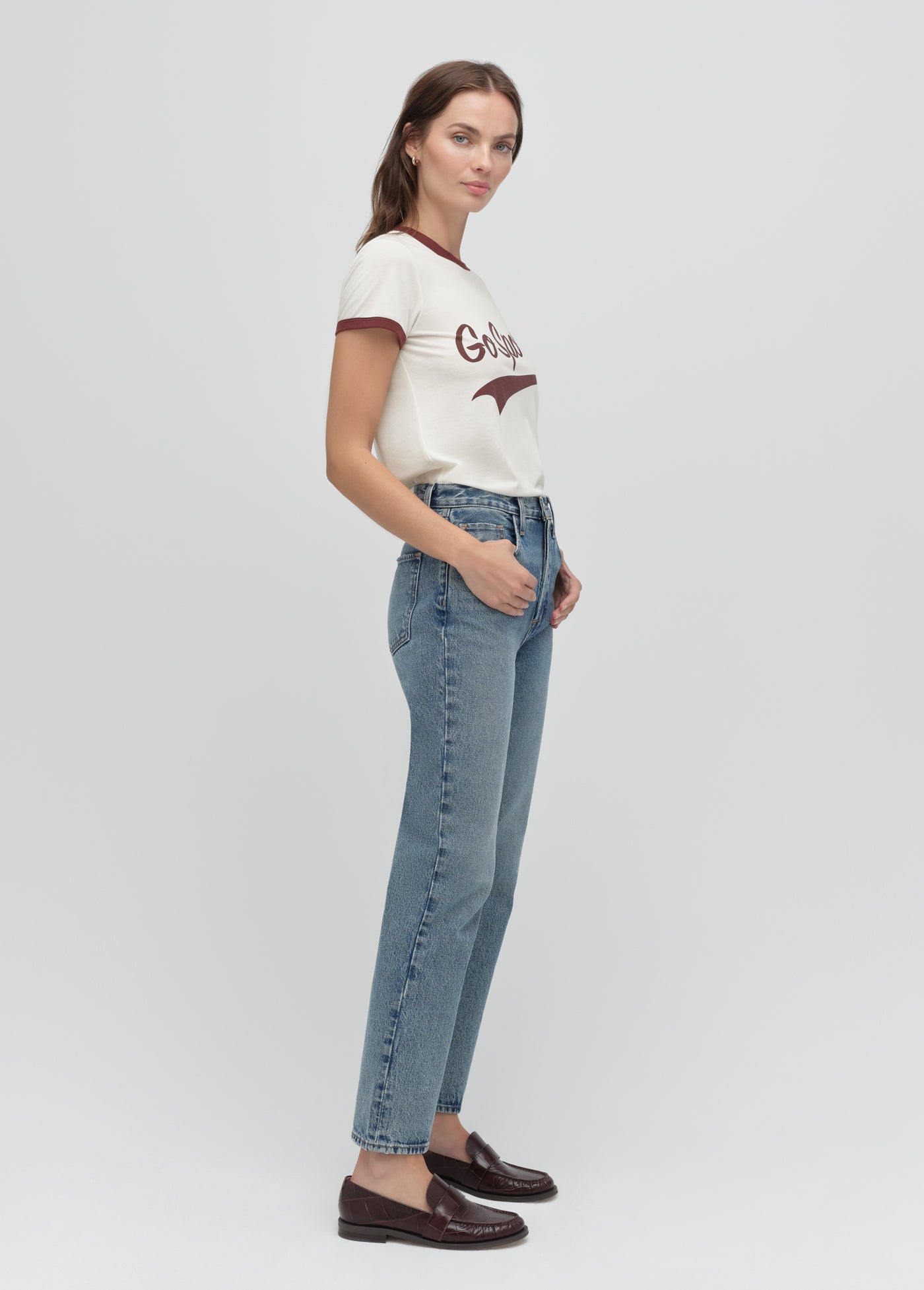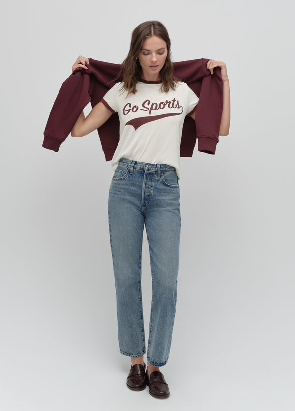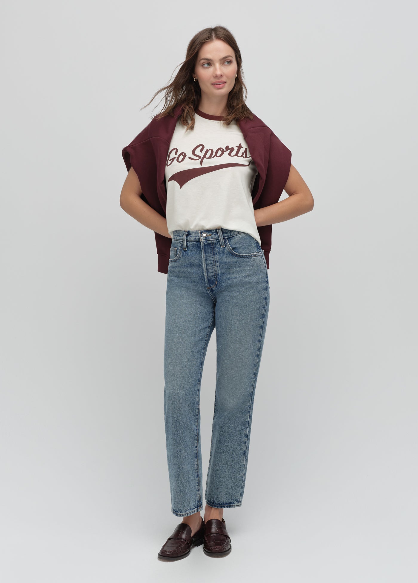 You don't have to pretend anymore that you have a favorite team. Our classic ringer tee is made from a cotton blend with an easy fit that makes every outfit feel sporty.