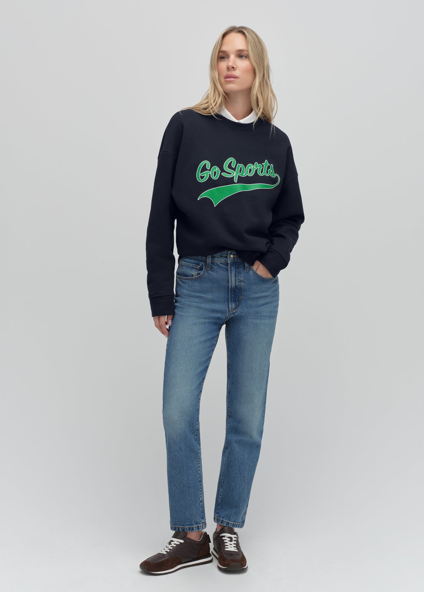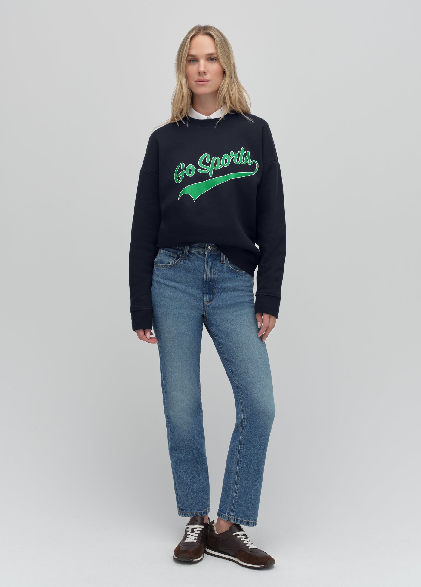 You don't have to pretend anymore that you have a favorite team. Our oversized sweatshirt is made from a cotton blend (so it shrinks to fit just right). With the drop shoulder and relaxed fit, this retro-inspired classic makes every outfit feel sporty.