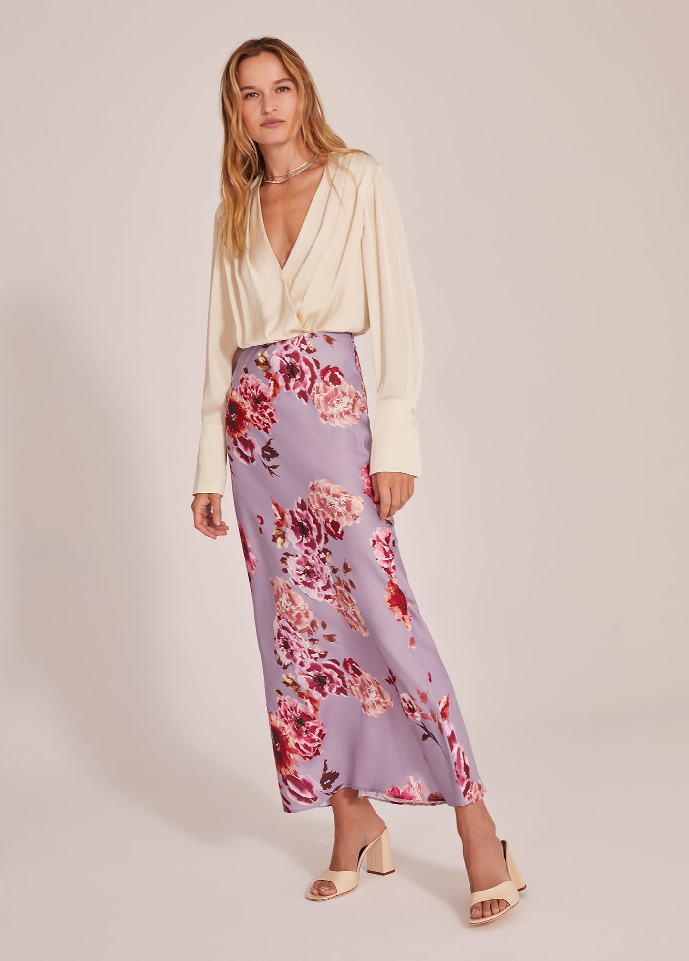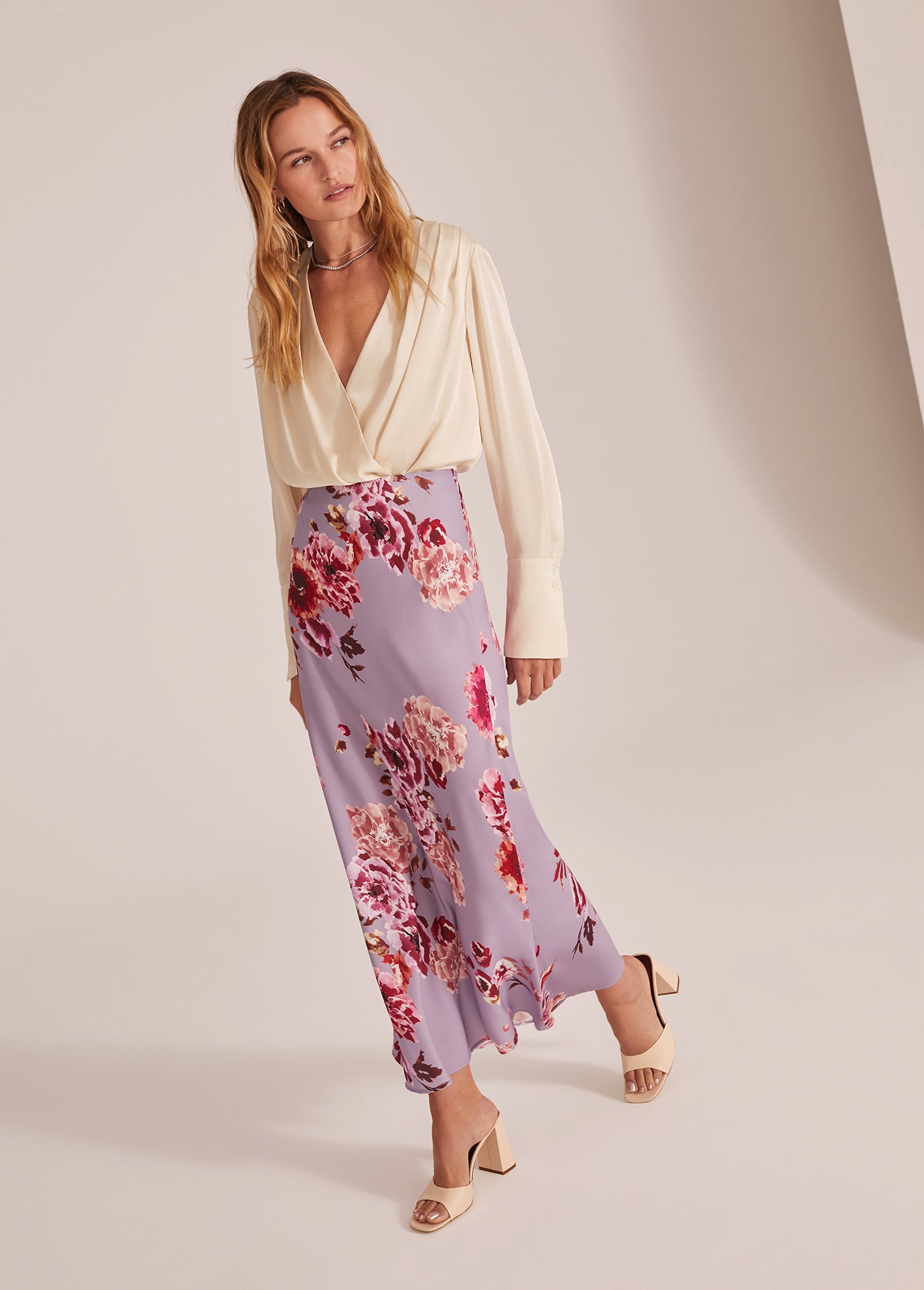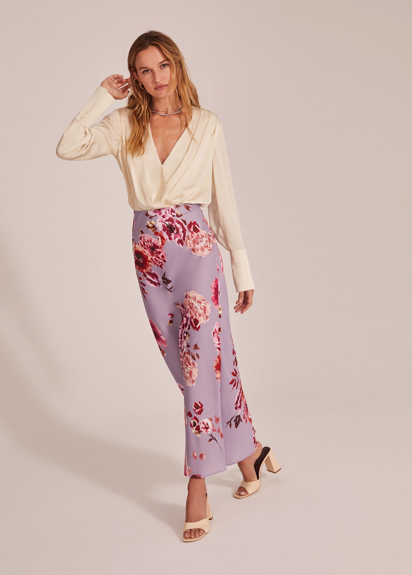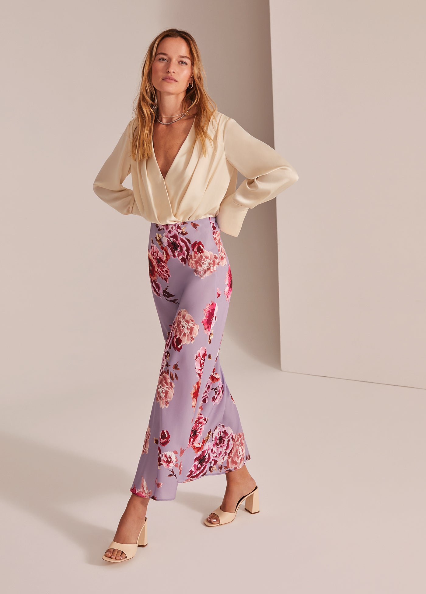 For special occasions. Any occasion, actually. The bias-cut Favorite skirt in a floral lilac print has a high, pull-on waist and a billowy fit that hugs in all the right places. Cut from a silky-soft satin fabric, you can skip the dress when you pair it with the coordinating The One That Got Away Top.