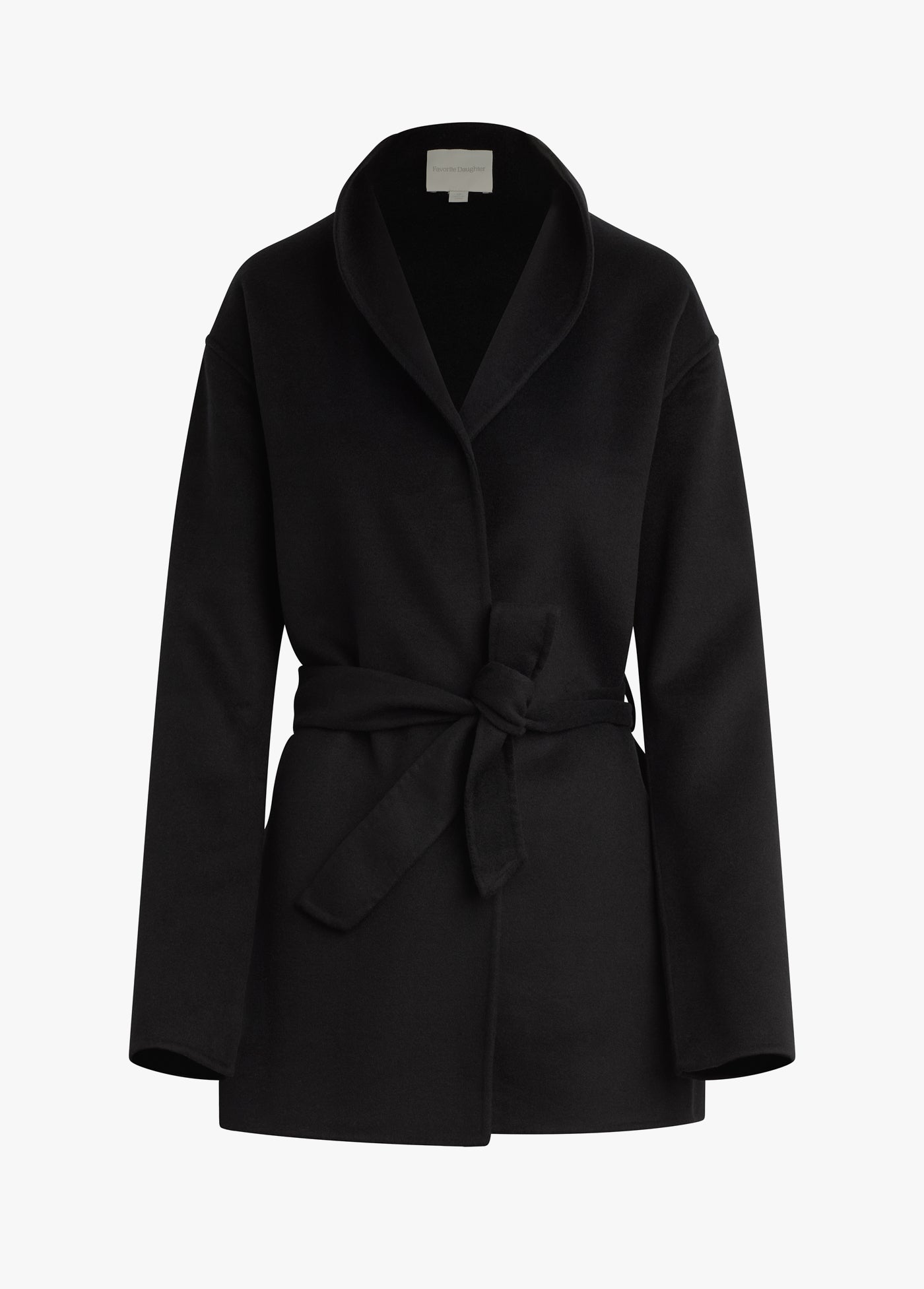 Wrap it up this winter. The Jasper Wrap Coat is cut from double-faced cashmere-wool blend with a tie front. At 33" mid-thigh length, it makes layering feel effortless and elevated.