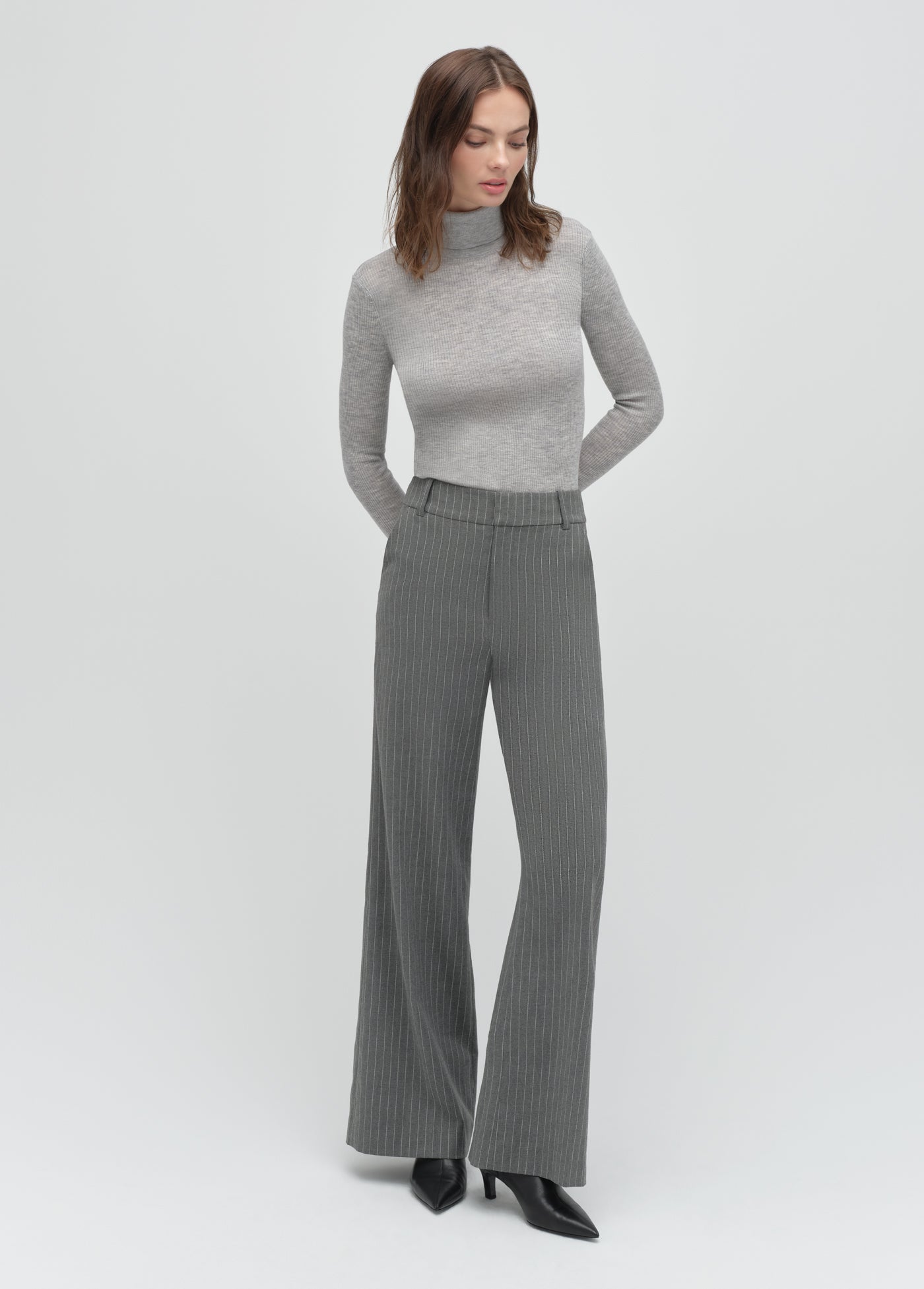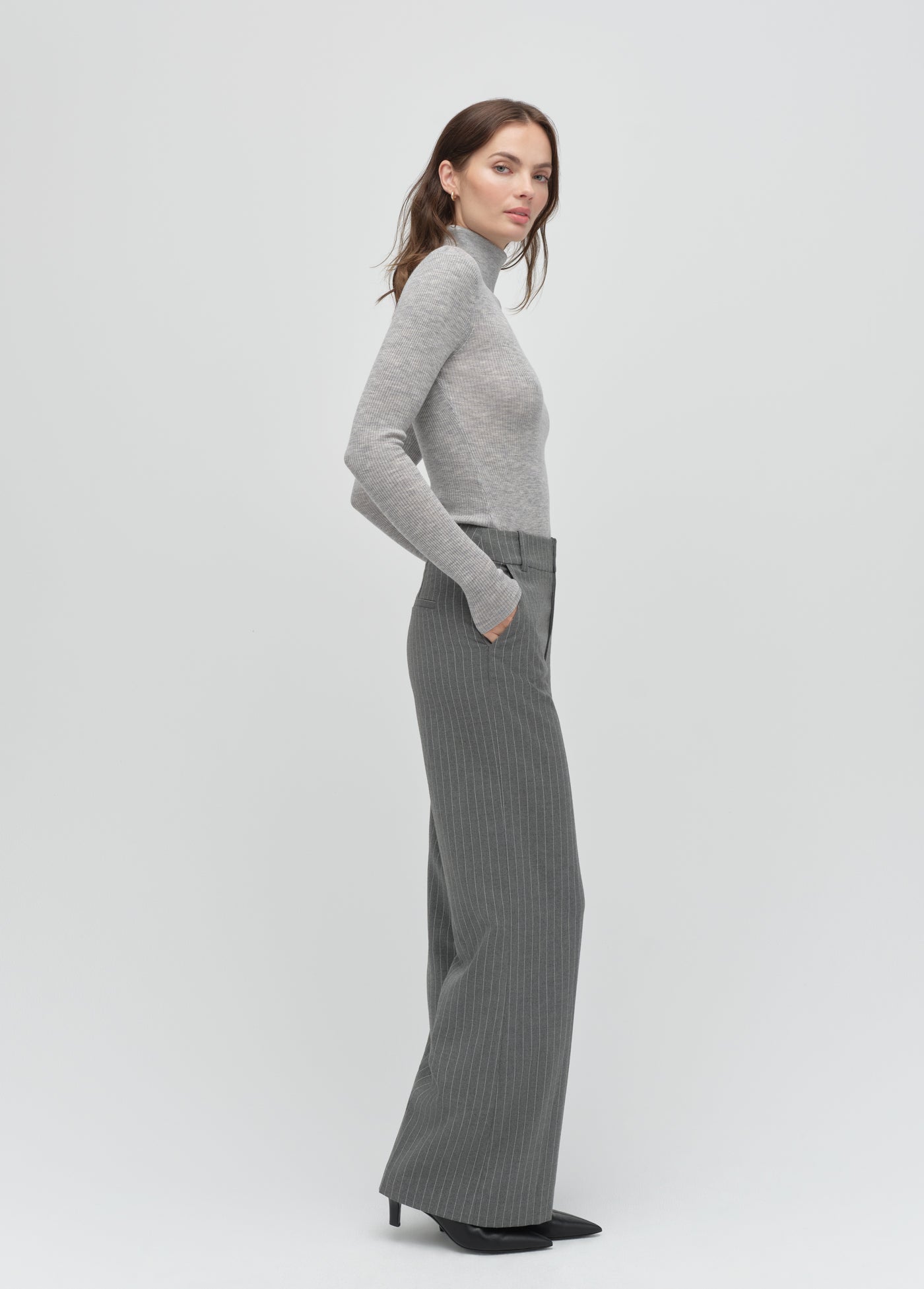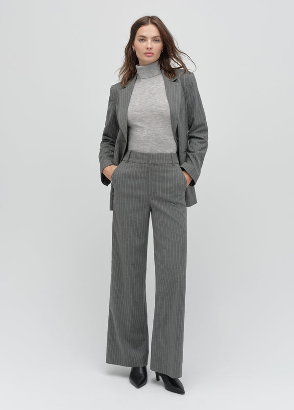 The Jones Wide Leg Pant has a high 12.25" rise and a wide leg with a 33" inseam that creates a super chic silhouette. While these Shadow Pinstripe trousers look great with anything (yes, anything), our favorite way to wear these pants is with the coordinating Alexis Blazer.