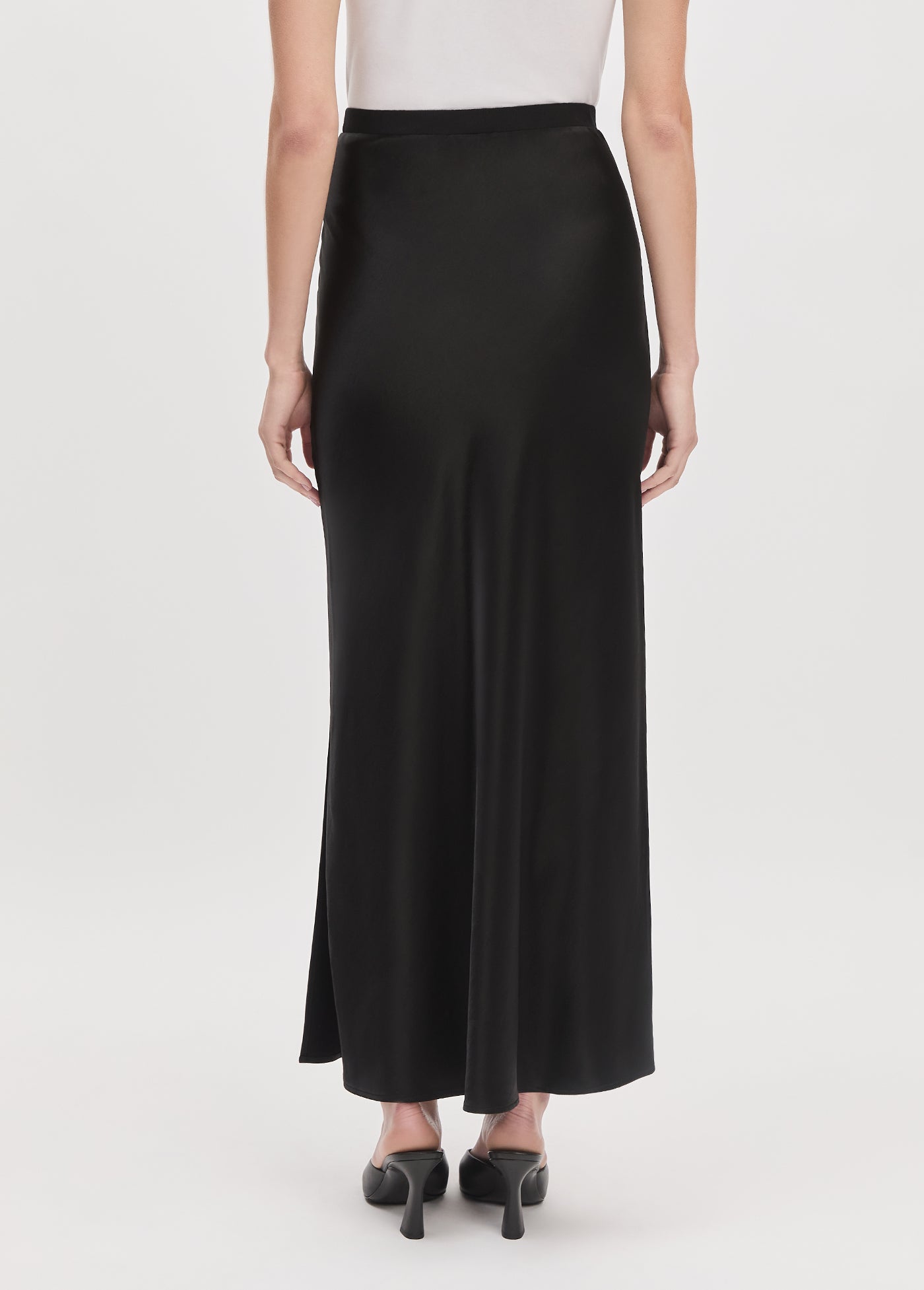 A favorite for every season. The 36.5" bias-cut midi drapes just right with a billowy fit and an easy pull-on waist. Finished with an exposed band that sits high and a side slit that shows just enough.