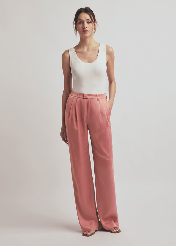 The Low Favorite Pant is our best-selling mid-rise trouser (formerly The Agnes Pant), cast in a smooth, satiny fabric. With a fluid wide-leg silhouette and front pleats, these Dusty Rose pants look gorgeous on their own and look extra chic when paired with The Classy Top.