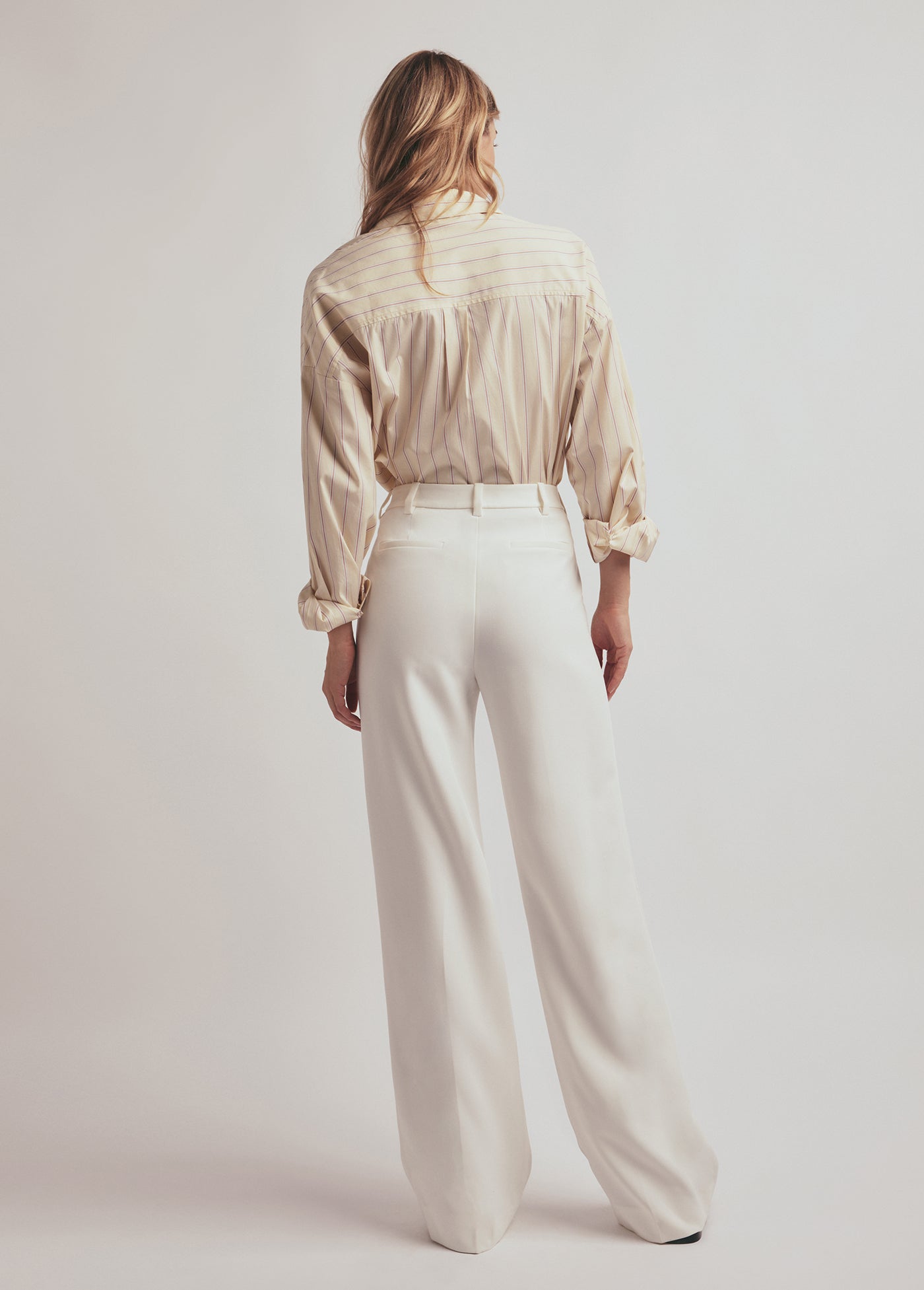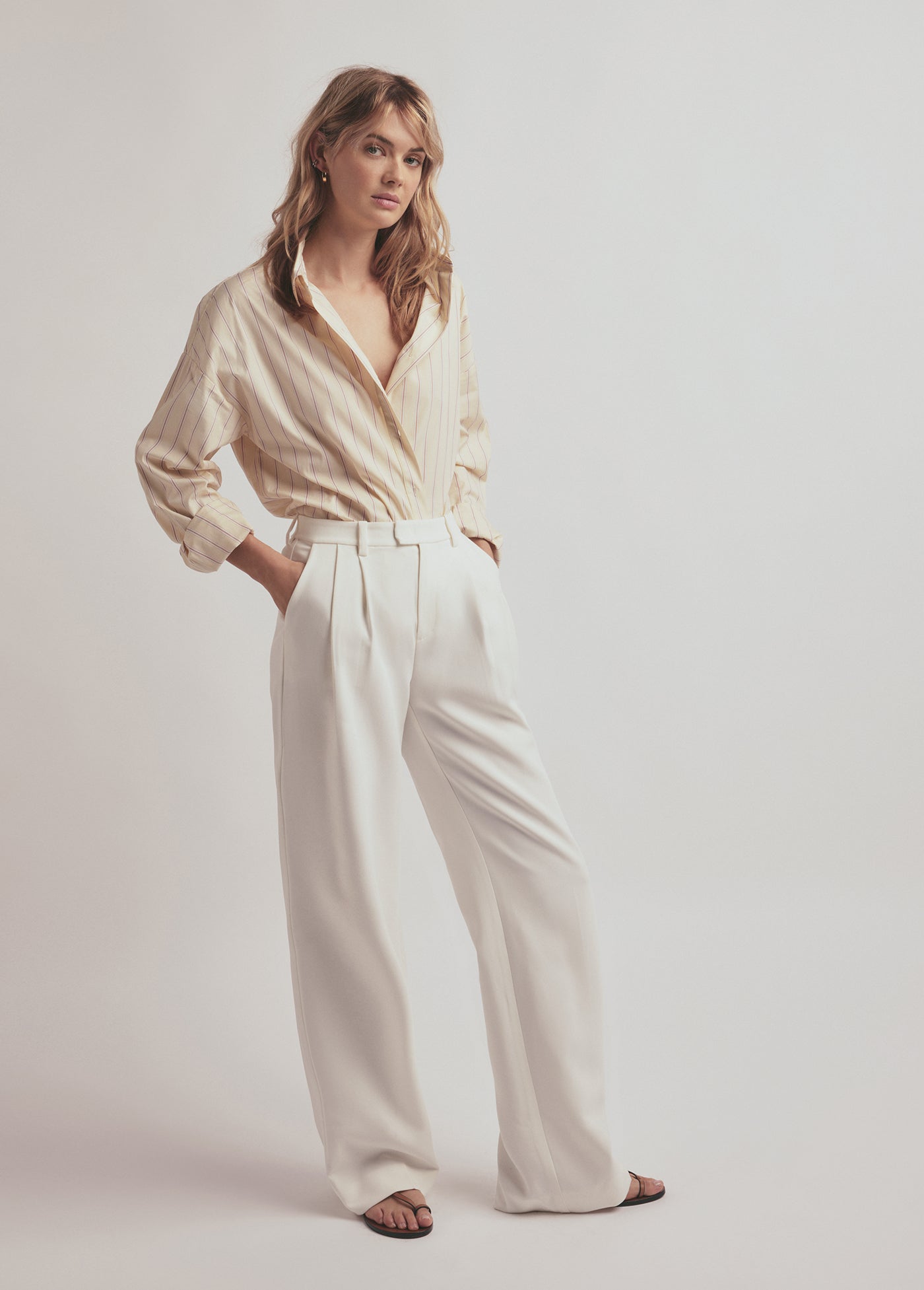 The Low Favorite Pant is our best-selling mid-rise trouser (formerly The Agnes Pant), cast in a structured Italian suiting fabric. With a fluid wide-leg silhouette and front pleats, these classic ivory pants are a true wardrobe essential.
